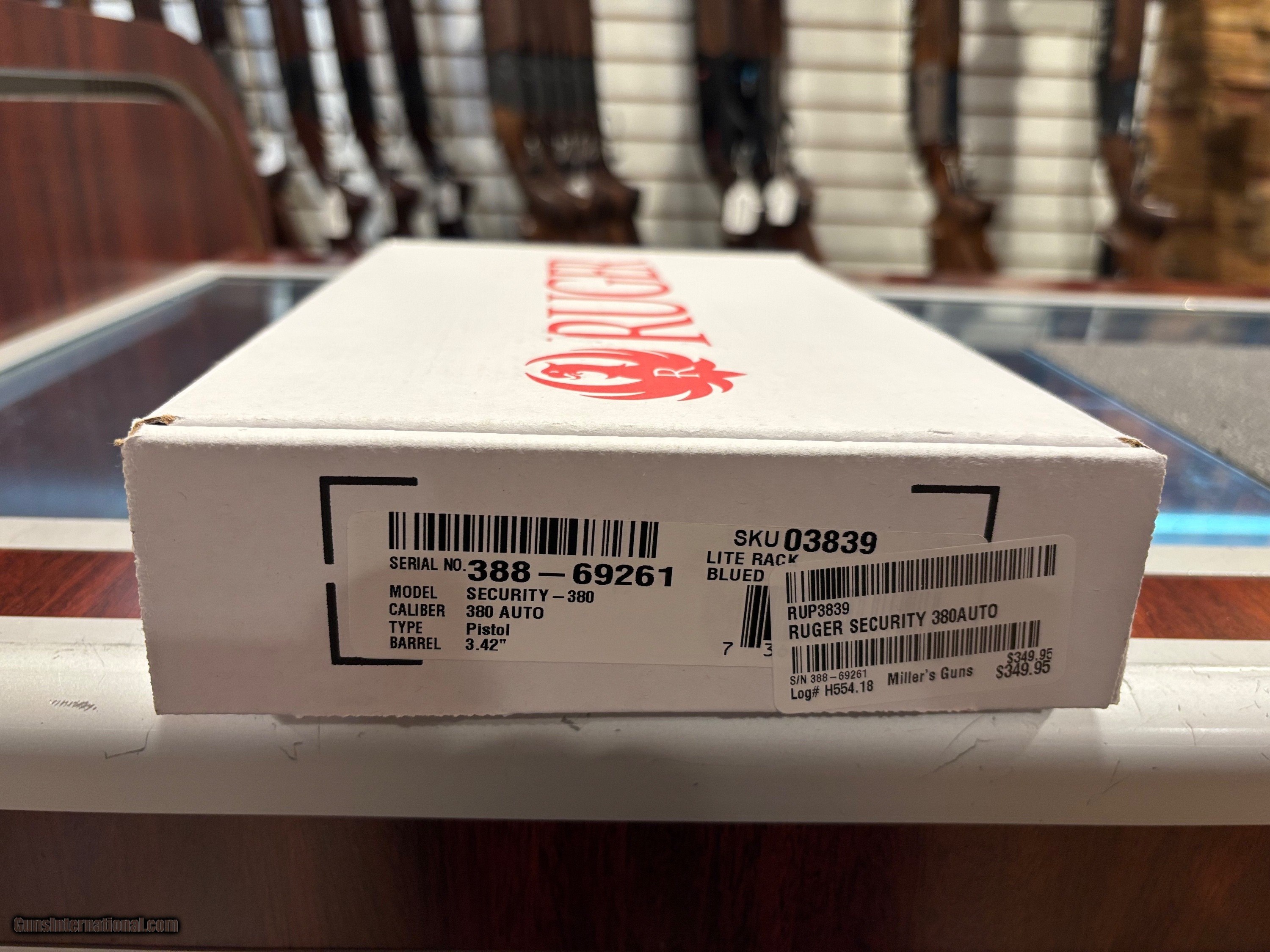 Description: Ruger Security 380 .380acp (1)15 round and (1)10 round magazine included Manual safety Lite rack slide Fiber optic front sight Handgun Caliber: .380 ACP (9x17mm Browning Short) Manufacturer: Ruger Model: Security 380 Serial Number: 388-69261 Barrel Length: 3.42” Condition: NEW Price: $349.95 Contact Seller |
