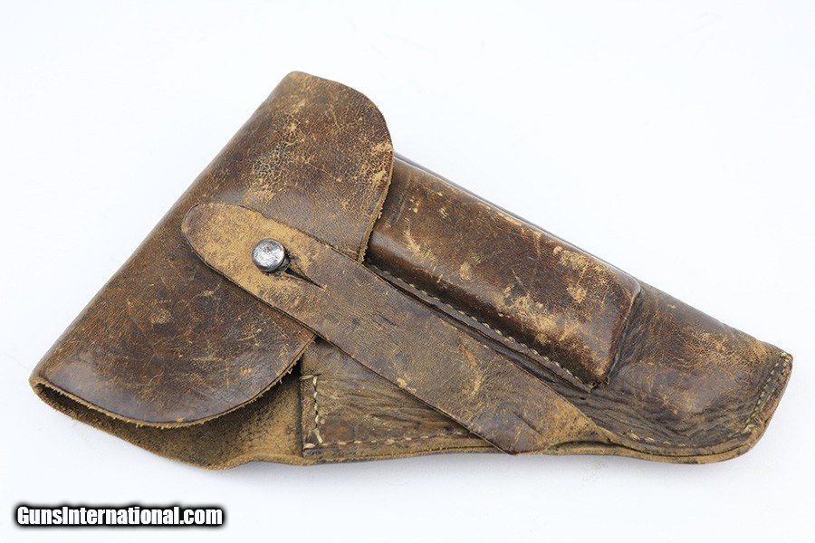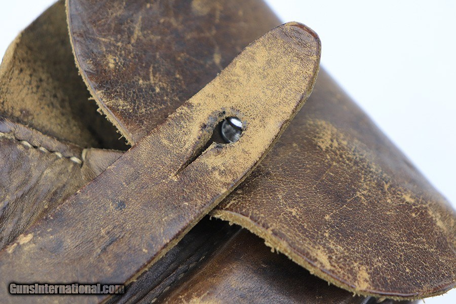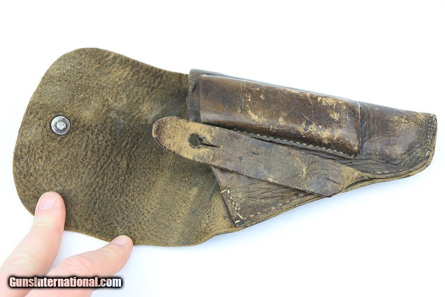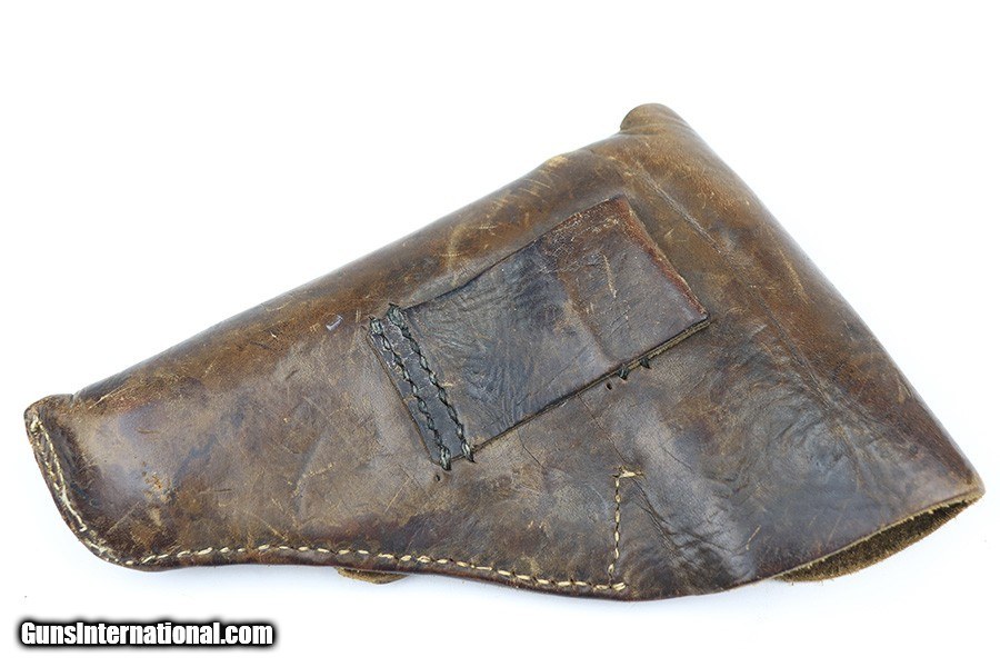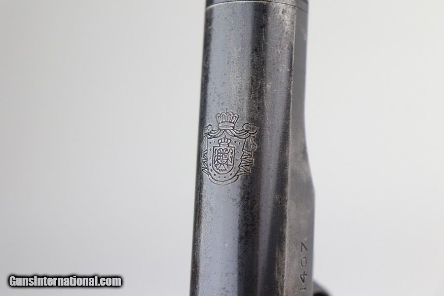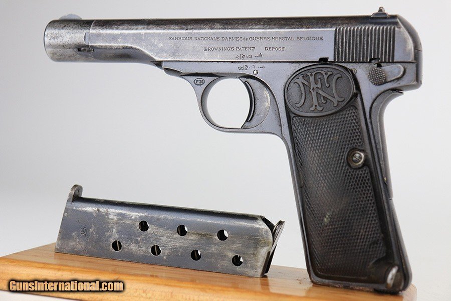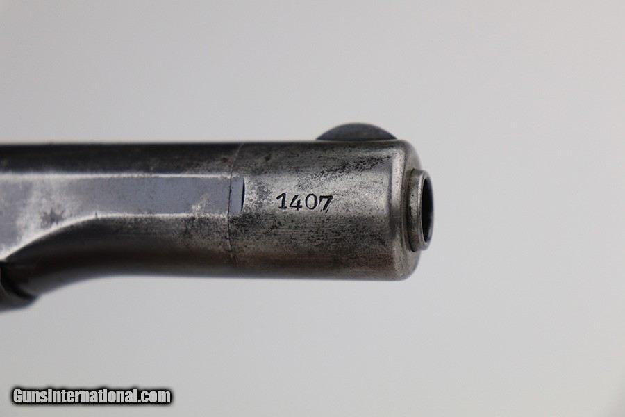 Description: This is a scarce FN Model 1922 that was part of a Yugoslavian military contract order. It has a low serial number, likely dating it to the 1920s. The right side of the slide features an inscription indicating Yugoslavian Army State issue, and the top of the slide features the Yugoslav crest as applied to all Army State and Officers' pistols. The gun is all matching and original but shows obviously thinning in several areas. Original grips show some smoothing and handling wear but no cracks or chips. Bore has good rifling but some frost and freckling in the grooves. Comes with an unmarked holster. SOLD Curio/Relic: Yes Handgun Caliber: .380 ACP (9x17mm Browning Short) Bore: 7/10 Condition: ~60% |
