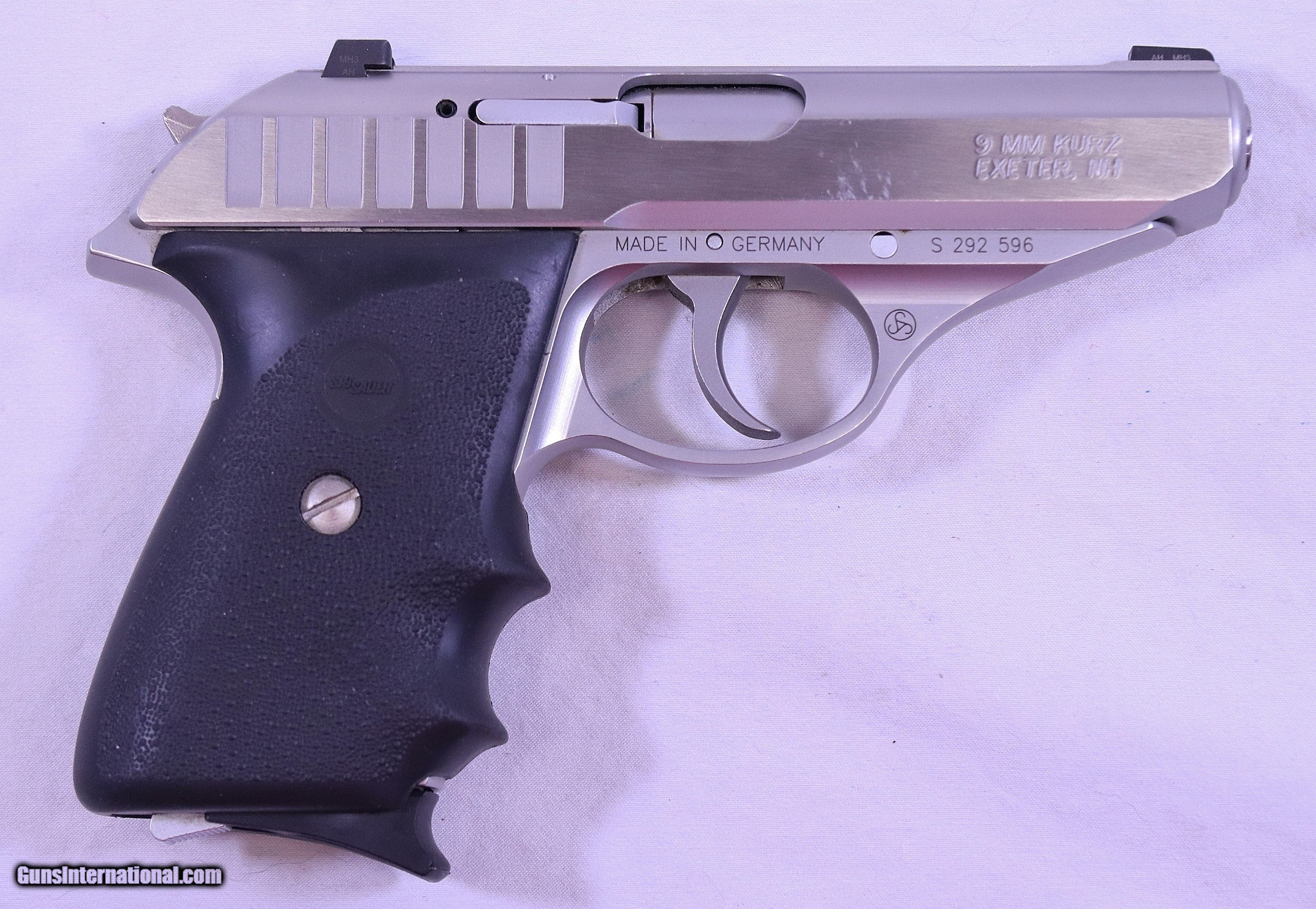 Description: This is a gun that James Bond’s son would use, so much better than a PPK. It is a Stainless Steel German Made SIG SAUER P232 pistol. It is chambered in 9mm Kurz, (.380 ACP) and is complete with all accessories and papers as shipped, including 2 Mags. It is a double action with a hammer, it can also function in the single action mode and has a hammer drop safety. The magazine release is European style located on the heel of the butt. It is equipped with factory nite sights, a handy feature on a gun such as this. It has very comfortable finger groove factory rubber grips. The gun has some very very light marks on the right side of the slide above the take down lever hole that can be seen it several of the photos. I think they would easily polish out if desired. I’d guess the second Mag. may have been resting on it in the case. Otherwise the gun appears test fired only and appears as new. The two Mags. have no rub marks on the followers. Everything functions flawlessly and the bore is as new. Caliber .380 ACP with a 3.6” barrel. Serial Number: S 292 596. FFL REQUIRED. Beaver Creek Arms TERMS & CONDITIONS Objective: As a collector of 35 years and Licensed Firearms Dealer since 1989 I have a clear definition of a satisfactory transaction. I will be paid as we agreed to, and you will be satisfied with your purchase. My goal is to establish a client list of satisfied repeat customers who will recommend me to other collectors. It’s just that simple. Exiled Saudi princes with secret funds needing change from an over paid purchase need not apply. Notice: ALL Federal, State, & Local firearms laws will be followed. I will take NO shortcuts in the process of a legal sale or transfer, so please don’t ask. SHIPPING: Normally shipments are made via U.S.P.S. Priority Mail, Insured, with Signature required. Typical Packing, Shipping and Insurance cost for a handgun is $30.00, and for a Long Gun is $45.00. Checks to be made out to: Steve Clark Mailed to: 380 Beaver Creek Rd. Dillsburg PA 17019 FIREARMS: Modern firearms, post 1898, can only be shipped to a Type 01 Federal Firearms License address. Curio-Relic firearms, as defined by the BATF list, can usually be shipped to a Type 03 Collectors License address. Some states have additional restrictions such as CA, CT, DC, IL, NJ and NY. A signed valid FFL license copy either mailed or emailed will be required for shipment to only the license address. Antique firearms, pre 1898 do not require a Federal License. For purchase, a copy of a Government Issued Identification (Drivers License, Etc), showing date of birth and current address will be required. GUARANTEE: Your complete satisfaction is assured, see objective above. If you are not satisfied, please contact me within 3 days of receipt. Please don’t fire the weapon, safety, function and accuracy are NOT Guaranteed. Any weapon offered by Beaver Creek Arms is never test fired nor is there any representation the gun is functional and safe to fire. These guns are sold for collectors and only represented as used firearms that must be checked by a competent person, observe all the necessary safety precautions prior to attempting to load and fire one of these weapons RETURNS: Returns must be made within 3 days of receipt. They must be received in exactly the same condition with no parts exchanged. If it has been altered, damaged, or fired, a refund will not be made. Packing, shipping and insurance cost will not be refunded. All layaway purchases are returnable for merchandise credit only. PAYMENT: Bank check, Personal check, and Money Orders are preferred. Visa and MasterCard are accepted with a 3% processing fee. For Visa and MasterCard orders please provide the account number, code number, expiration date, name on card, phone number and card billing address. This information can be phoned in, or E-Mailed. All orders must be paid in advance, C.O.D. orders are not accepted. Checks, both Bank and Personal must clear before the order will be shipped, usually a 2 week delay. LAYAWAYS: A 20% deposit is required. Balance is due in 60 days. Deposits are non-refundable and are forfeited after 60 days. Layaway sales are returnable for merchandise credit only. SALES TAX: Pennsylvania state sales tax is 6% for in state purchases. The payment of other states sales tax, if applicable, for shipped items is the buyers responsibility. DISCREET: Client information will remain Confidential. Your privacy is protected. SOLD |