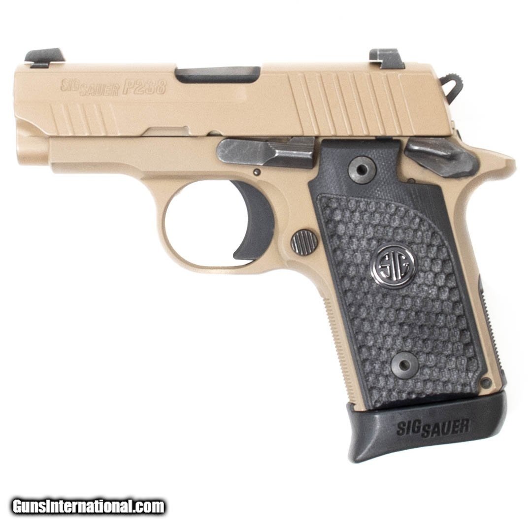 Description: Guns Listing ID: 591020 This Sig Sauer P238 is a single-action model. It features night sights and an ambidextrous safety lever. It shows some finish wear on the backstrap area. Purchase includes the original case, manual, three 6-round magazines, and one 7-round magazine. Get the best bang for your buck when you get a Certified Used Firearm . When you see the Certified Used stamp on any of our firearms, you can be confident that you‚re getting exactly what you want – a gun only in very good to excellent condition and held to the highest quality standard. All Certified Used Guns come with a ‚no questions asked‚ return policy . Manufacturer: SIG SAUER Model: P238 Caliber Info: .380 ACP Condition: Used - Certified Barrels: 2.70" BARREL Action: SEMI AUTOMATIC Finish: black and tan Weight: 1 Price: $474.99 Contact Seller |