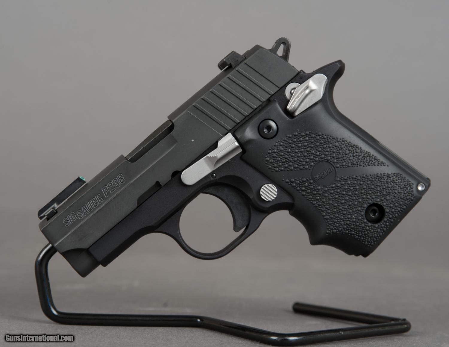 Description: Sig Sauer P238 Sports 12 380ACP MANUFACTURE ITEM# 238-380-SPORTS12 NEW IN BOX MSRP $679.00 A smart looking, small handgun built with the same accuracy and reliability as large frame SigSauer pistols. With an overall length of just 5.5" a height of 3.96", the P238 is the ultimate firepower in an all metal frame concealed pistol. The P238 Sports 12 is built on an all stainless beavertail style frame with Hogue grips for comfort and a secure hold during rapid-fire usage. The stainless steel slide features the popular trademarked SigSauer slide serrations, Hogue grips, and SIGLITE Night Sights. Specifications