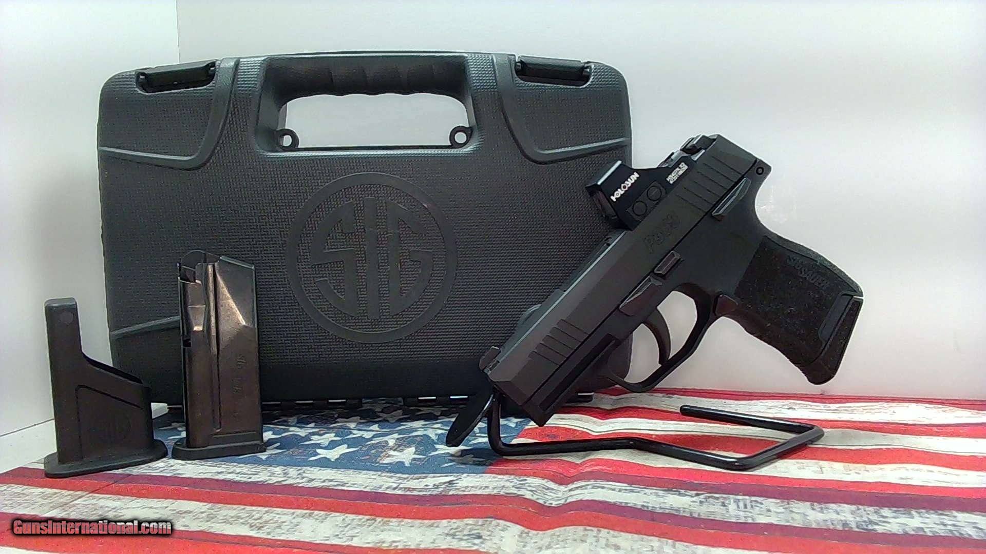 Description: Guns Listing ID: 582117 Pre-owned Sig Sauer P365 chambered in .380 acp with a Holosun HS407K X2 red dot mounted. This pistol is in very good condition. It appears unfired, the bore and feed ramp are in excellent condition. The frame has a few small scratches, otherwise this gun is in \"like new\" condition. Includes original case (foam inserts have been removed). Lightweight and easy to conceal, the Sig Sauer P365 is chambered in .380 ACP. Included standard are SIGLITE night sights, a manual safety, a 10-round flush fit magazine, and a 10-round extended magazine. The P365 is striker-fired, with the clean crisp trigger pull you expect from a SIG. The Holosun HS407K X2 is an open reflex red dot designed for concealed carry pistols. Featuring Shake Awake motion technology, these Red Dot Sights can provide up to 50,000 hours of battery life to ensure you always have a reliable aiming point by your side. The HS407K red dot provides 12 brightness settings for a customized view, including two-night vision settings for tactical operations. With parallax-free views and unlimited eye relief, this pistol red dot delivers a comfortable and intuitive shooting experience. They say a picture is worth a thousand words. These photos are the best statement of condition; please review them carefully before purchasing. Manufacturer: SIG SAUER Model: P365 w/ Holosun Caliber Info: .380 ACP Condition: Used - Non-Certified Barrels: 3.1" BARREL Action: SEMI AUTOMATIC Finish: black Price: $569.99 Contact Seller |