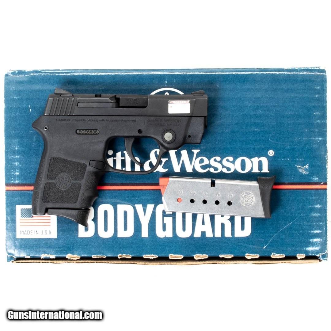 Description: Guns Listing ID: 607990 This Smith & Wesson pistol comes with two 6-round magazines, the original box, owner‚s manual, a safety, and an Insight integrated laser. Get the best bang for your buck when you get a Certified Used Firearm . When you see the Certified Used stamp on any of our firearms, you can be confident that you‚re getting exactly what you want – a gun only in very good to excellent condition and held to the highest quality standard. All Certified Used Guns come with a ‚no questions asked‚ return policy . SOLD Manufacturer: SMITH & WESSON Model: BODYGUARD 380 Caliber Info: .380 ACP Condition: Used - Certified Barrels: 2.75" BARREL Action: SEMI AUTOMATIC Finish: black Weight: 0.8 |