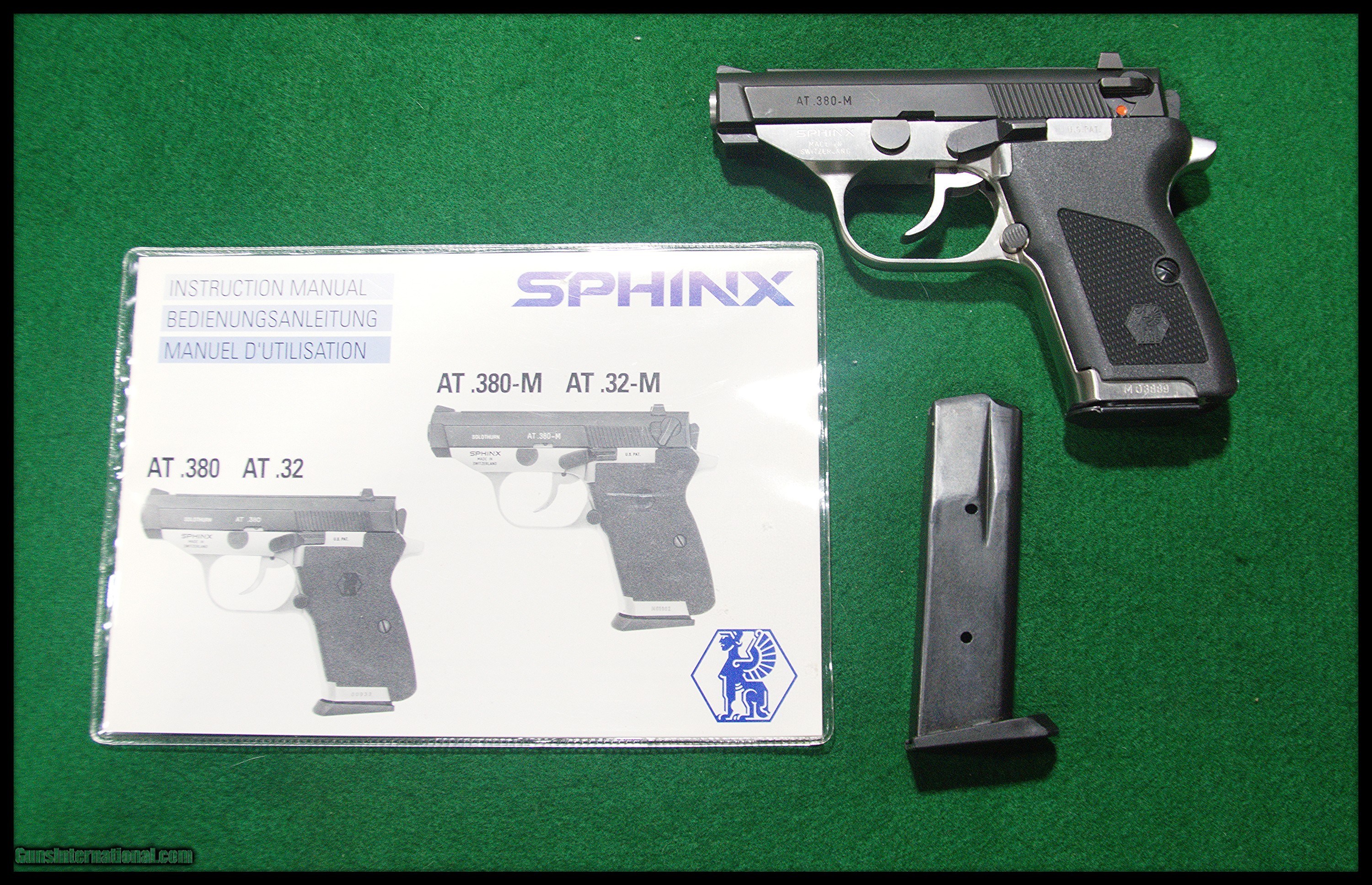 Description: Sphinx AT380-M .380 ACP made in Switzerland, manual safety version. Firearm, one extra magazine & manual only. No box. Handgun Caliber: .380 ACP (9x17mm Browning Short) Price: $500.00 Shipping: $75.00 Contact Seller |