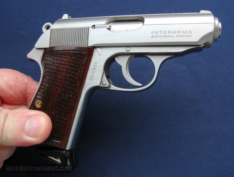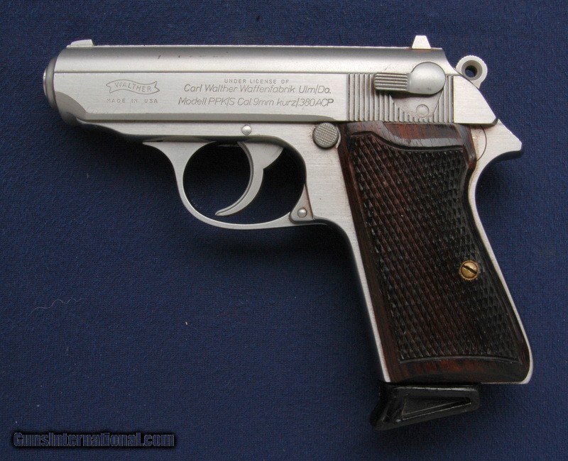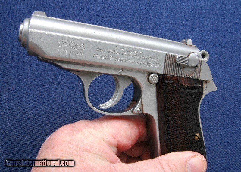 Description: This used PPK/S has lots of life left in it, clean, bright bore, aftermarket checkered walnut grips. It has been used and carried, so there are some scuffs and scratches on the steel. Sorry- no box or papers. $35 shipping to the lower 48, 3% surcharge for using a CC. If you choose to pay with a personal check, we will hold the item for up to 10 days to make sure that it clears. Please expedite such pymts as we will hold an item on your word for 5 days. SOLD |