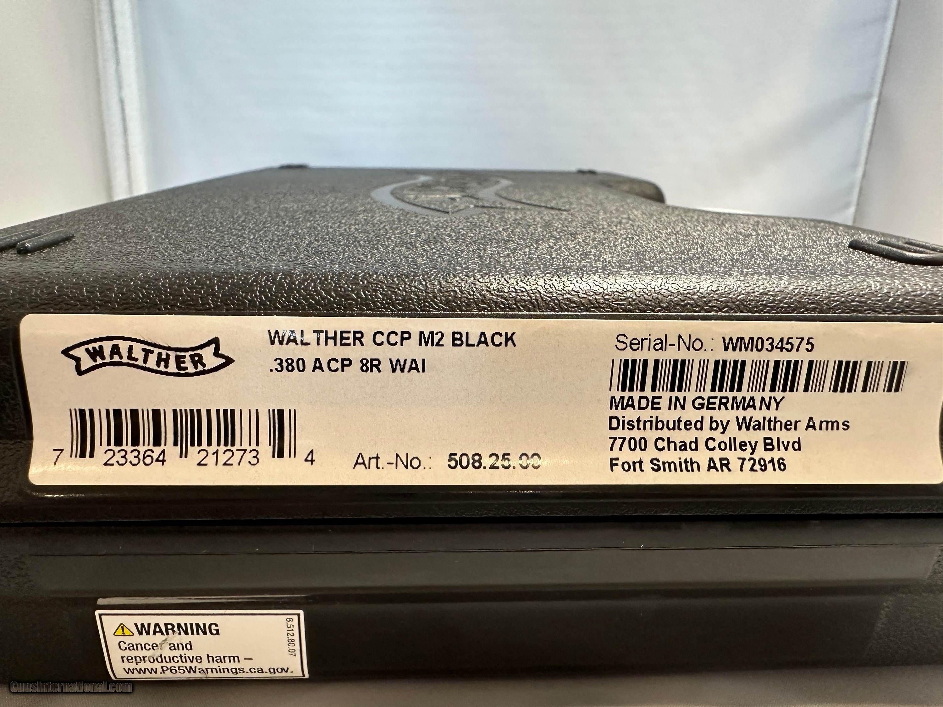 Description: Brand New Walther CCP M2 semi-automatic concealed carry pistol chambered in .380 ACP. It features a gas-delayed blowback operating system called "Soft-Coil" which reduces felt recoil and makes the slide easier to rack. Some key features of the CCP M2 include: