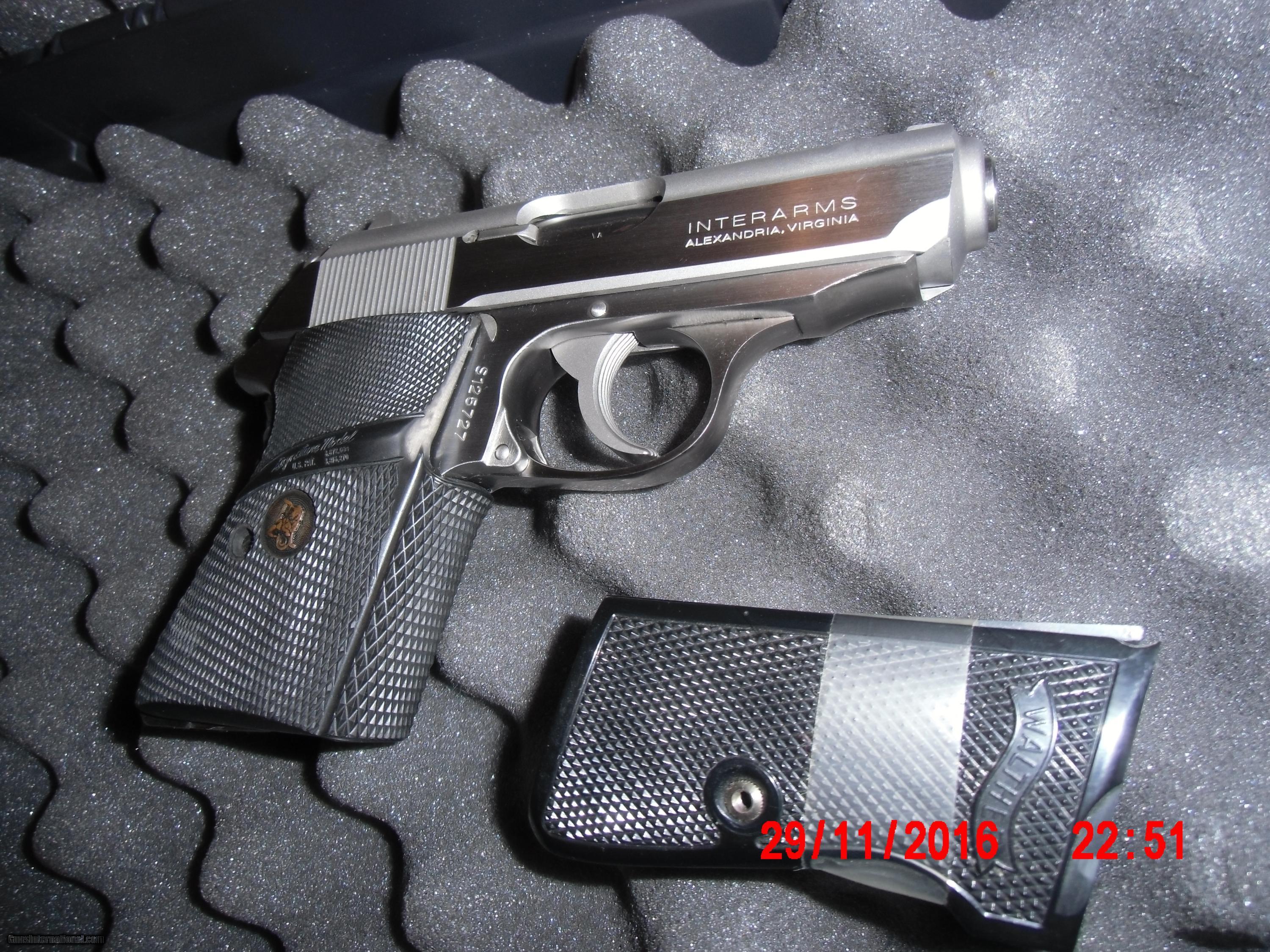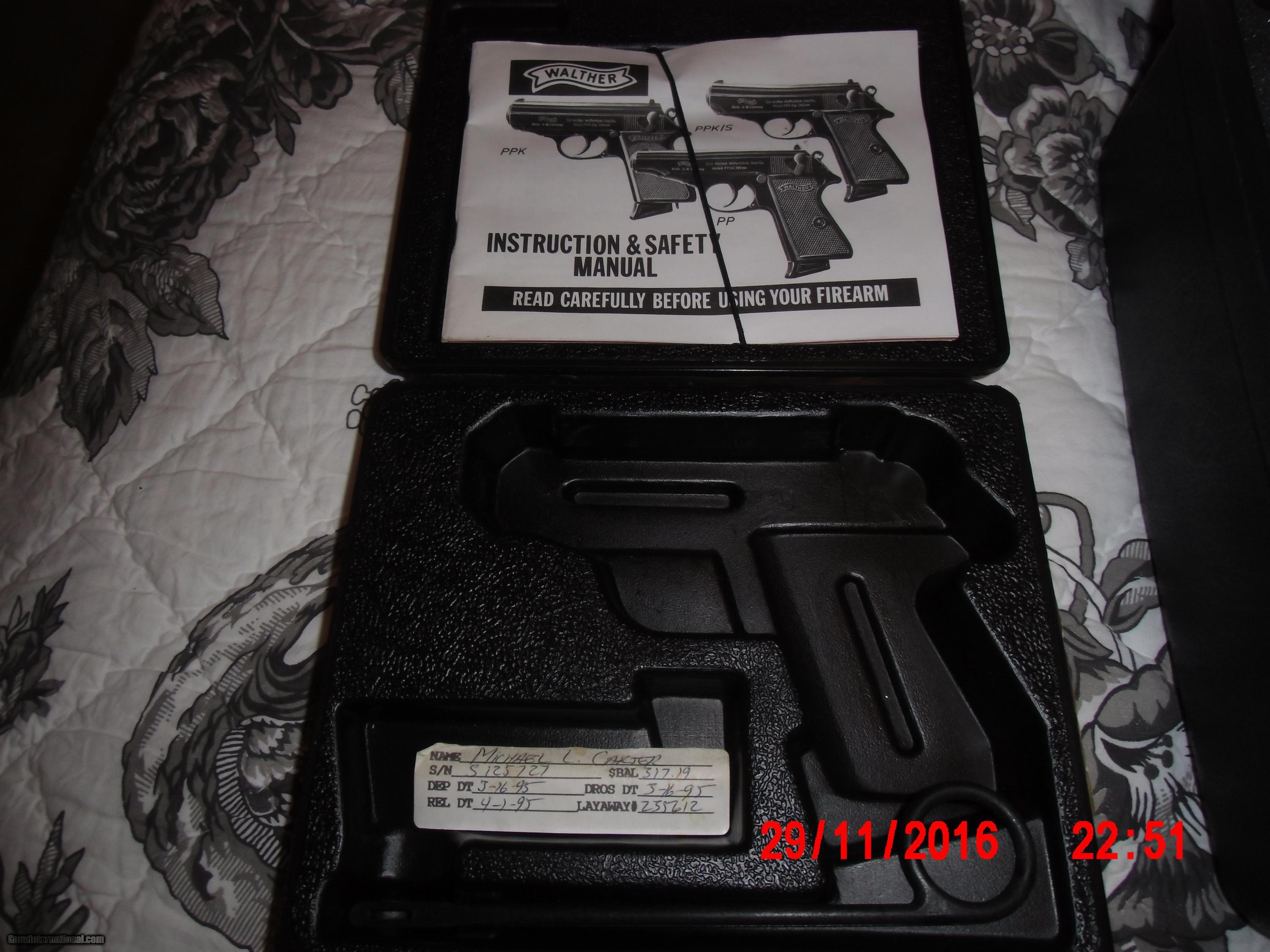 Description: Be sure to see all the photos ! Walther PPK/s stainless steel .380 with 6 magazines (2 finger rest and 4 flush fit) Pachmayr grip on the pistol with original factory grip panels included. original case with cleaning rod and manual. original owner info. included. I am second owner, I've owned this piece 20 yrs. I obtained this piece through trade. New Plano hard case included. As the second owner I've cared for and added the 4 mags, and the Plano hard case. The red dot on the safety is missing. it fell out and can easily be replaced with paint/nail polish. I chose to leave it alone. this is not manufactured by Smith and Wesson. A great Value with the extra grip, hard case and 4 extra magazines. Hard case has 2 layers and can hold multiple hand guns. Last photo has all the guts and the glory! Be sure to see all photos! SOLD Manufacturer: Walther/ Interarms Model: PPK/S Serial Number: S125727 Caliber Info: .380 Condition: EXC. Metal Condition: EXC. Action: D/A S/A Finish: Stainless Sights: fixed Manufacture Date: 1993/94 Item Location: Florida |