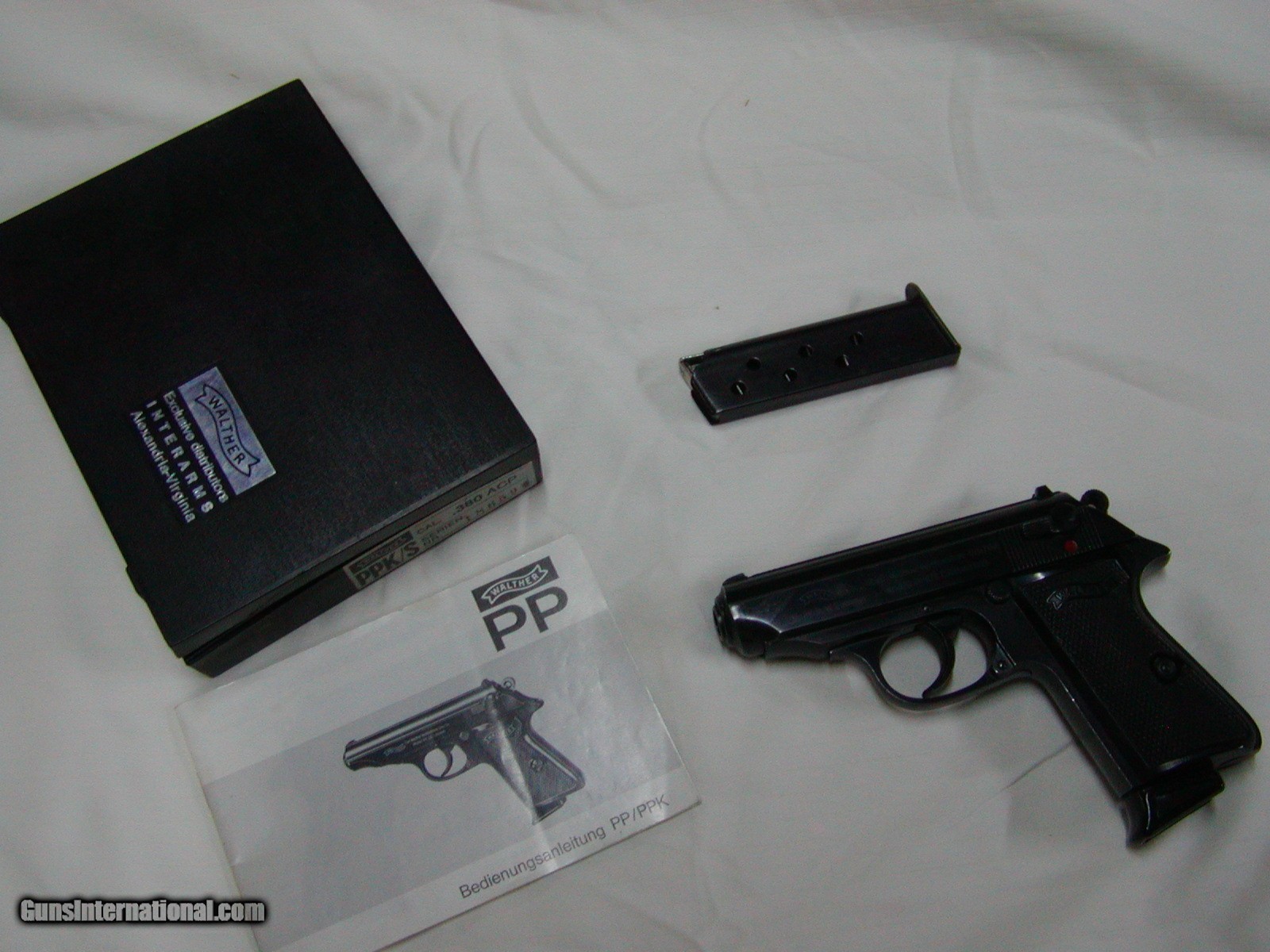 Description: Walther PPK/s. .380 ACP, Blue, Interarms Import, Made in W. Germany (1974), SN= 1865xx, 2 magazines, box and manual; very slight pitting on right side of slide along with a little holster wear, otherwise excellent condition. SOLD Manufacturer: Walther Model: PPK/s Serial Number: 1865xx Caliber Info: >380 ACP Bore Condition: excellent - bright Finish: blue Sights: 3 dot Manufacture Date: 1974 |