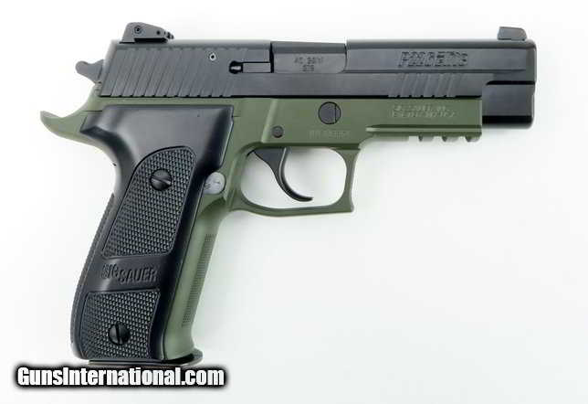 Sig Sauer P226 .40 S&W caliber pistol. Elite model with custom black/green finish in excellent condition.