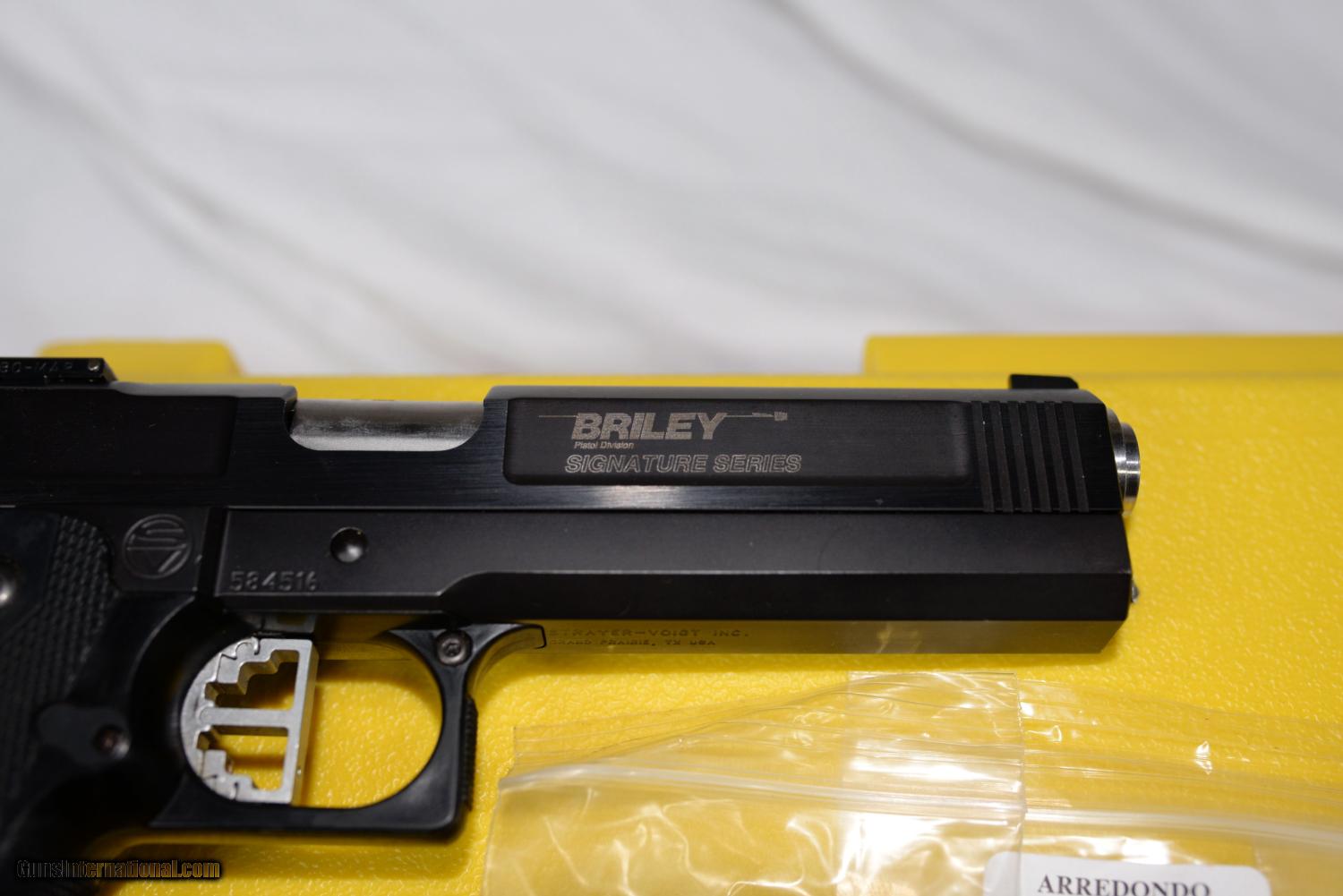 Description: ***BRILEY 9MM/40 CAL S&W*** FAMILY: Briley Siganture Series MODEL: Briley Signature Series TYPE: Semi-Auto Pistol ACTION: Semi-Auto Pistol FINISH: Black CALIBER/GAUGE: 9MM/40 SW CAPACITY: 10 # OF MAGS: 2 BARREL: 5" OVERALL LENGTH: 8.5" - 9" ADDL INFO: Addtional Slide & Barrel COND: Excellent ****Please read the entire text before purchasing this item. **Please make sure that this gun is legal to own in your state of residence. WILL NOT be modify in any way to make legal in different states. **Payment information: Cashier’s Check, and Money orders. **Please allow 1-3 business days for guns to ship once FFL is received. FFL's can be emailed. **Once payment and FFL are received gun will be shipped via FFL Dealer SOLD Manufacturer: Briley Model: Signature Series Serial Number: 584516 Caliber Info: 40 Condition: Excellent Metal Condition: Excellent Bore Condition: Excellent Barrels: Excellent Action: Semi-Auto Triggers: Adjustable Extras: Slide/Barrel and Mag |
