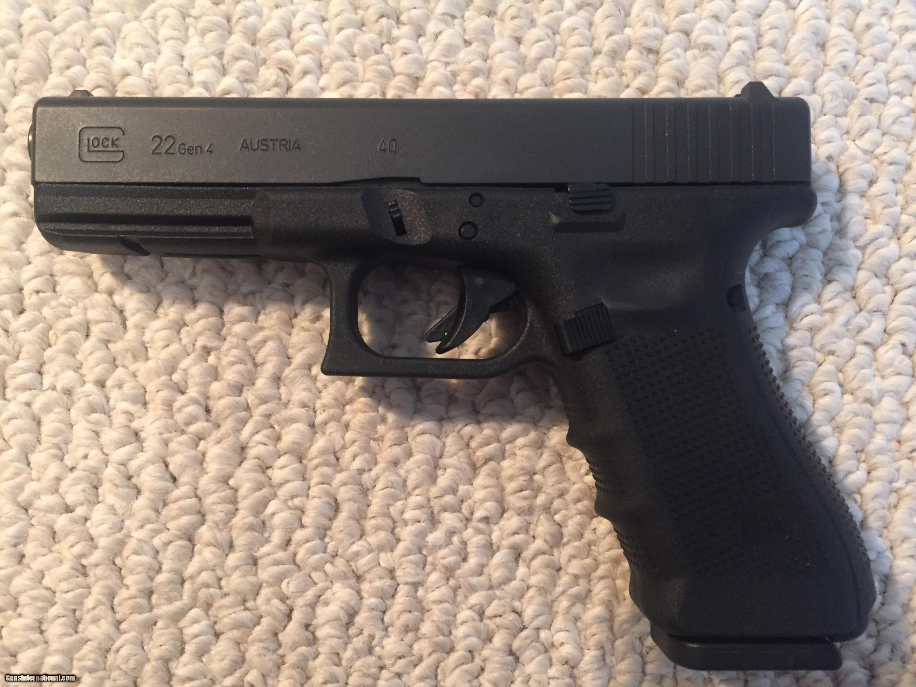 Description: Glock model 22 40 cal gen 4 This pistol is in great shape . Original Glock carrying case. SOLD Manufacturer: Glock Model: 22 Serial Number: Plg6630 Caliber Info: 40 Condition: Excellent Bore Condition: Excellent Sights: Fixed |