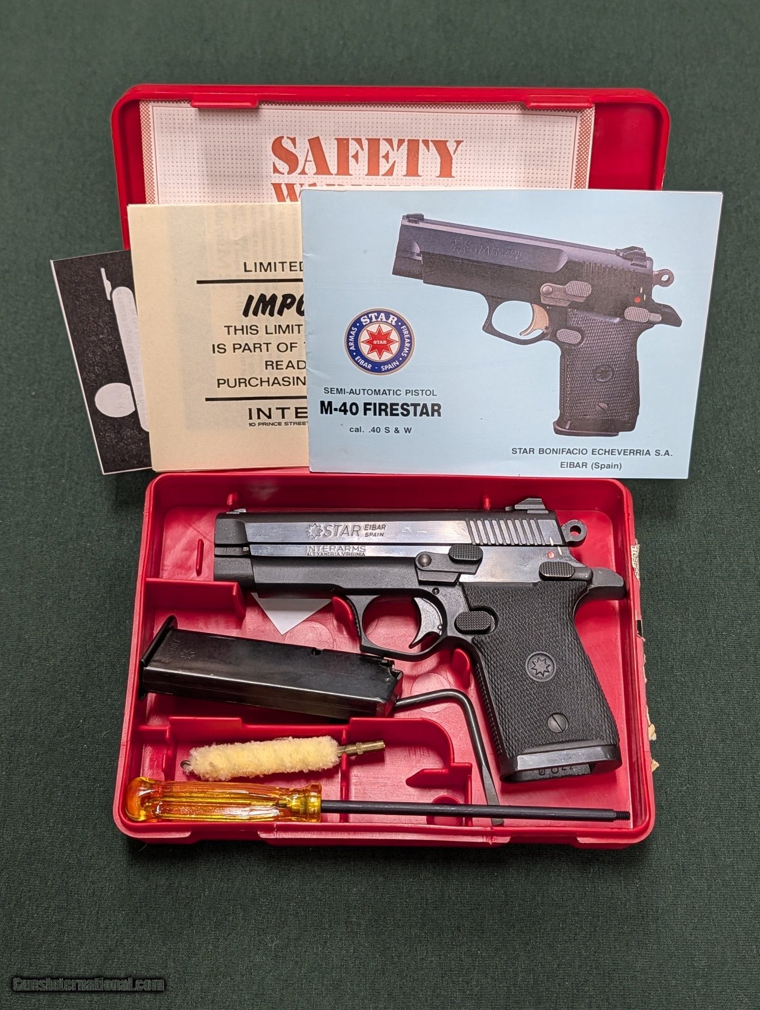 Description: Guns Listing ID: 597289 Used Firestar in 40S&W. Firearm is in good to very good condition and has a magazine disconnect. Includes everything seen in pictures. Manufacturer: INTERARMS Model: Firestar Caliber Info: .40 S&W Condition: Used - Non-Certified Barrels: 3.5" BARREL Action: SEMI AUTOMATIC Finish: black Price: $350.99 Contact Seller |