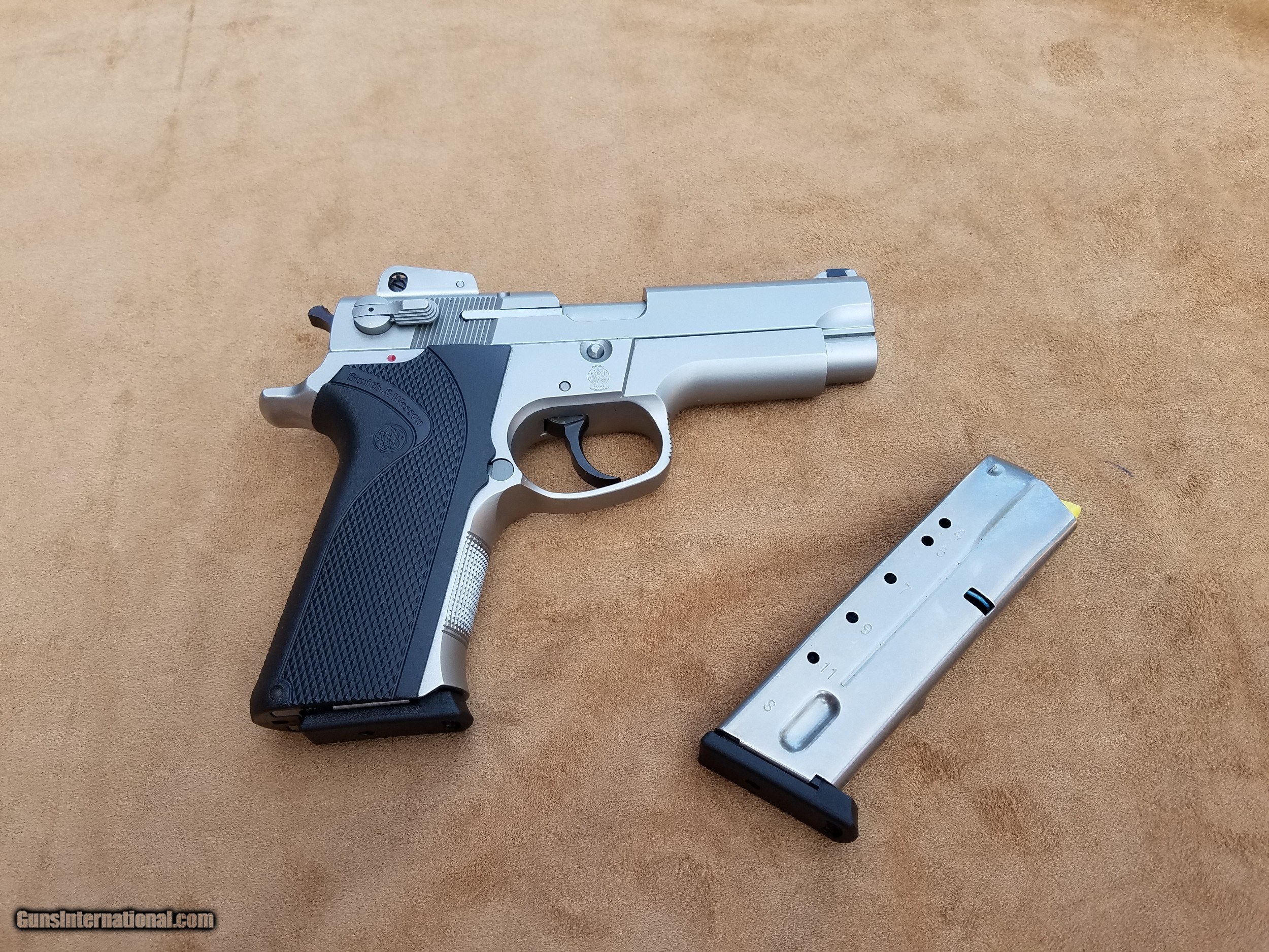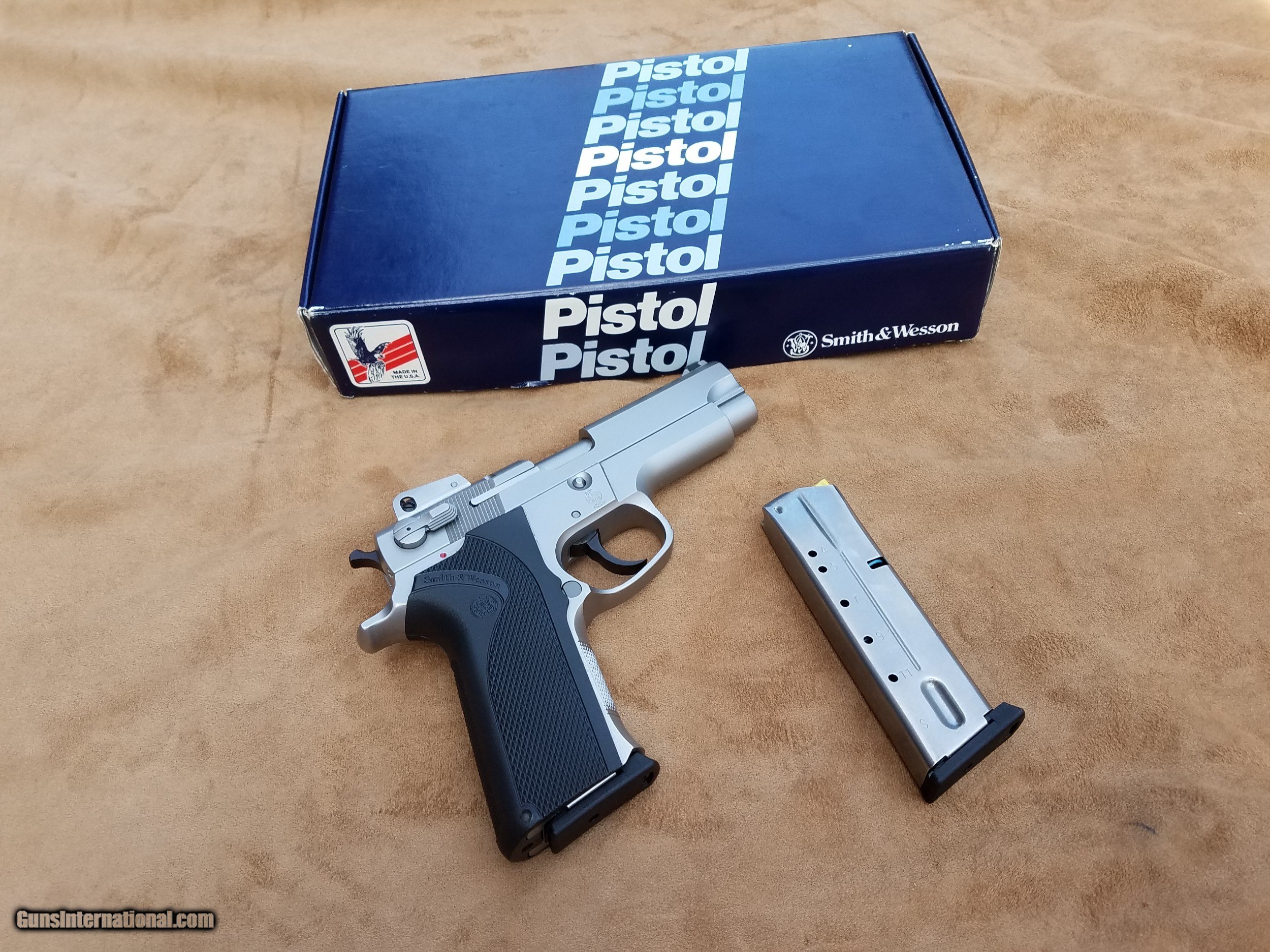 Description: The S&W Model 4006 was made from 1990 to 1999. It is one of the first Smith & Wesson pistols chambered in the .40 S&W cartridge. This pistol comes with a 4 inch barrel, exposed hammer with ambi safety/de-cock feature, Delrin one piece wrap-around grips, 3-dot adjustable rear sight, satin stainless steel finish, (2) 11-round magazines Pistol is in "as new" condition: I have fired it less than 200 times and all the finish surfaces are as new. This Model 4006 comes with its original gun box and instruction manual. This is an extremely nice .40 S&W pistol that is a joy to shoot/very accurate, and its recoil is pleasantly lighter than expected. I am happy to provide additional pictures on request and to answer any questions you have about the gun. SOLD Handgun Caliber: .40 Smith & Wesson (.40 Auto, 10 x 21 mm) Manufacturer: Smith & Wesson Model: 4006 Serial Number: VCH1779 Barrel Length: 4 Condition: New Metal Condition: Perfect Wood Condition: Perfect Synthetic Bore Condition: Perfect |