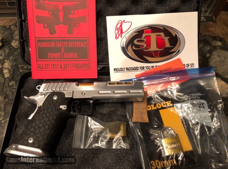 Description: New in box STI DVC Limited 2011 chambered in .40 S&W. Comes with factory box, lock, 2 test shell casings from the factory, owners manual, 1 STI magazine, allen wrench tools, extra fiber optic inserts from Dawson Precision in both green fiber and Red Fiber. Lifetime transferable factory STI factory warranty. Sold as is. All sales are final. SOLD Manufacturer: STI Model: DVC Limited 2011 Caliber Info: .40 S&W Condition: New Metal Condition: New Wood Condition: N/A Bore Condition: New Barrel Type: BBL Sights: adjustable |