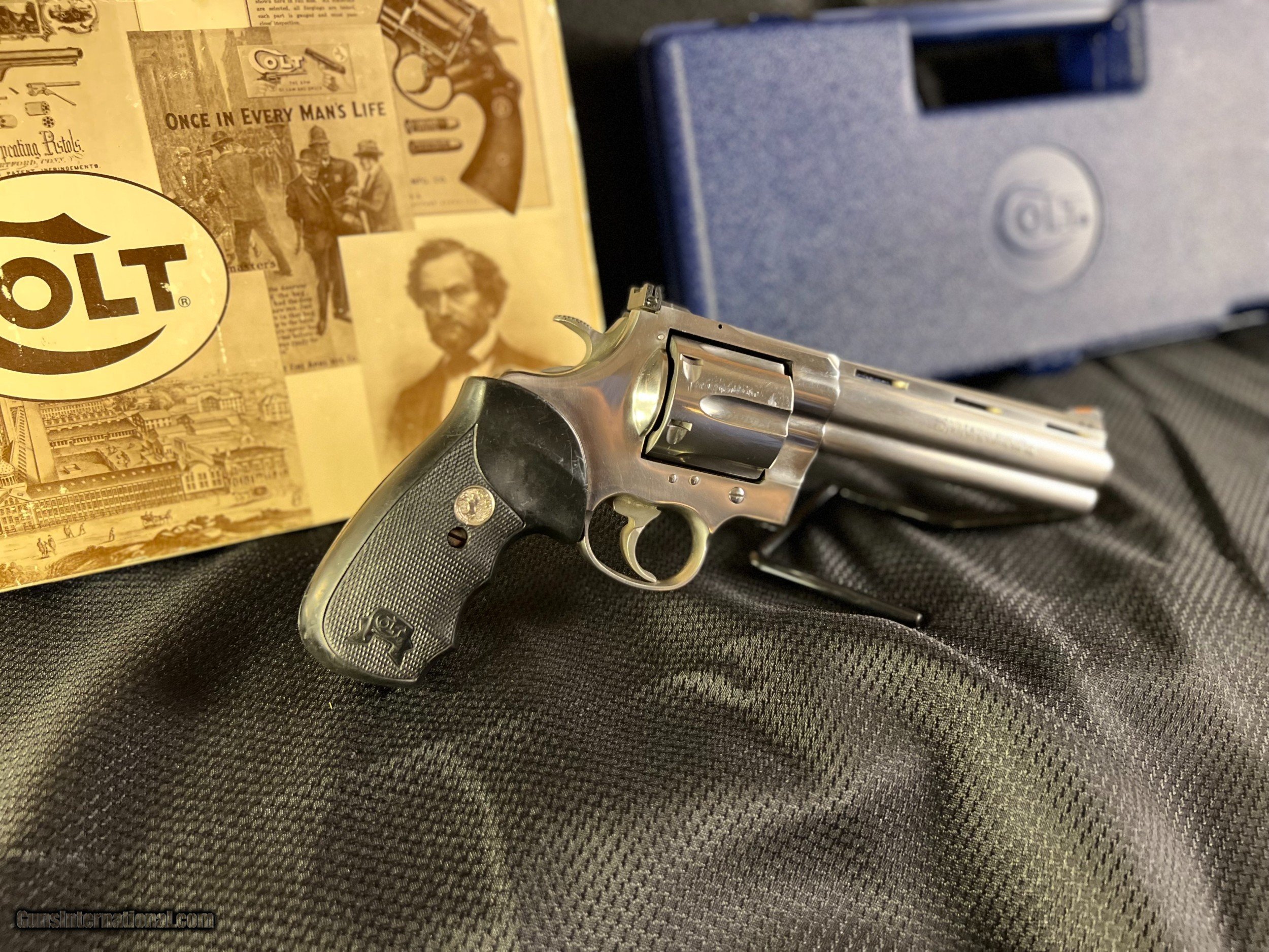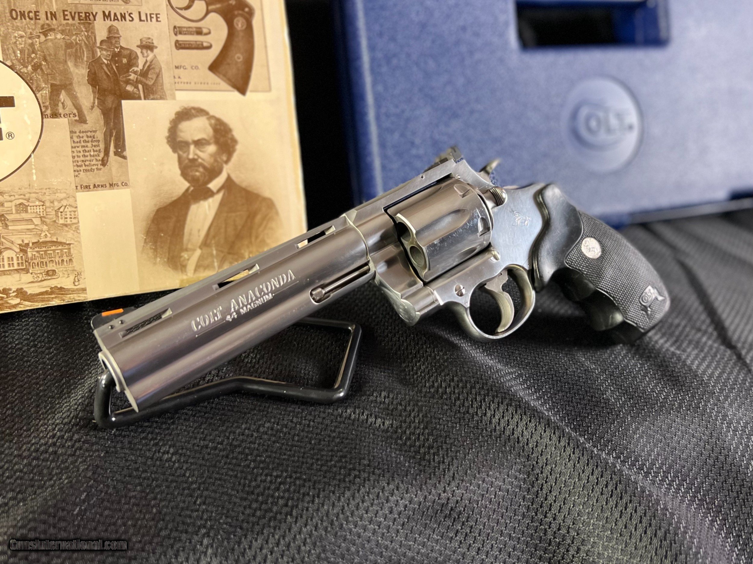 Description: Hello GunsInternational - I am parting with my 1994 Colt Anaconda in .44. I am the original buyer and I am only parting with it as I no longer need it. The revolever is in excellent condition, has been fired and serviced. Revolver ships with original Pachmyer grips, box and paperwork. Please don't hesitate to reach out to me directly with any questions. Thank you, -Joe SOLD Handgun Caliber: .44 Remington Magnum Manufacturer: Colt Model: Anaconda Barrel Length: 6 Chambers: 6 Condition: A |