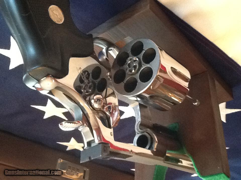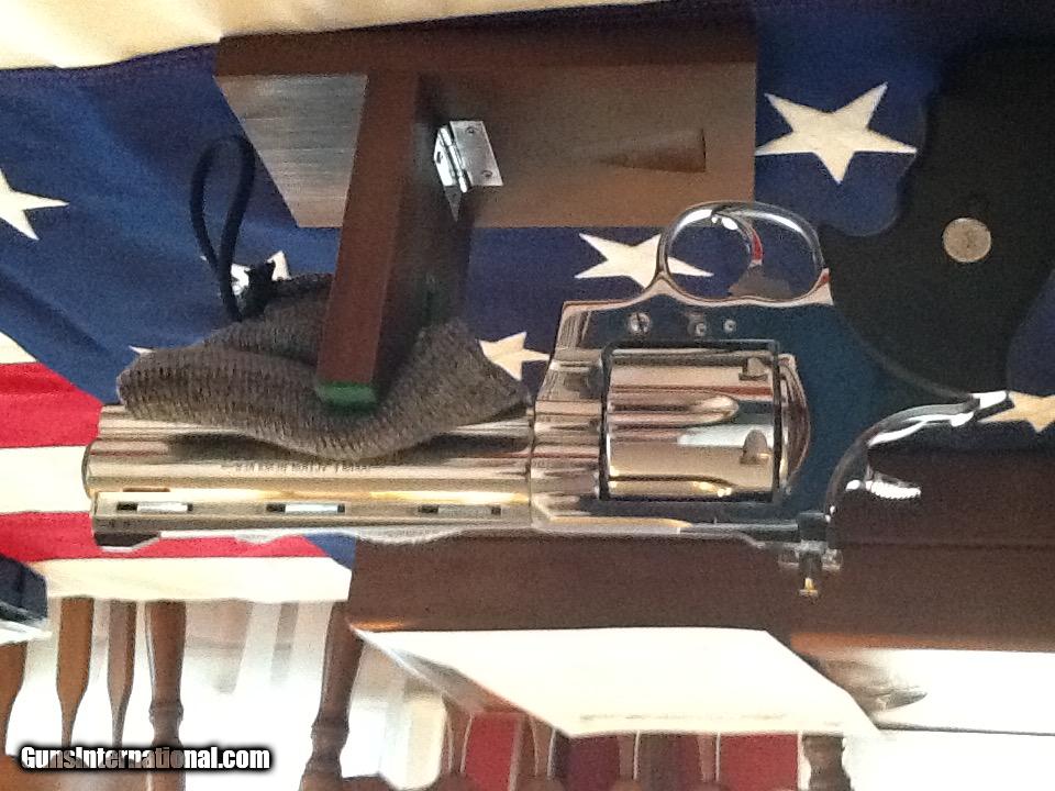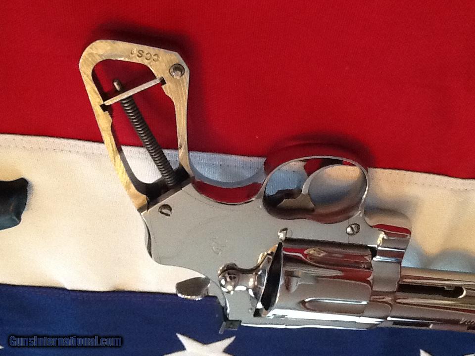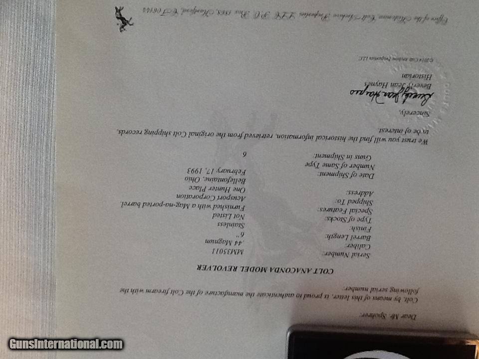 Description: 1993 colt anaconda safe queen bright polished ,ported,6" sts,ellioson rear adjustable,smooth non serated trigger,ccs 4 engraved on handle frame,factory trigger job,ultra smooth,lands and groves pronounced,lock up tight,has been fired,but not much at all very faint drag line,it came to me with a oak colt presentation case,also a blue,not original to gun,colt case all paper work plus acrchival letter from colt,custom leather holster from cme of texas,very well taken care of,dont see many custom shop anacondas,from this year with magna pirted barrels ,factory trigger job,up for sale,if you would like more photos or history of gun just ask,,ffl to ffl only,,3500.00 plus 45.00 for ins shipping...thanks for looking SOLD Manufacturer: colt Model: anaconda Serial Number: mm35011 Caliber Info: 44 mag Bore: bright and shiny Chambers: 6 Condition: excellant Metal Condition: 99. 0/0 Action: double |