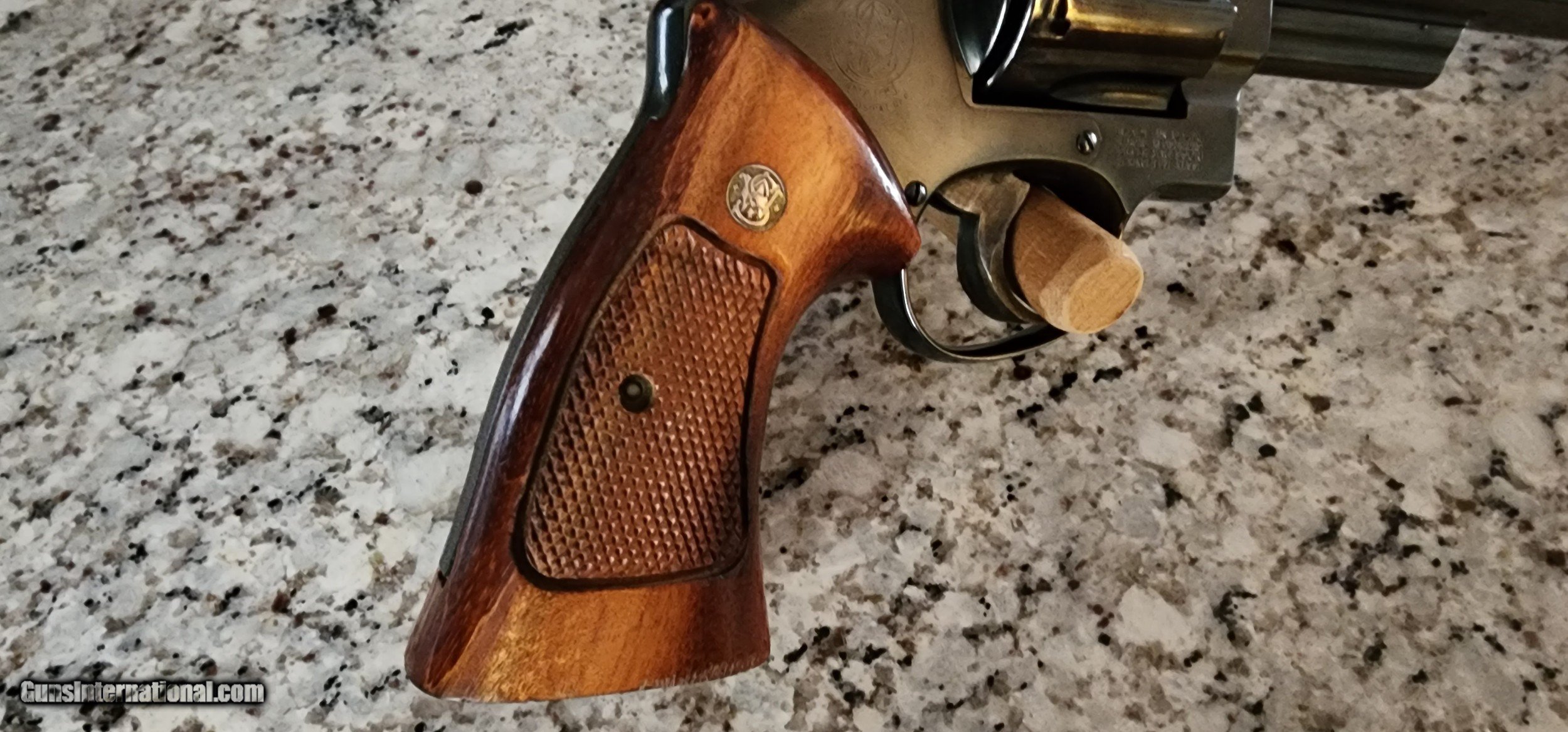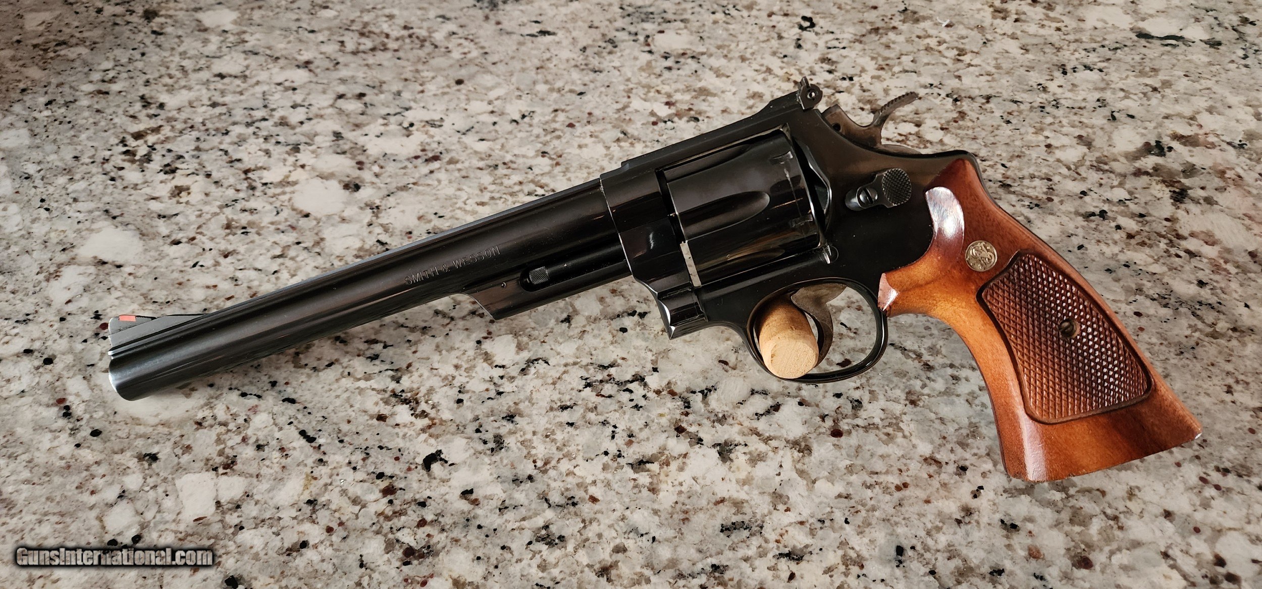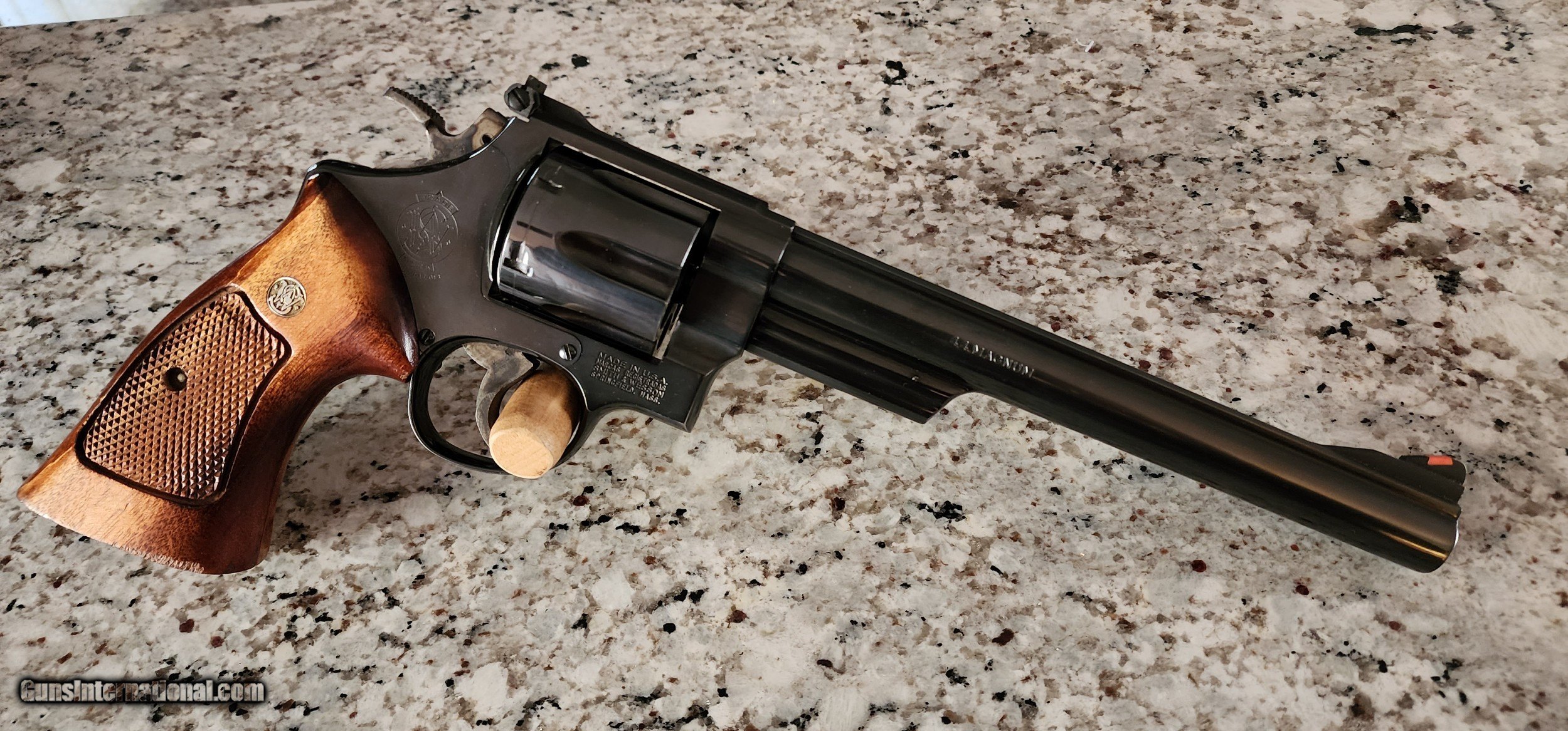 Description: SMITH & WESSON REVOLVER MODEL 29-3 ( early 1980's manufacture) 44 MAGNUM CALIBER.8 3/8 BARREL WITH EXCELLENT BORE,99% ORIGINAL METAL BLUE,NO EDGE WEAR,ONLY LIGHT CYLINDER TURN RING.EXCELLENT FACTORY GRIPS.GUN IS BEAUTIFUL.1050.00 SHIPPED.CALL DANNY AT 828-243-6269.FORSYTH GA. SOLD |