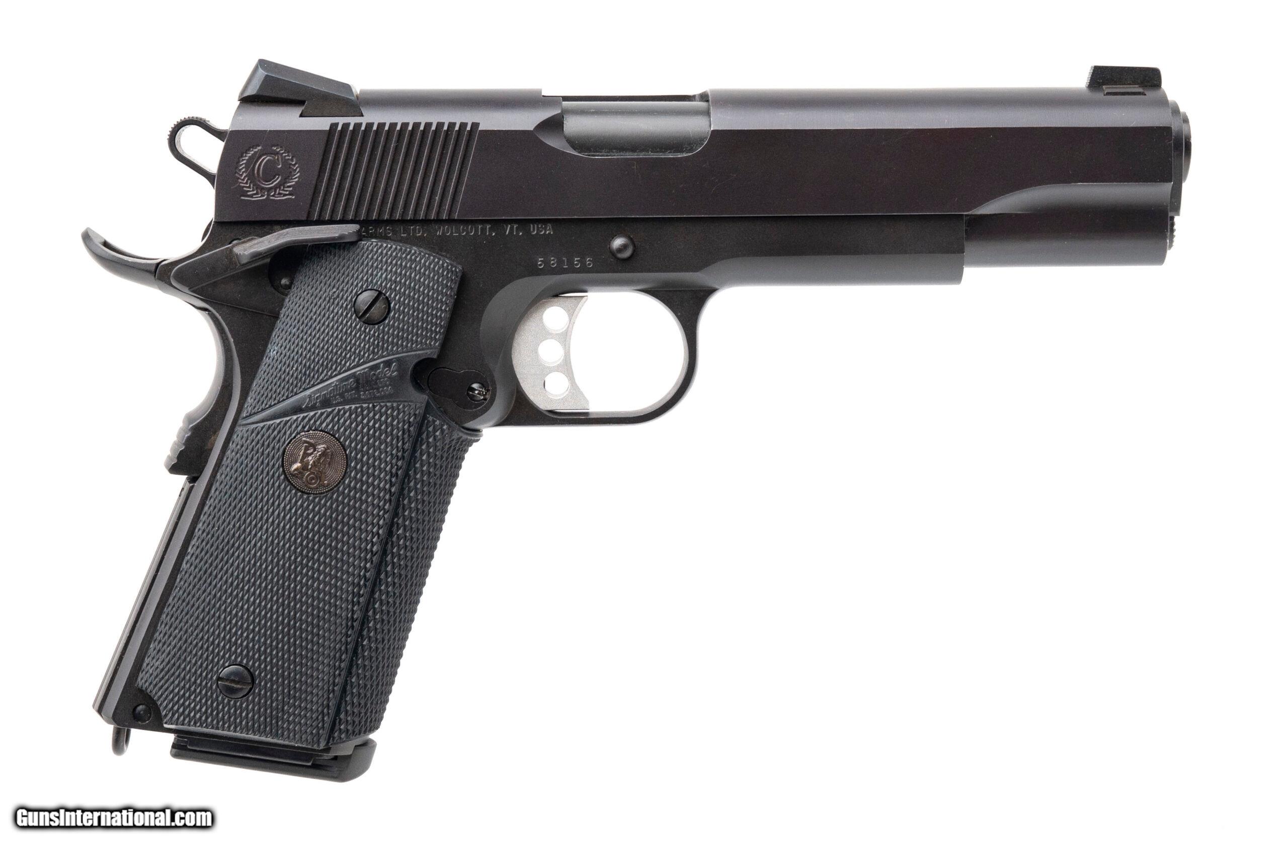 Description: "SN: 58156. 1990s vintage, .45 Auto with a 5"" barrel. Bore is bright with strong rifling. Blued full size 1911 style pistol with pachmayr grips. Overall condition is near excellent. Comes with Pelican 1400 hard case and two extra magazines. Price: $3,000.00 Contact Seller |