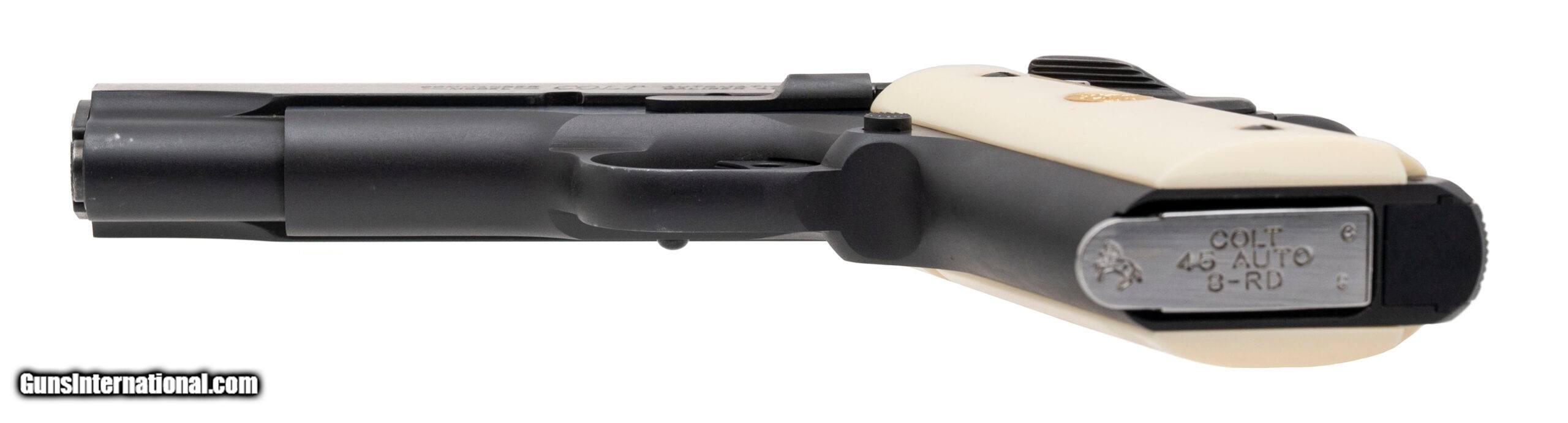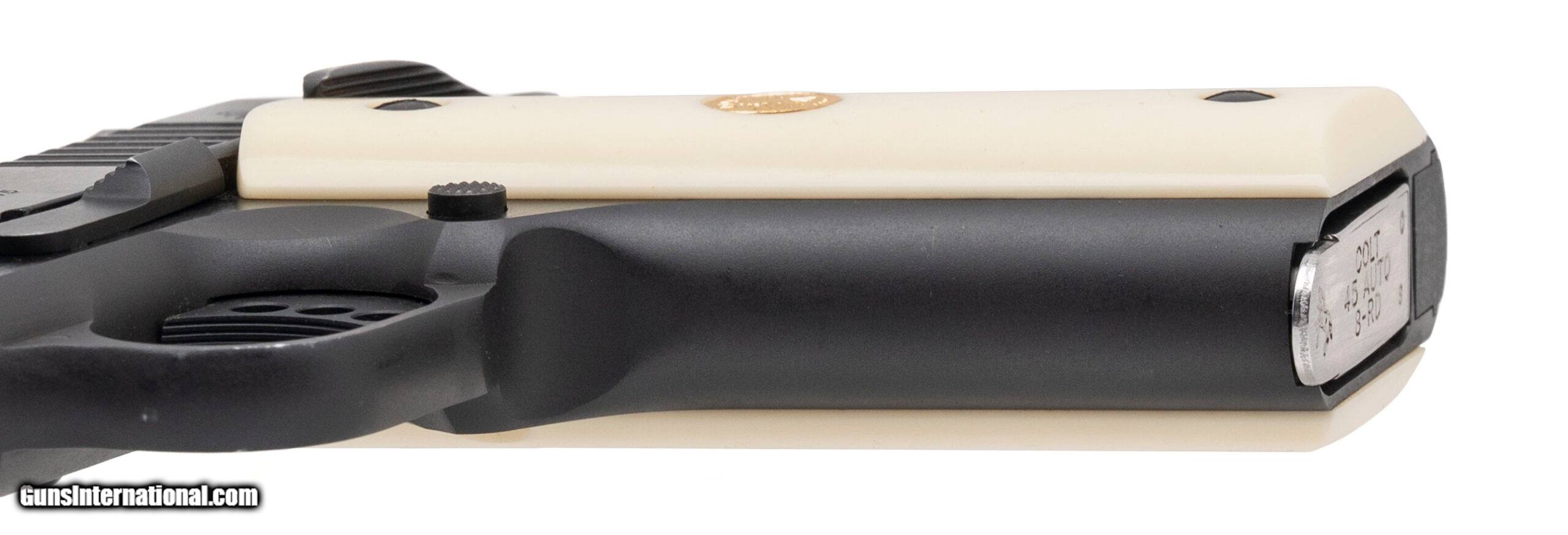 Description: "SN: XE06845, modern production semi-auto commander size pistol chambered in 45 with a 4.25" barrel. Blued metal with faux ivory medallion grips, Novak rear sight with front night sight. Overall in very good condition with an excellent bore. Dallas Location Price: $1,499.95 Contact Seller |