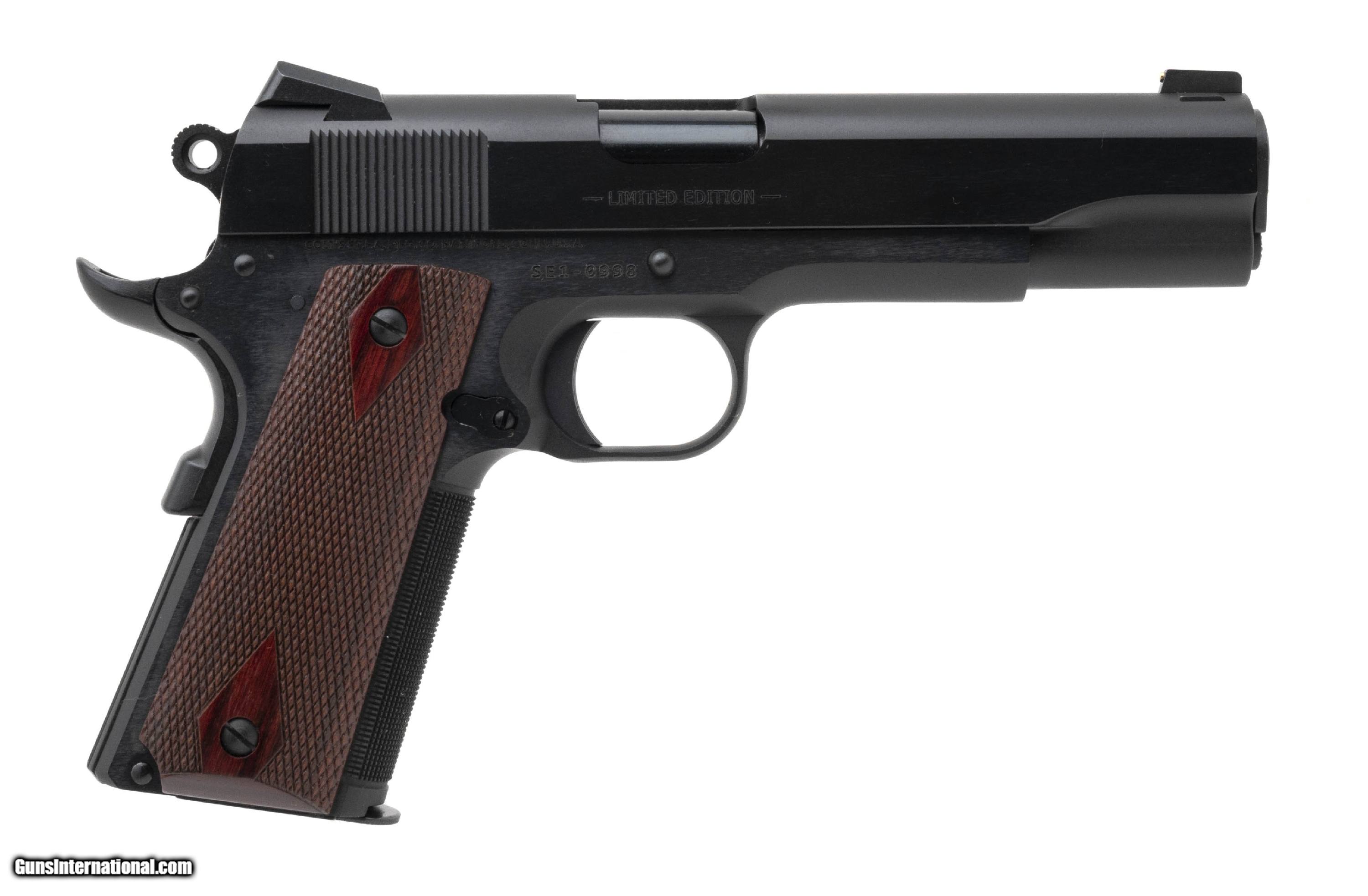 Description: "SN:SE1-0998. Modern production .45 ACP with a 5"" barrel. Bore is excellent. Limited edition 1911 pistol with checkered grip frame, Novak gold bead sight, and national match barrel. Overall condition is excellent with original box. Price: $1,495.00 Contact Seller |