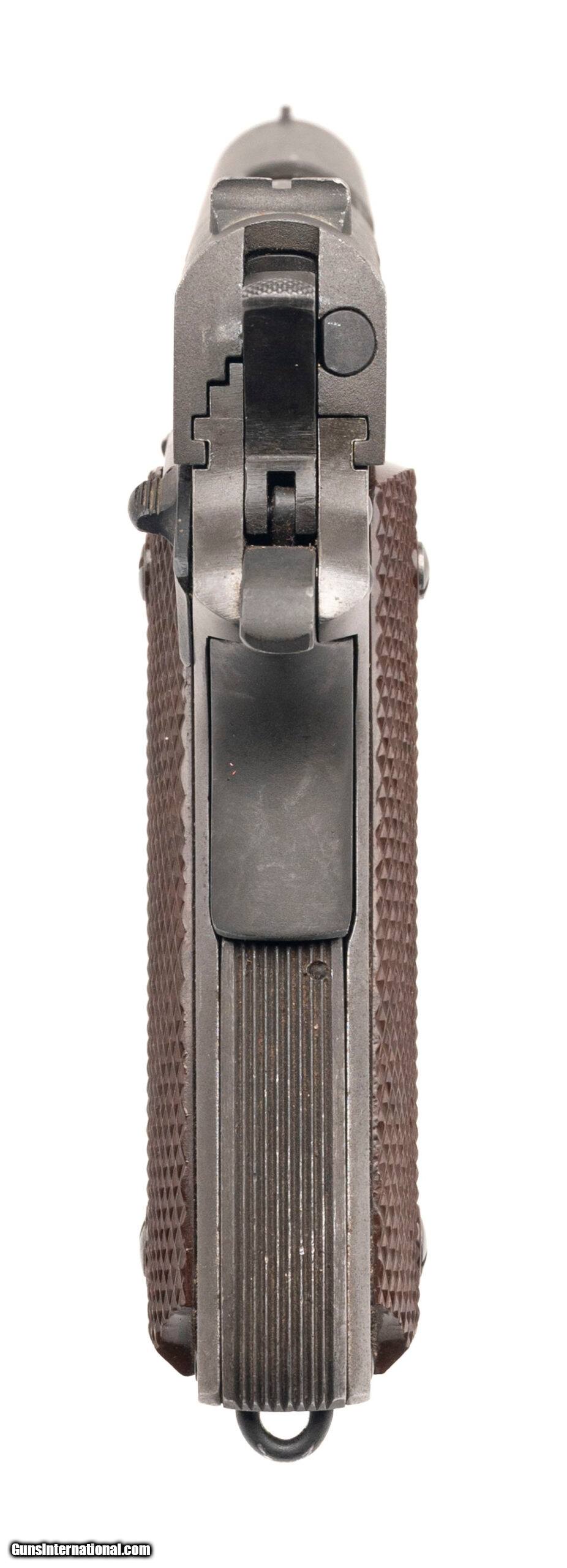 Description: "Serial number 780561. The frame for this pistol was made by COLT in 1942 & the slide was made by Ithaca. Equipped with a 5-inch Type 14 SA barrel with a PX-4 heat lot number & a bright bore with strong visible rifling. Overall condition is very good but a difference in finish is noted between the slide, the frame & the barrel. Comes with plastic grips & USGI 7-round magazine made by Risdon Tool & Machine Co., Naugatuck, Conn. Price: $1,650.00 Contact Seller |
