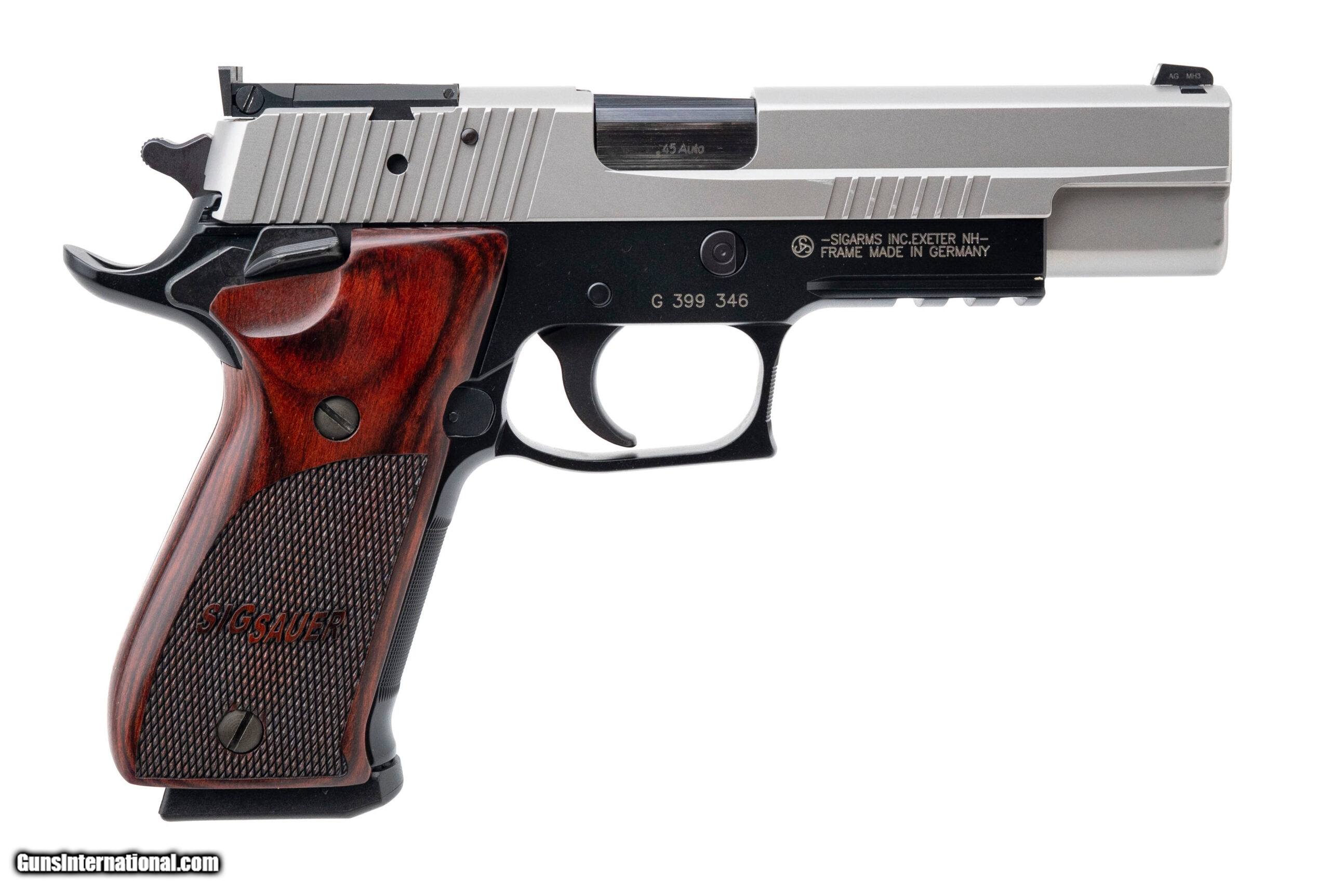 Description: "SN: G399346. Modern production, .45 Auto with a 5"" barrel. Bore is bright with strong rifling. German made two tone alloy frame pistol with wood grips and a tritium front sight. Excellent overall condition. Comes with case and an extra magazine. Price: $1,800.00 Contact Seller |