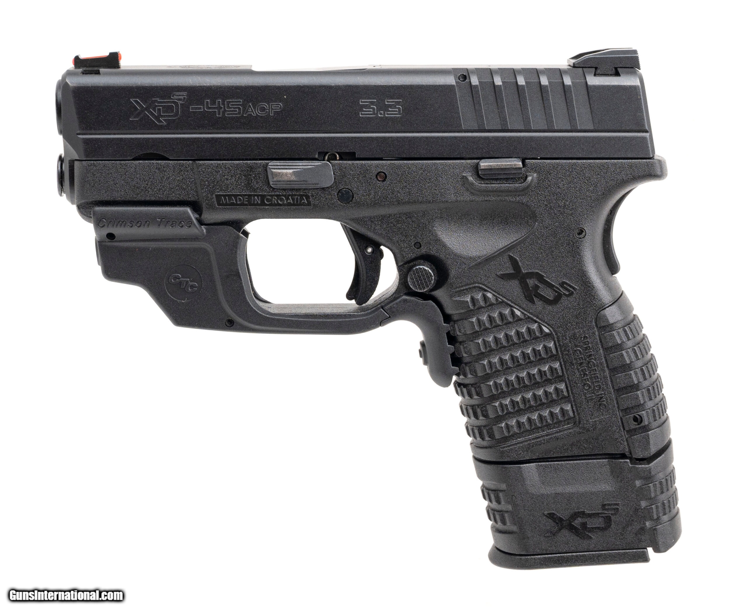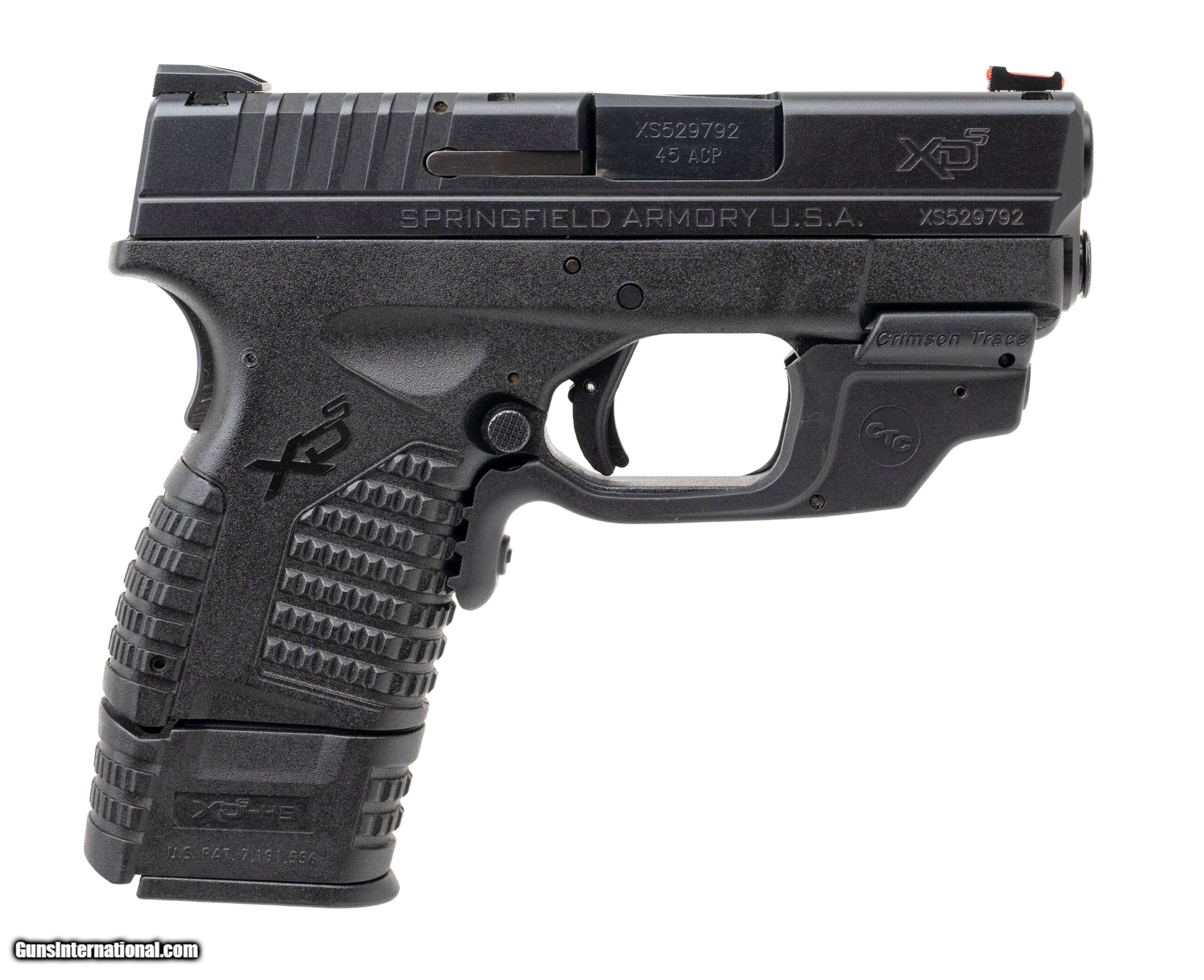 Description: "SN: XS529792. Modern production, .45 ACP with a 3.3"" barrel. Bore is excellent. Sub-compact striker-fired pistol with a Crimson Trace laser module, fiber-optic front sight, matte black finish, and black polymer frame. Finish shows minor handling marks. Includes original case. Overall condition is very good. Price: $499.95 Contact Seller |
