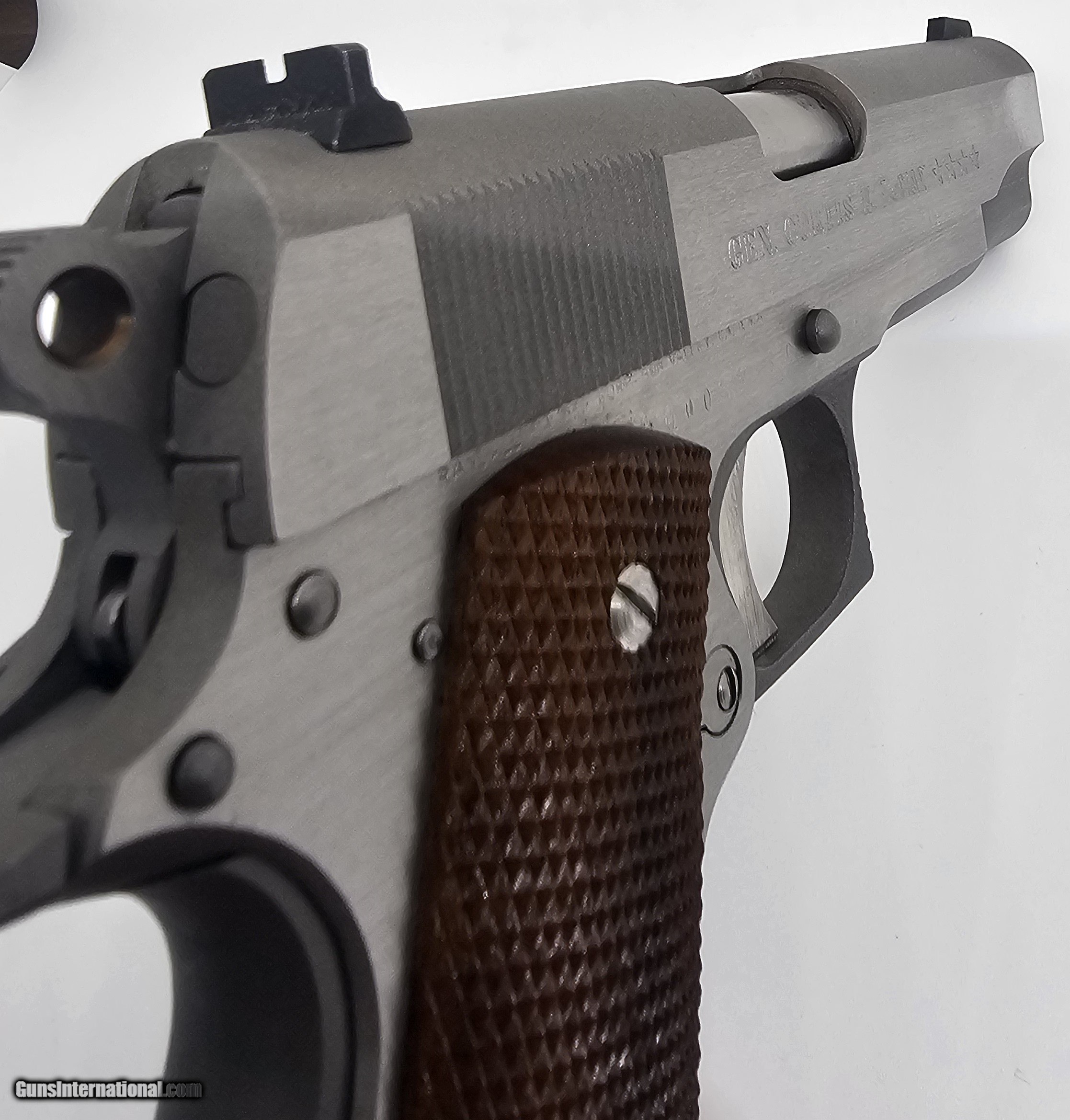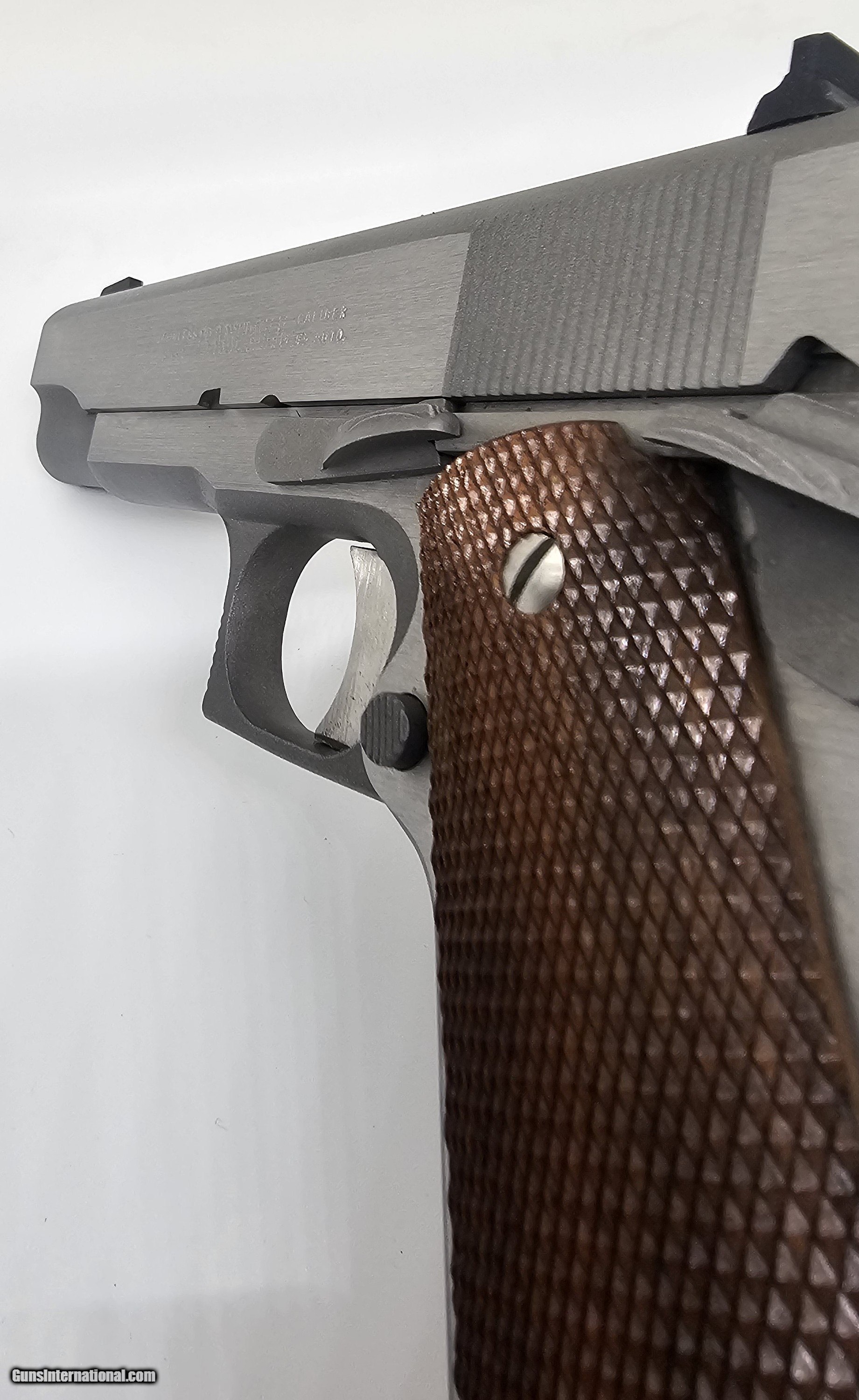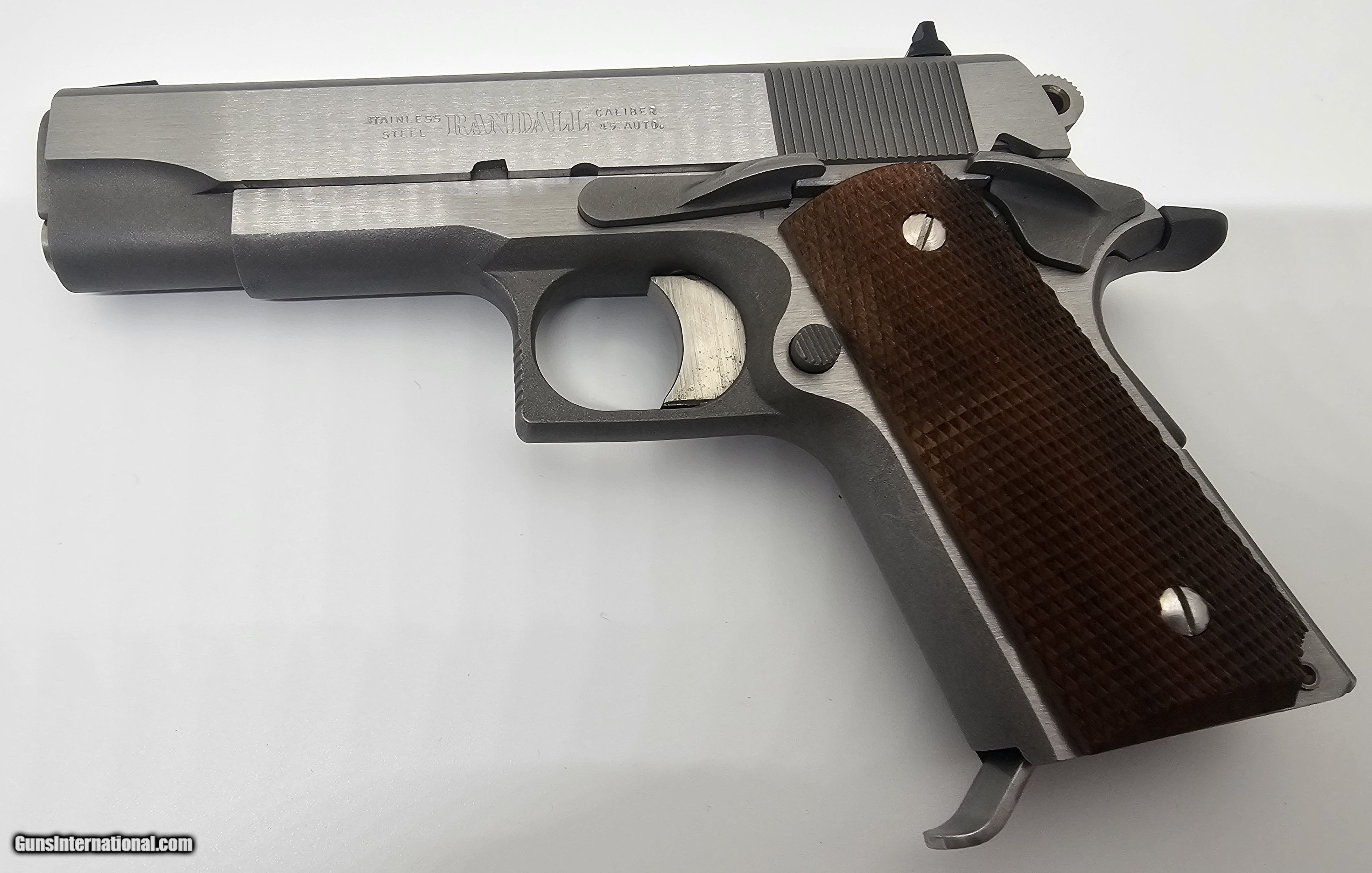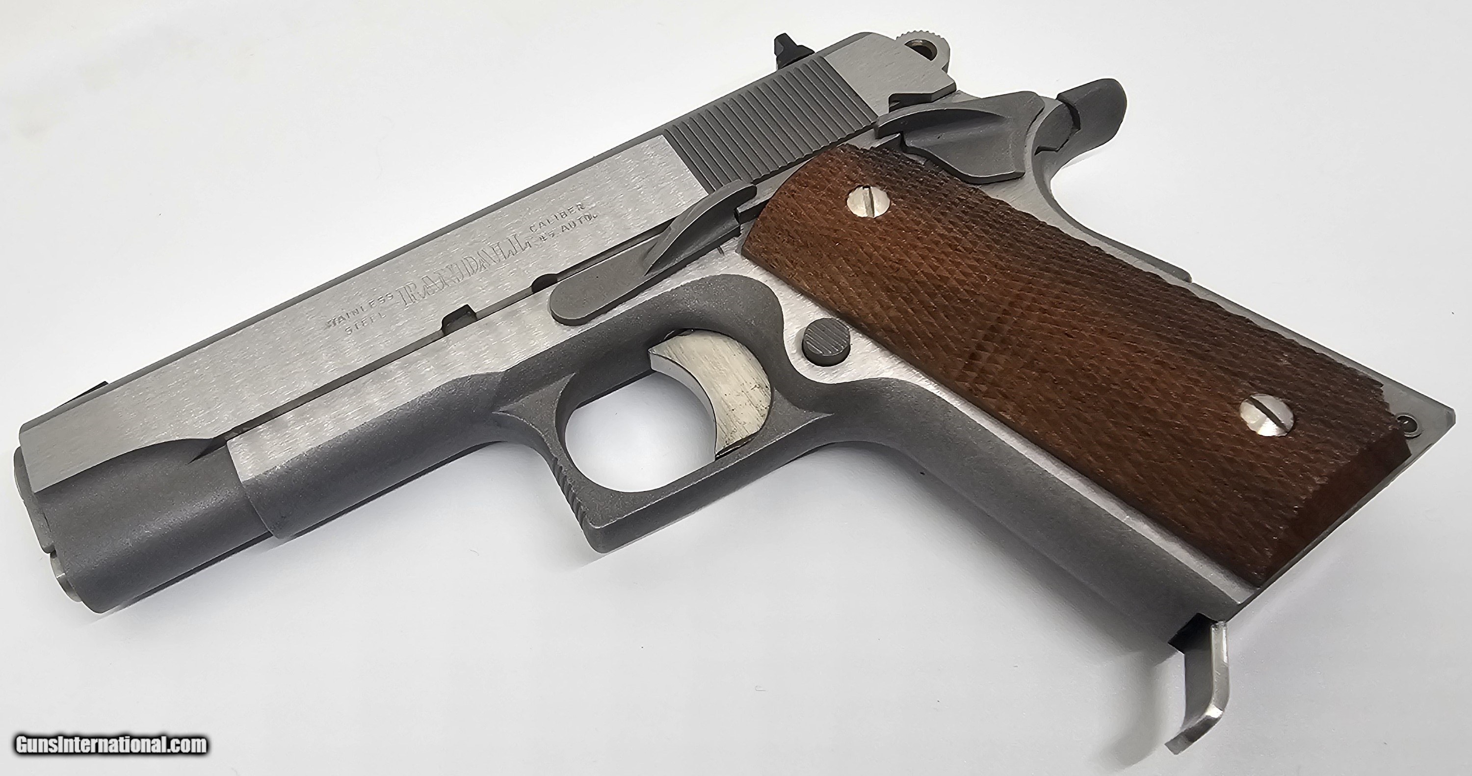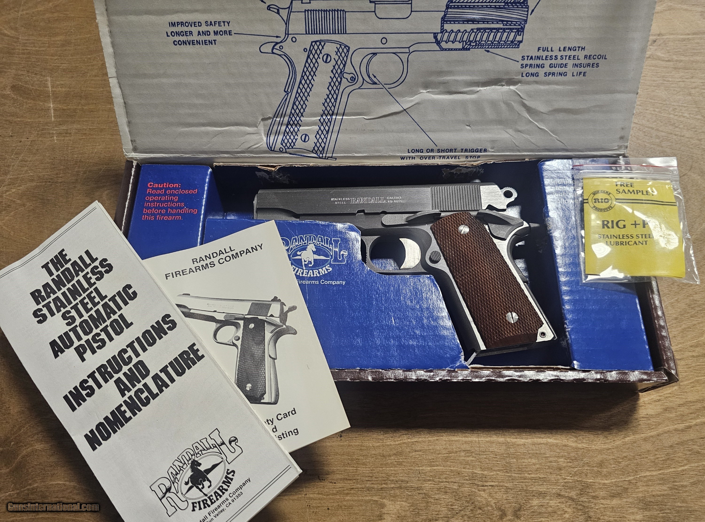 Description: Although Stainless Steel handguns are now common, Randall Firearms did it first. Between June 7th 1983 and May 15 1985, they produced only 9,968 pistols, the first of their kind to be produced in Stainless Steel. Given the limited production, they are sought after by collectors of this usual brand. This is a very nice example of the Randall General Curtis Lemay 4 Star 1911, with it's original box. The checkered wood grips are in very good condition. It features a rounded slide, grip safety and dovetail sights. Whether you are looking to add to your collection or start one, this Randall is a great choice. Head to the range and you're sure to get some attention with this unusal pistol. Please see photos for condition and markings, feel free to contact us with any questions or offers. Payment Methods: Payment can be made by Cashier’s Check (ships upon receipt of payment). For most purchases we can also accept VISA, MasterCard, American Express and Discover cards, subject to a 3% charge. On some purchases we will accept a Personal Check, subject to prior approval, with an additional hold of 7-10 business days to fully clear our bank. Sales Policy: Any questions or concerns you may have should be resolved before committing to purchase by contacting us. Some items may not be legal in every state, thus it is up to you, the buyer, to know and comply with your local and state laws. While we do our best to visually inspect all firearms, the Buyer is responsible for determining if a used gun is safe to shoot. The firearms offered have not been test fired, and we recommend that you should have any used firearm inspected by a gunsmith prior to shooting. We strive to provide top quality service along with fair and competitive prices. All of the information provided on each firearm is as accurate as possible. SOLD Handgun Caliber: .45 ACP (.45 Auto) |