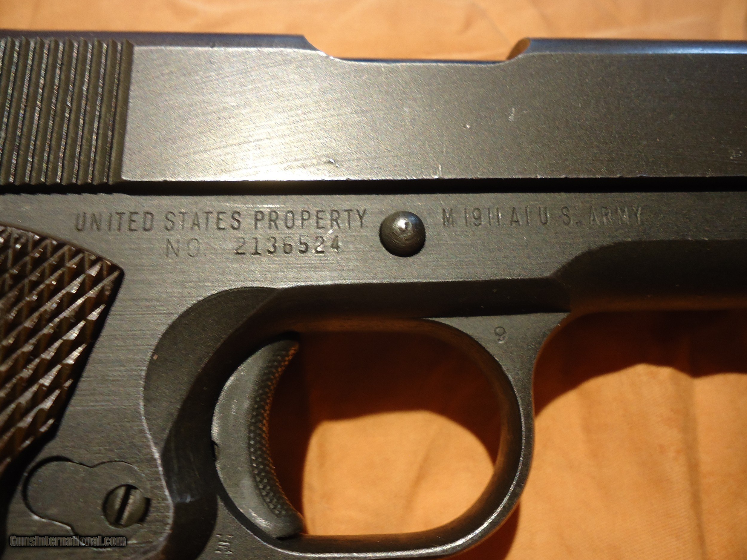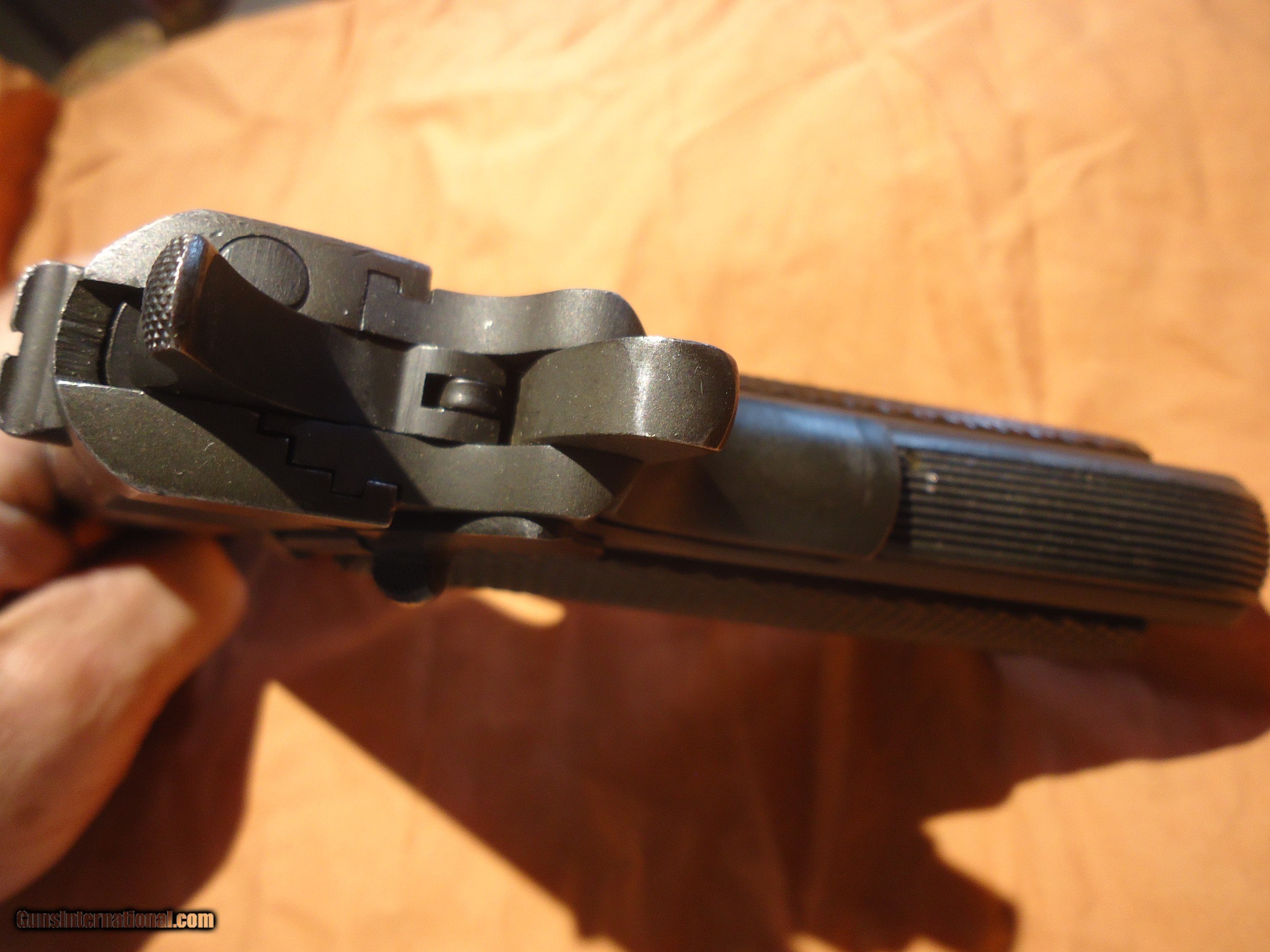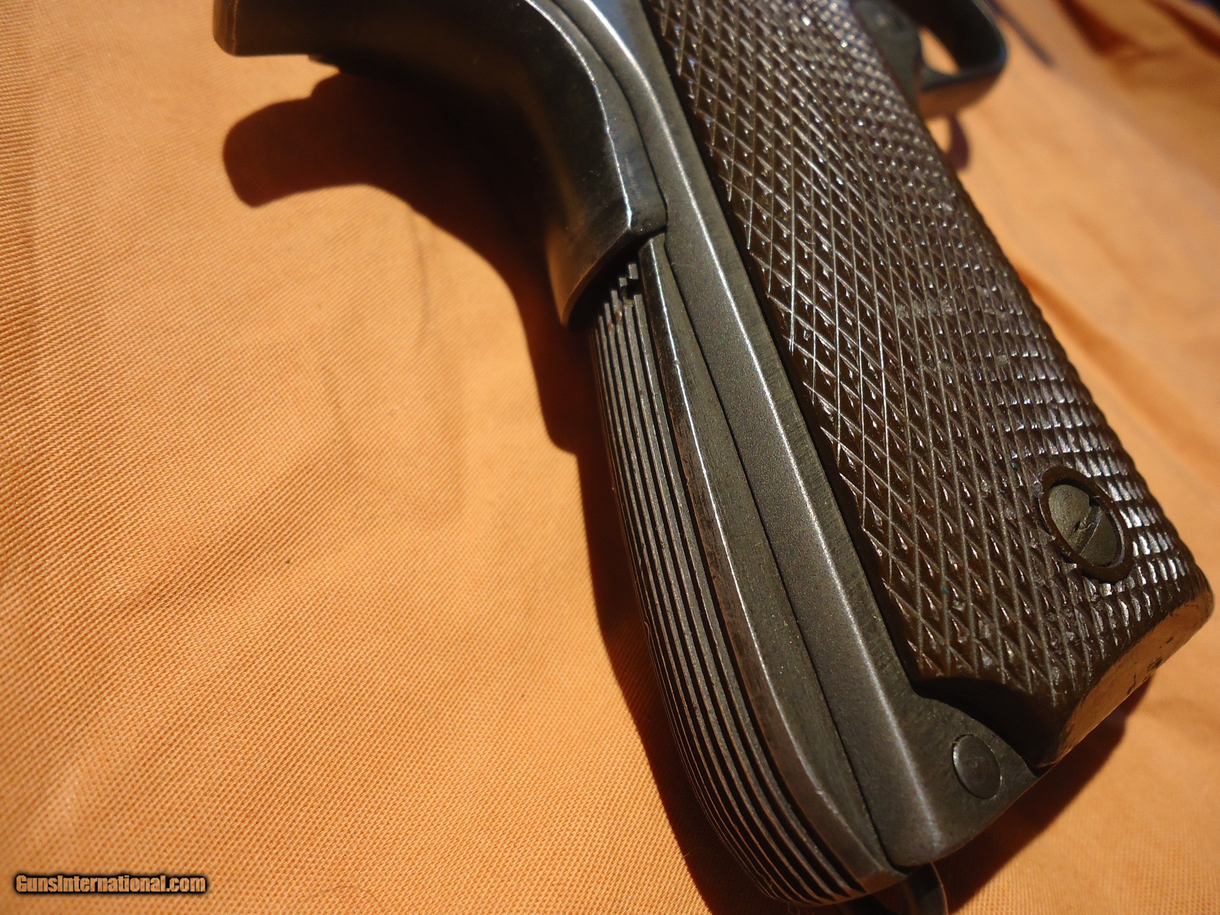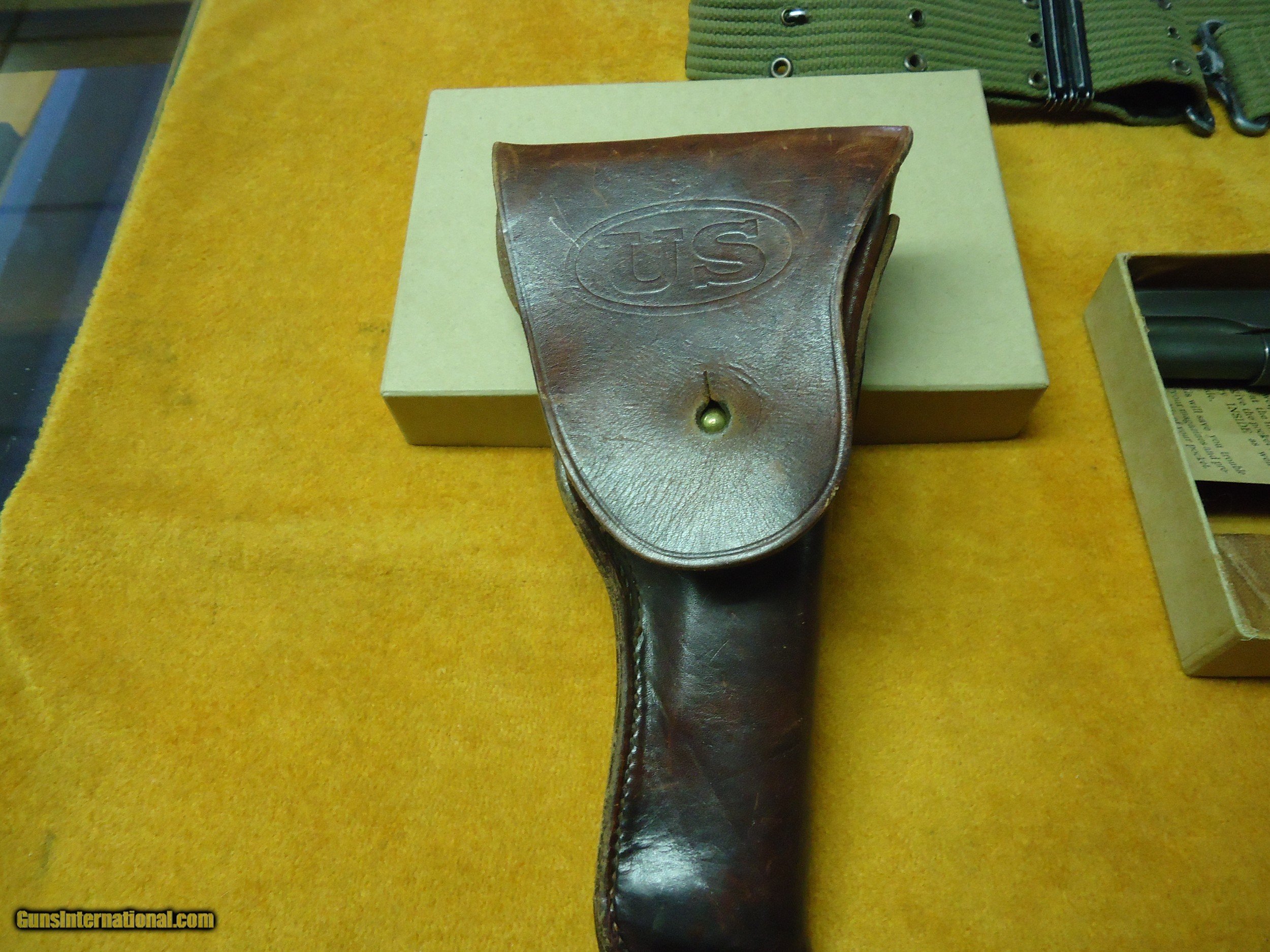 Description: 1911 A1 Reminton Rand US Army with assecories.. This is definitely a collector gun. All correct. Made in 1945. Parkerizing is beautiful correct magazine. Comes with correct period holster and belt with magazine pouch with 2 unmarked WWII magazines, Kraft paper box with anti rust paper linner and magazine in original wrapping, also includes cleaning rod.. Send a check or money order to: RJC Ltd 114 West 12th Pueblo, CO 81003 Be sure to include an FFL for where you want it shipped We can take a credits card but the company nicks us 5% so we pass that on to you. That would add $124.75. If you want to use a card call the store at (719) 545-9704. Our hours are 10 to 5 Wednesday, Thursday and Friday. SOLD Curio/Relic: Yes Manufacturer: Remington Rand Model: 1911 Serial Number: 2136524 Caliber Info: 45 acp Bore: Near New Condition: 95% Metal Condition: very good |