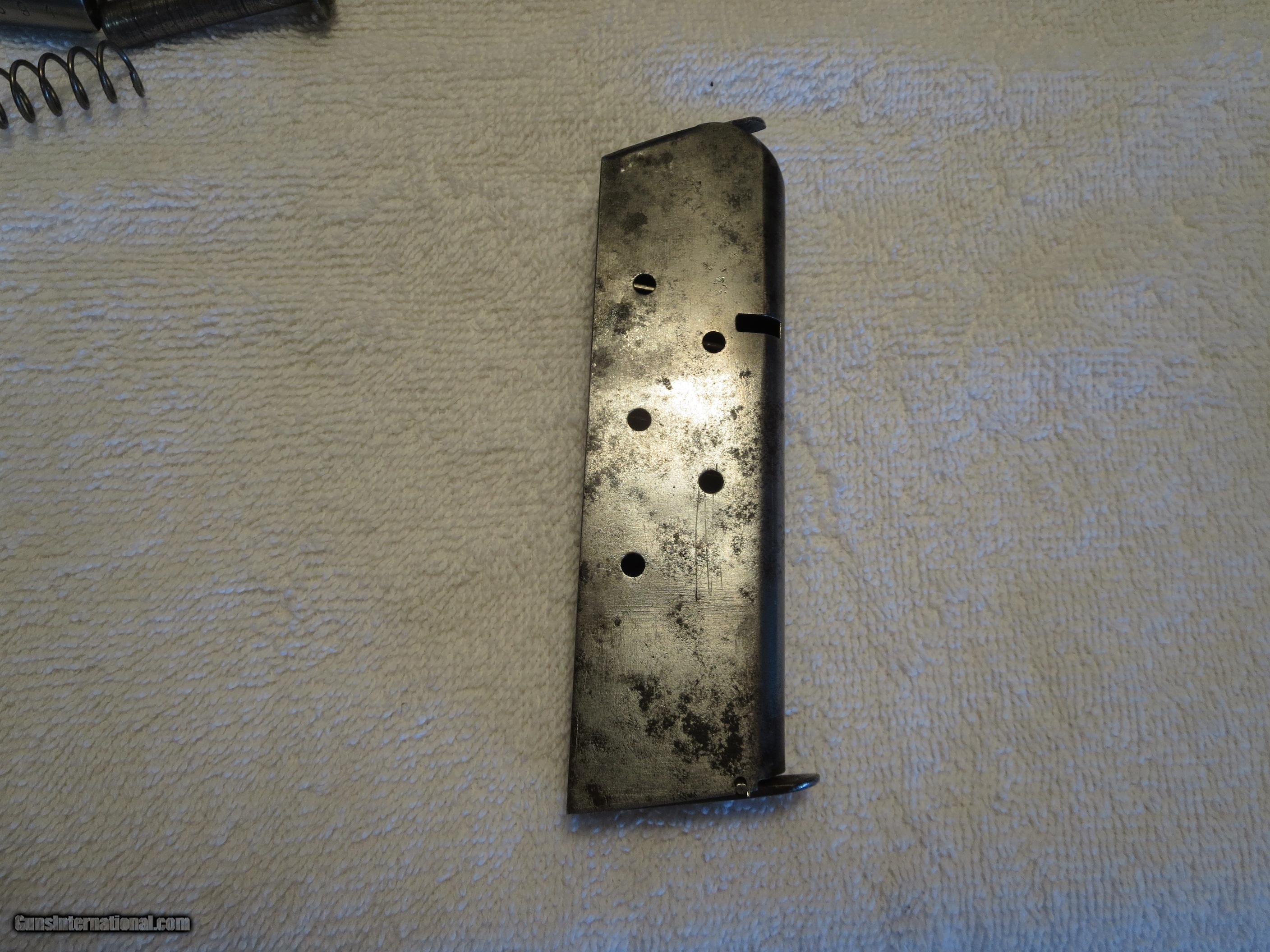 Description: +++PRICE REDUCED from $1850+++ For Sale: 1932 Colt 1911 Pistol delivered in a 300 lot to an Argentine distributor for the Buenos Aires Police. Lightly roll stamped by Argentina. Top of slide and exposed barrel stamped with additional Argentine serial #. Barrel is original with clear and sharp rifling. Grips are original, large diamond, walnut. Magazine is original and well used pinned bottom plate unit. Appears to be holstered but used very little. This pistol was imported back to the US by Sarco prior to import marking requirements. Was received by me in very poor finish condition. It was sent to Fogles Gunsmithing in OH and refinished in rich original blue. It is a beautiful pistol with a long history of world travel and use. AND it is a genuine Colt. Photos show the detail of the new finish and stampings. Pistol has been test fired with perfect fit and function. HONEST AND BASIC LAYAWAY PLANS AVAILABLE UPON REQUEST. SOLD Manufacturer: Colt Model: 1911 Serial Number: C163453 Caliber Info: 45 ACP Manufacture Date: 1932 Item Location: Pennsylvania |