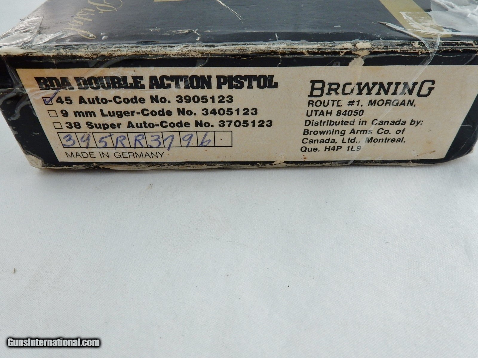 Description: This is a Browning BDA 45ACP. This gun is 99% in the box. Box is in poor condition. Serial # is 395RR37xx. Buyer pays 30.00 shipping. Thank you. 44-11-5 SOLD |