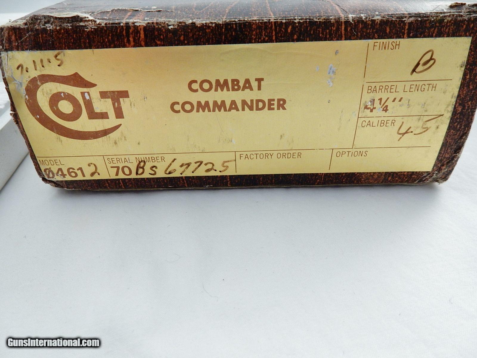 Description: This is a Colt combat commander 45ACP. This gun is 100% new in the box. Serial # is 70BS67xxx. Buyer pays 45.00 shipping. Thank you. 42-7-7 SOLD |