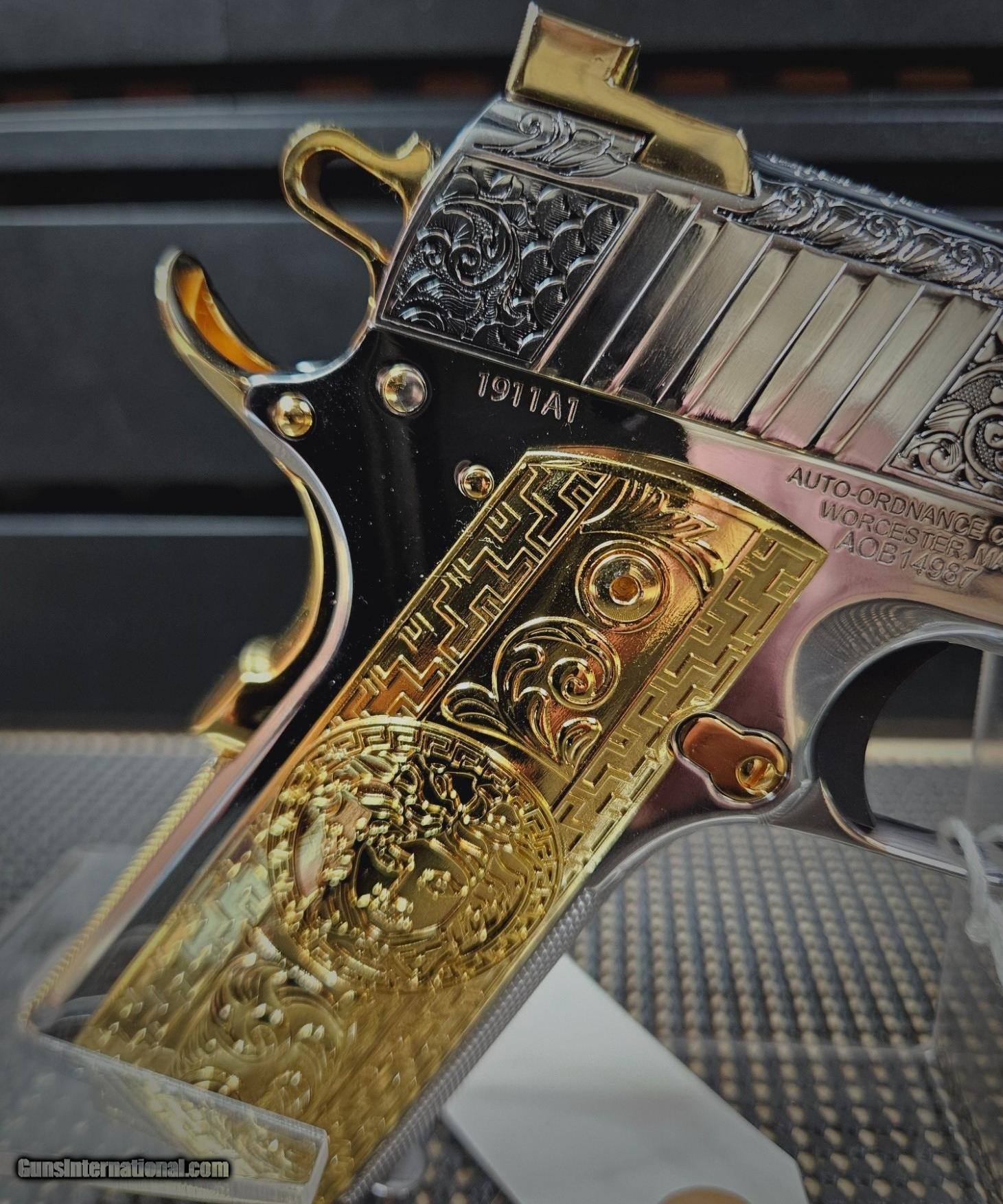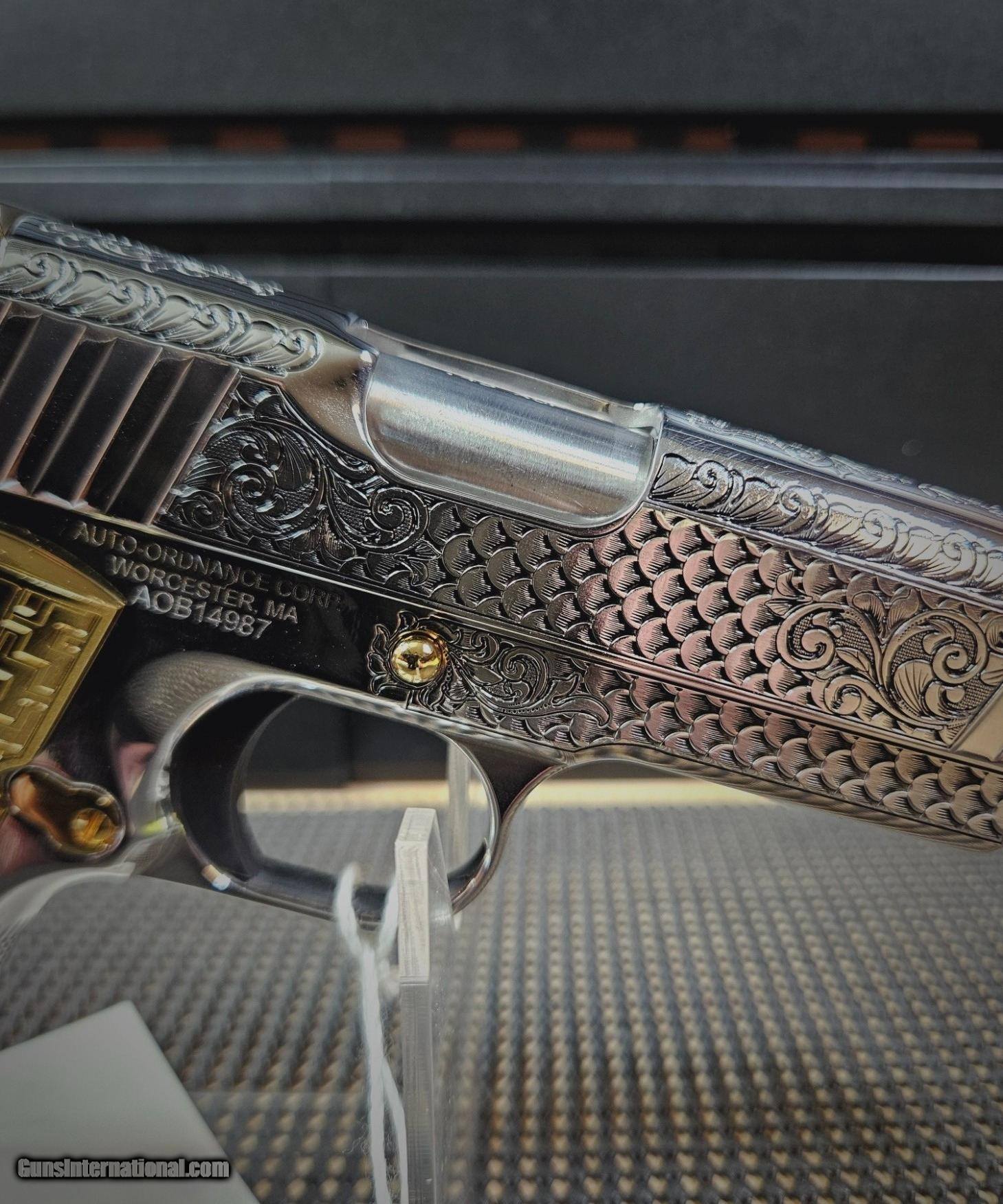 Amazing Auto Ordinance ( Seattle Engraving) 1911A .45 ACP 24K Gold and White Chrome