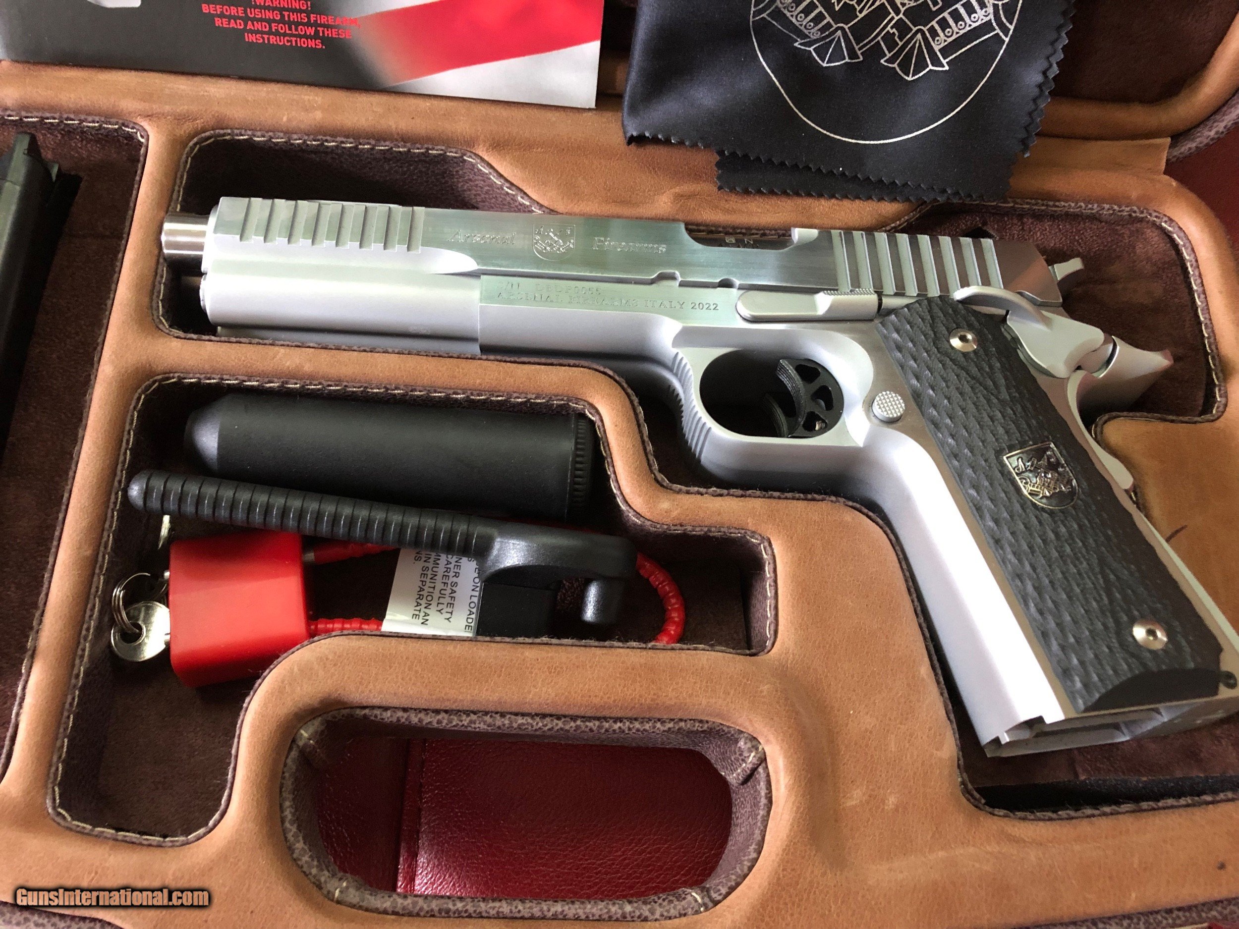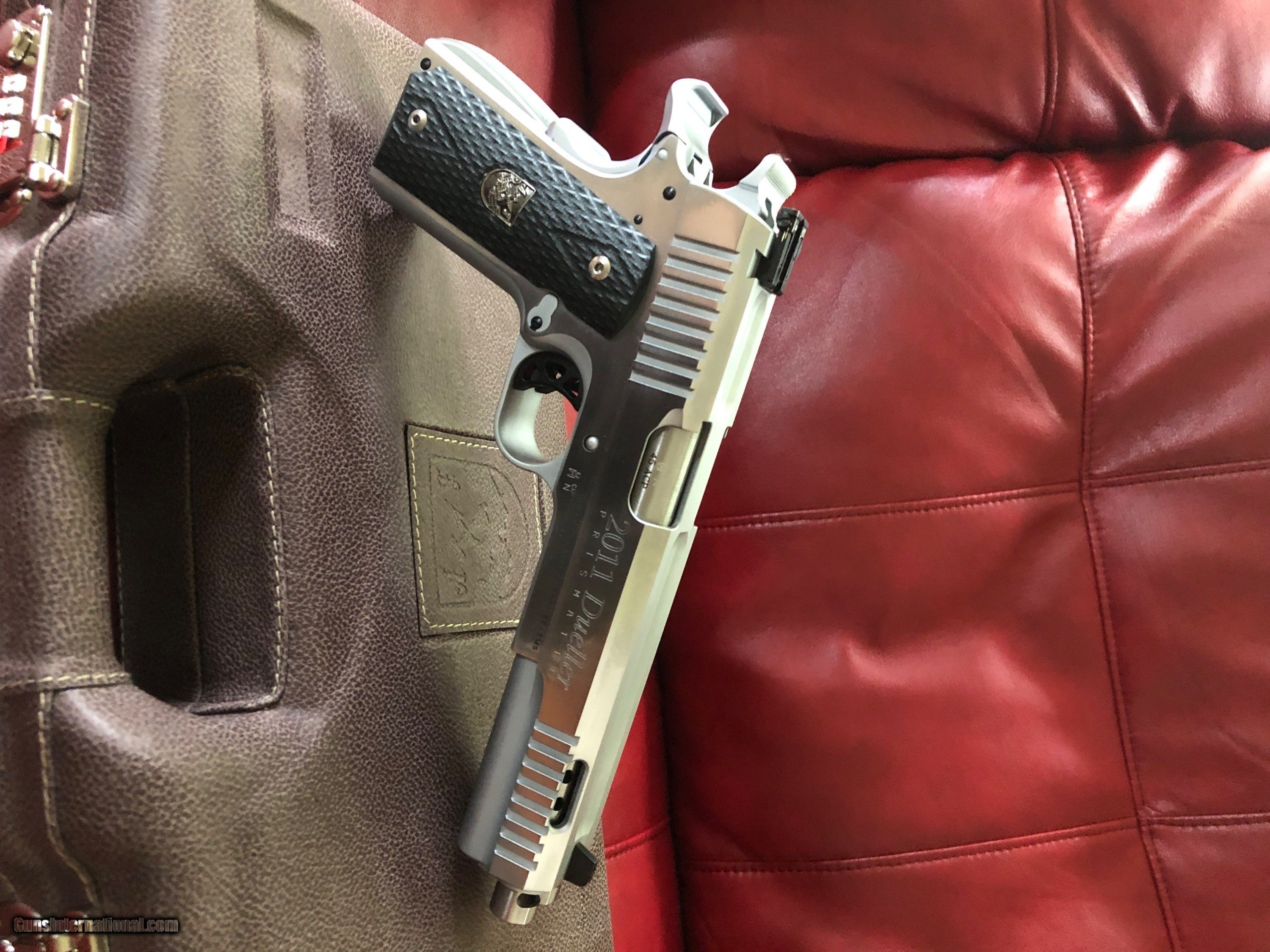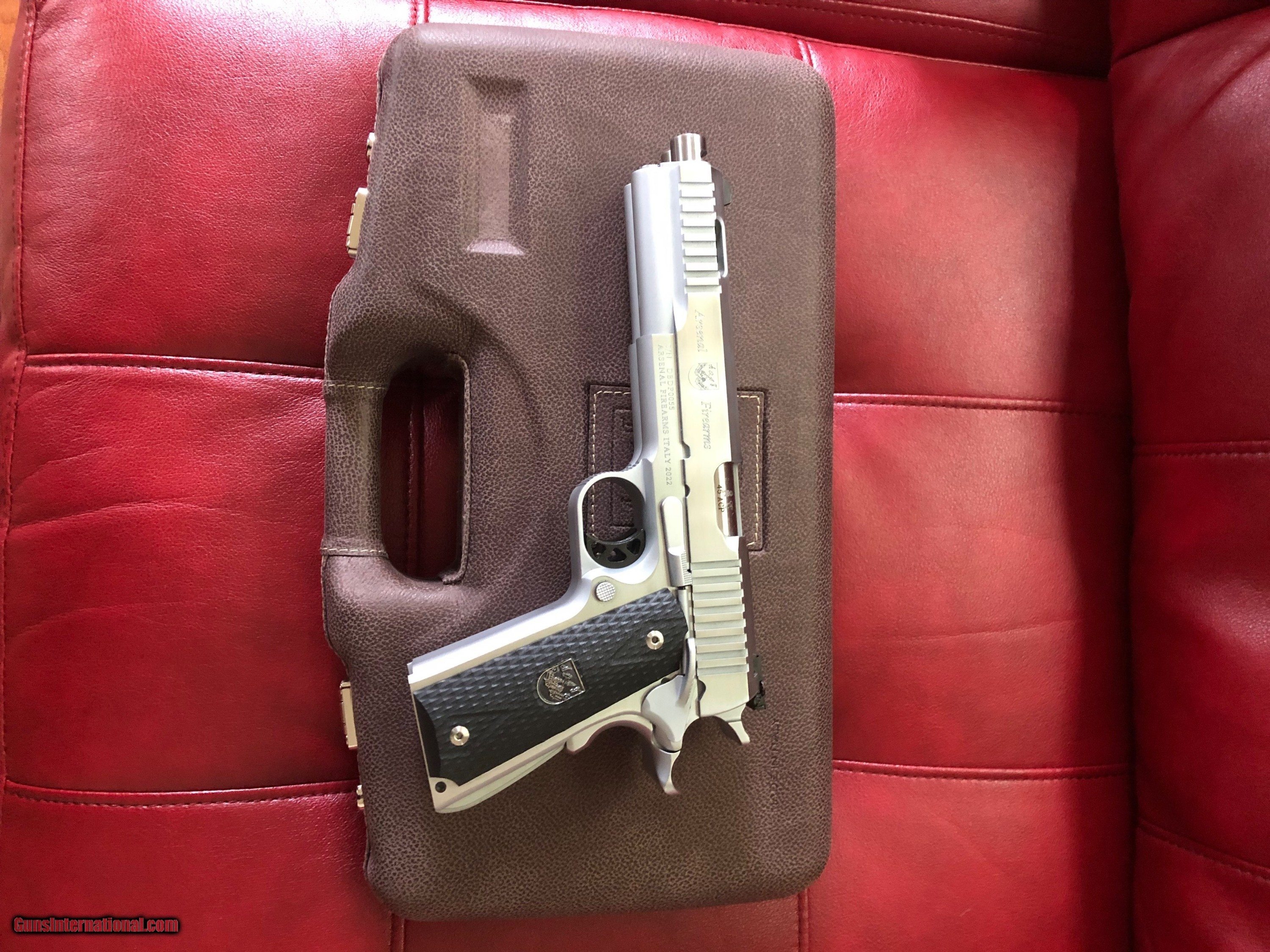 Description: Attention high end pistol collectors here is an opportunity to own and extremely limited and unique pistol. This is Arsenal firearms top of the line double barrel 2011. Dueller Prismatic made in Italy Everything about this pistol screams luxury high end from the quality of build and the brown suede and leather interior to the pig skin leather exterior of the Case which holds this beast. Another nice quality of this pistol is most parts can be swapped out with thiose of a 1911. This pistol has also been featured in the James Bond movie Spectre and Resident Evil. I have seen this pistol sell for 20k multiple times.Shipping is 50.00 with insurance at buyers discretion which will be quoted when buyers destination is known. Among other forms of payment, I will accept discreet PayPal friends and family. Don't miss this opportunity as this pistol will only increase in value as time goes on. A unique extremely rare and well made pistol like Korth, Korriphila,Bren ten, Smith & Wesson , Colt, Sig Sauer,Laugo Arms Alien, Sphinx,1911,Extremely low serial number at 0055 SOLD Manufacturer: Arsenal Firearms Model: Dueller Prismatic Serial Number: 00055 Barrel Length: 5” Bore: New Chambers: 2 Ejectors: 2 Condition: New Metal Condition: New Bore Condition: New Barrels: 2 Barrel Type: Ported Action: SA Triggers: 2 Sights: LPA Case: Leather Item Location: Downingtown PA 19335 |