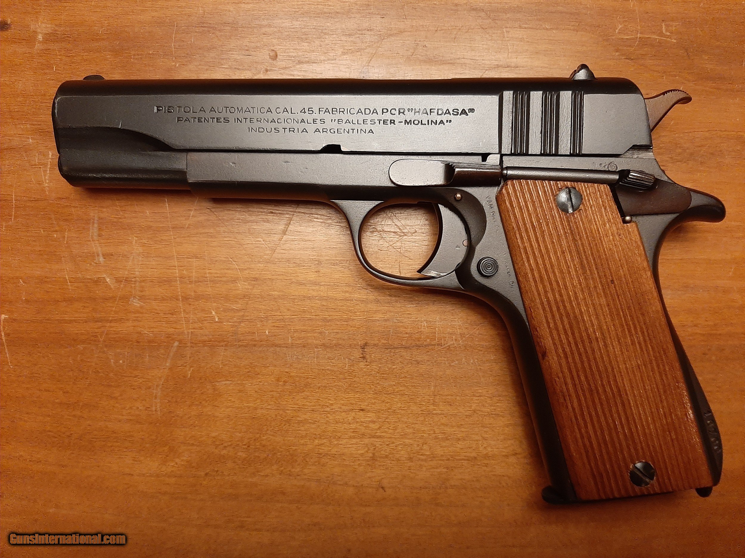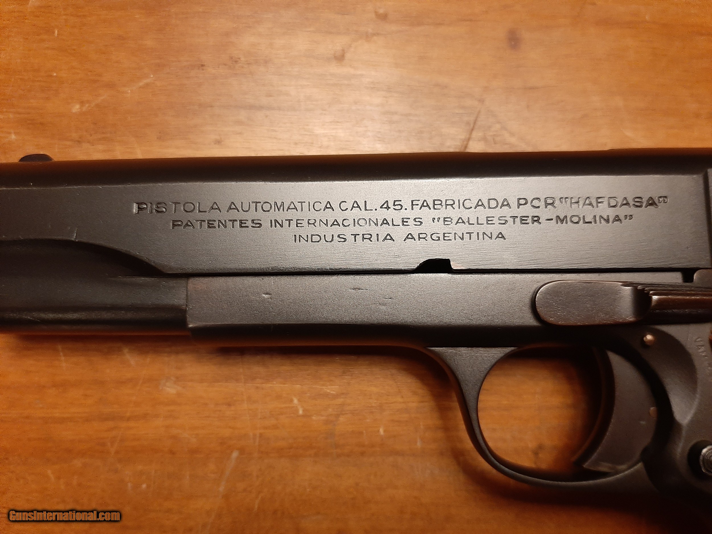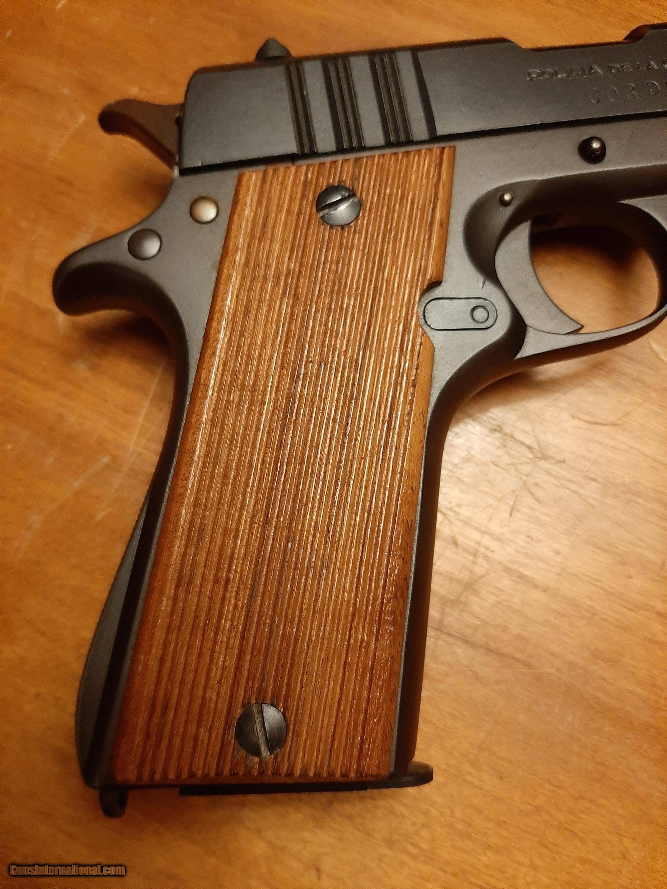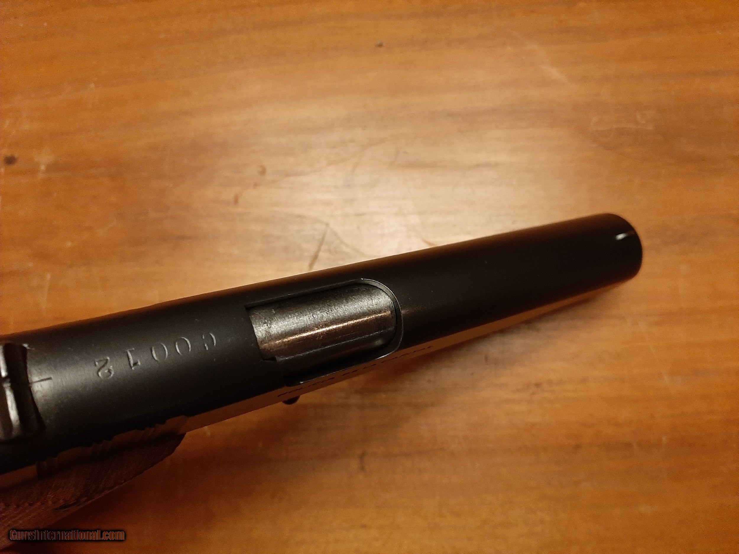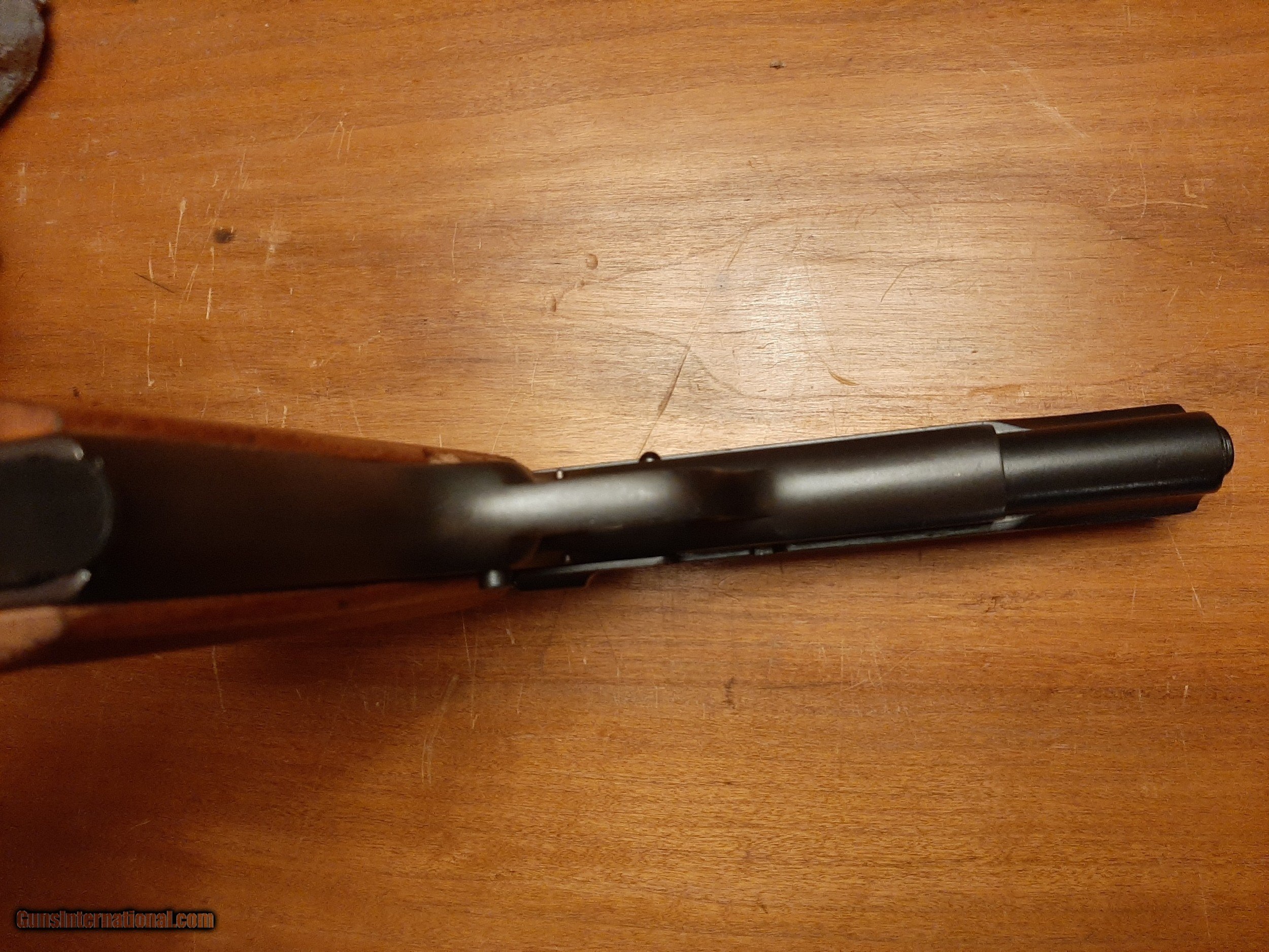 Description: Minty Ballester Mollina Police issue .45 cal rig. Features correct holster (that someone mistakenly identified as a P38 holster) along with two mags. The pictures speak for themselves. It would be extremely difficult to upgrade the condition of this exceptional rig. If you have been holding out for a near mint rig look no further! In order to complete the transaction, we will need a copy of your FFL or C&R for shipping purposes. For payment I will accept personal checks, money orders, certified check or cashiers’ check, all major credit cards. Credit cards are acceptable with a 4% up-charge for processing. Personal checks require 8 business days to clear the bank, all other forms of payment receive same day as received shipment. You are responsible for any state and local laws. By purchase of this item, you release the seller from any liability that may arise due to use or misuse of this firearm. Thanks for looking and if you have any questions give me a call or text 931-303-6739. Thank you for your time and attention to our products. SOLD Curio/Relic: Yes Handgun Caliber: .45 ACP (.45 Auto) Manufacturer: Ballester Molilna Model: 1911 Condition: Minty Metal Condition: Perfect Wood Condition: Perfect Finish: Blued |