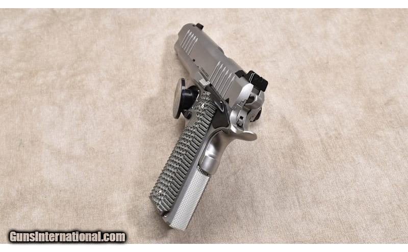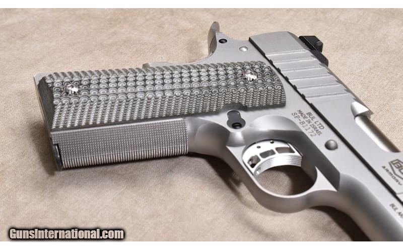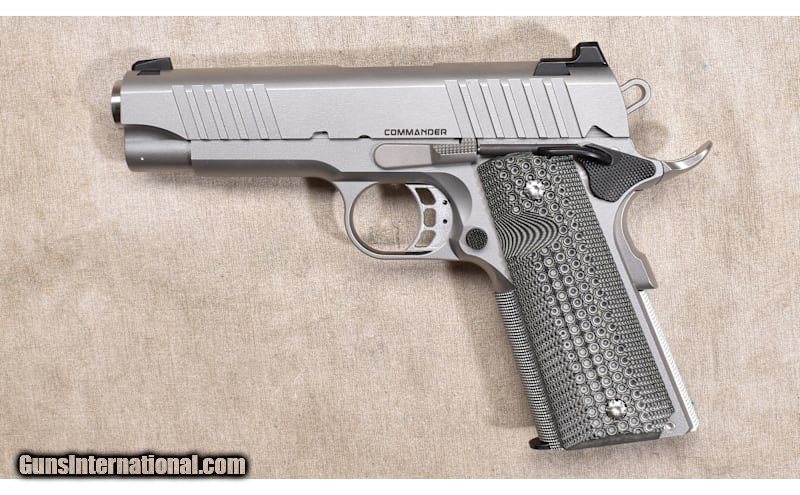 Description: This 1911 Commander is in excellent condition and features low-maintenance satin stainless steel construction, sticky G10 grips, and fixed sights. The sights are driftable for windage. It has knurled front and back straps, and grip/mechanical safeties. It appears to have been test fired a few times, but the magazine followers show no "drag lines." .45 Auto Chambers: 8+1 capacity Metal Condition: Excellent. Wood Condition: Excellent. Bore Condition: "Shiny and bright, with good rifling. Barrels: 4-3/4 inches Triggers: Factory single action trigger. Butt Pad: Grey G10 grips with sharp texturing. Weight: 37 oz Sights: Post and notch Item Location: Rogers Price: $999.99 Contact Seller |