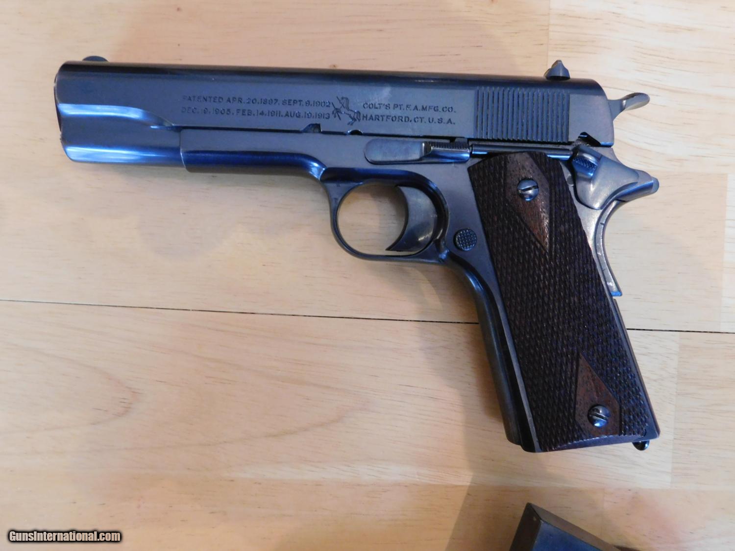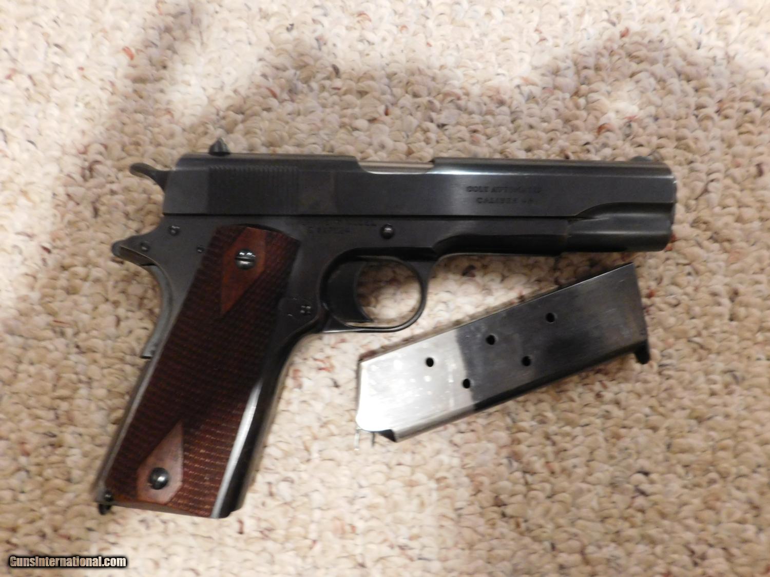 Like new, all original Colt1911 Commercial made in 1919. 98%. Shot very little, with no holster wear. Original two tone clip. Gun is correct from end to end. Great grips with no chips or wear. Ive had a few commercials and this is the best of the best. FFL required for transfer. USA lower 48 only.