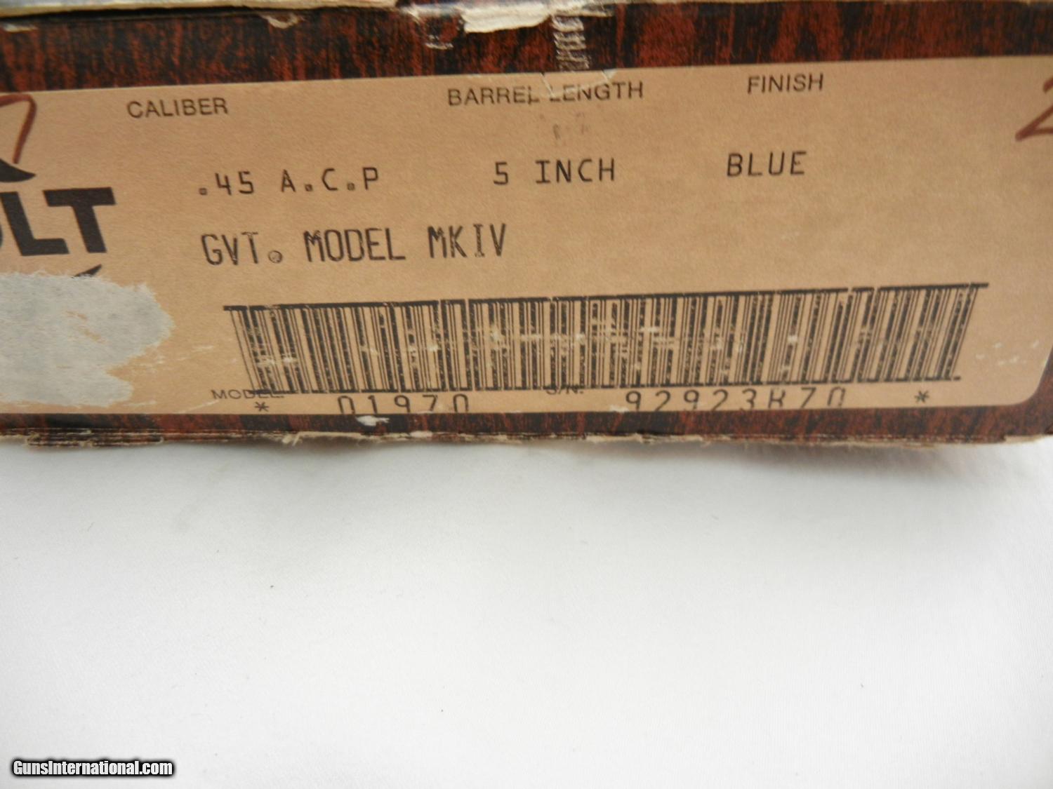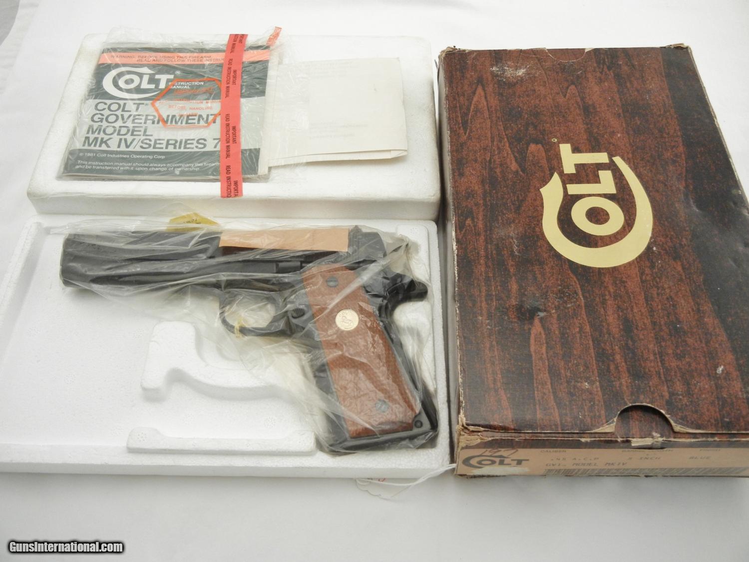 Description: This is a Colt 1911 45ACP. This gun is 100% new in the box. Serial # is 92xxxB70. Buyer pays 45.00 shipping. Thank you. 31-21-9 SOLD |