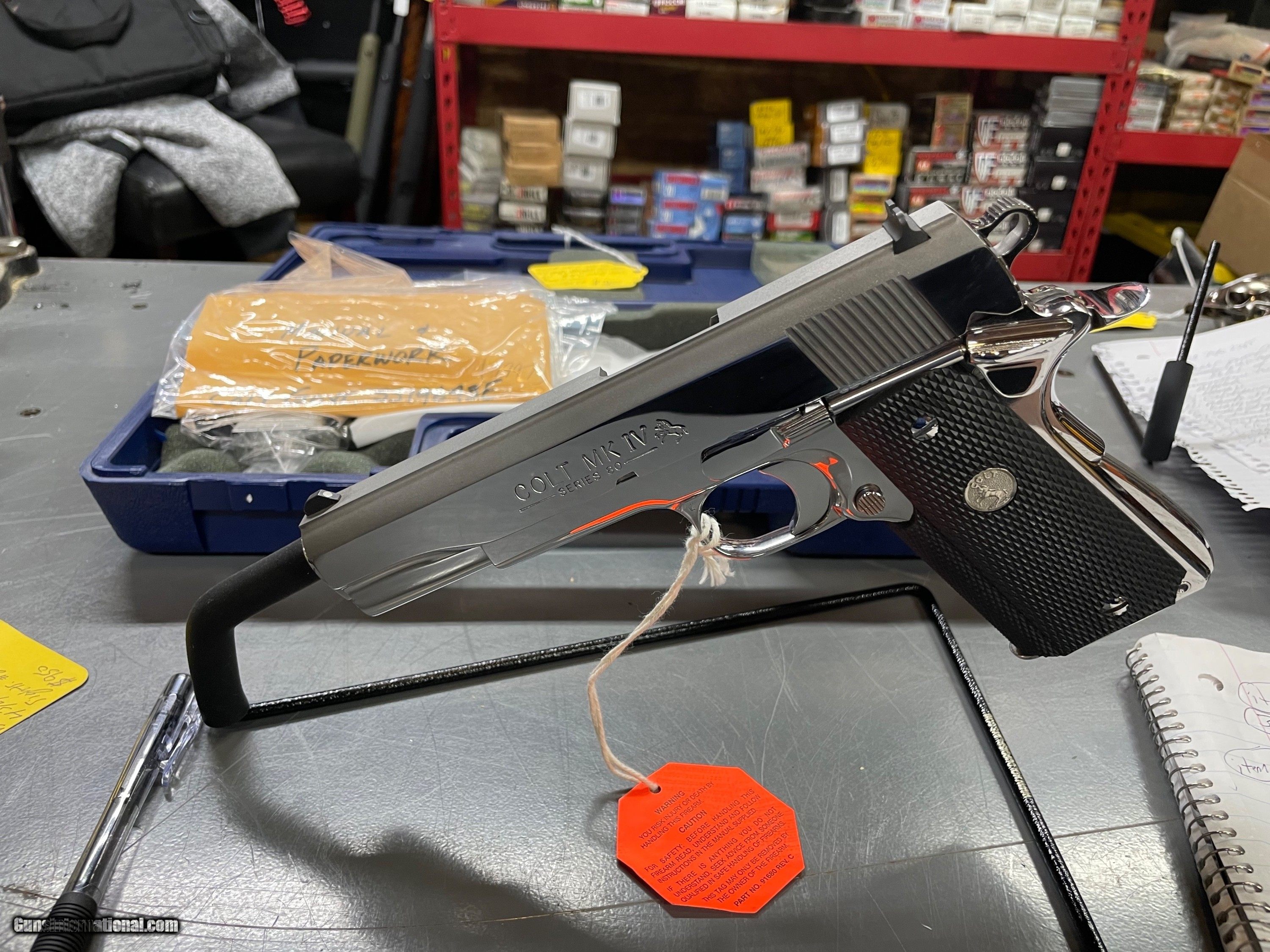 Description: Colt 1911 Government Model, MK IV, 45 ACP, 5 inch, Bright Stainless, 1997, with box! All credit cards and cashiers checks accepted. Handgun Caliber: .45 ACP (.45 Auto) Manufacturer: Colt Model: 1911 Government MK IV Barrel Length: 5 Condition: Excellent Metal Condition: Excellent Finish: Bright Stainless Manufacture Date: 1997 Price: $2,195.00 Shipping: $40.00 Buy Now Pay with