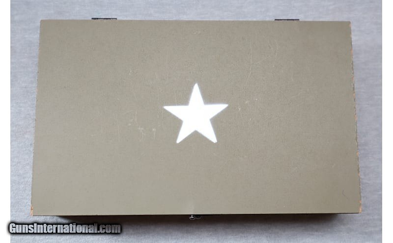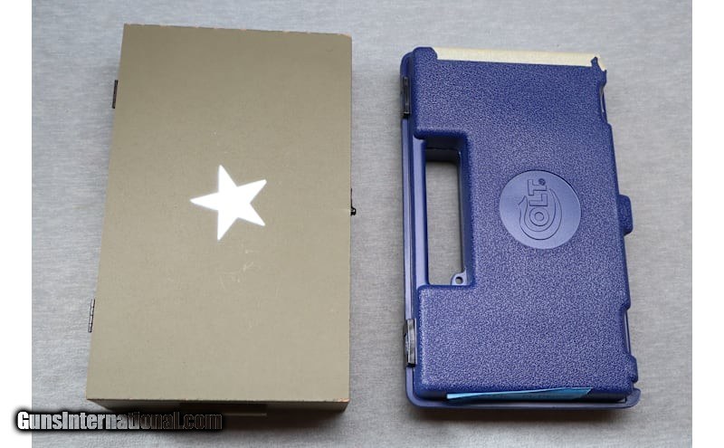 Description: Originally manufactured as a Colt Government and then customized by the American Historical Foundation for the 50th Anniversary of World War II, specifically Victory in the Pacific Theater. 5" barrel chambered in .45 ACP with standard sights. Blued finish with plastic faux ivory grips. Left side of slide is marked "IN HONOR OF VICTORY IN THE PACIFIC / ** 15 AUGUST 1945 **". Left grip panel is stamped with Japanese motifs and Macarthur quote "LET US PRAY / THAT PEACE BE NOW / RESTORED ... THESE / PROCEEDINGS ARE CLOSED". Complete with display case. Also comes with a blue hard plastic Colt case. Finish is very good with pistol showing no wear. A nice collectors piece. .45 Auto Metal Condition: very good Bore Condition: bright Barrels: 5" barrel Weight: 2 lbs 6 oz Sights: factory sights Item Location: La Vista, NE Price: $1,099.99 Contact Seller |