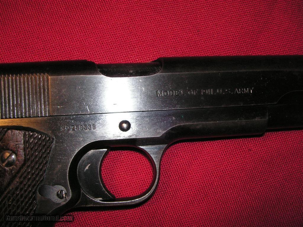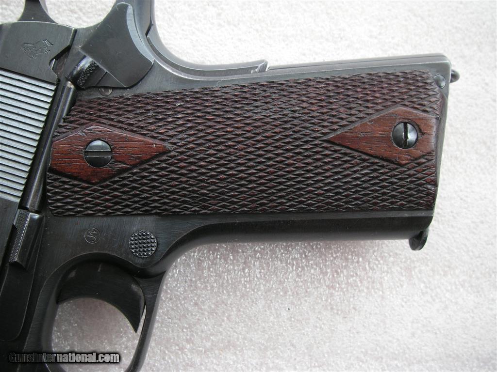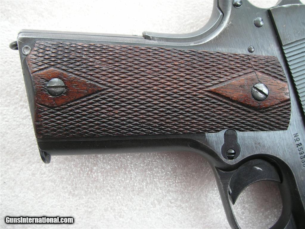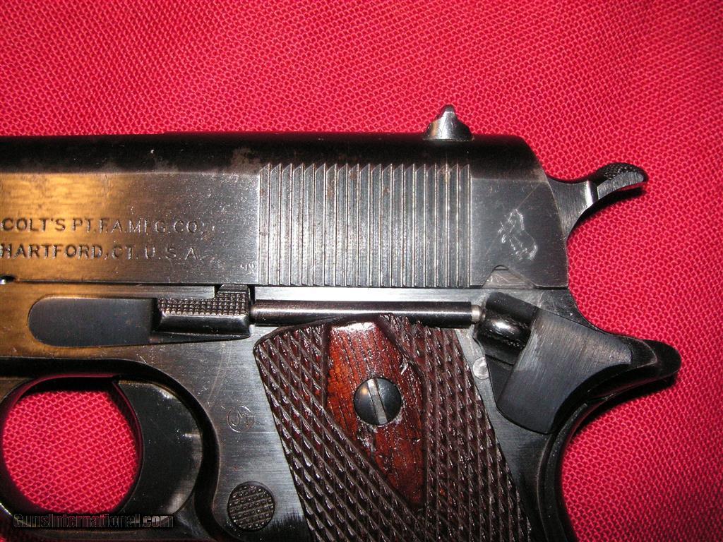 Description: SEE THE PICTURES OF THIS BEAUTIFUL COLT 1911 WWI 1918 PRODUCTION IN EXCELLENT ORIGINAL CONDITION WITH ALL ORIGINAL PARTS INCLUDING EXCELLENT TWO TONE MAGAZINE AND SHINY, BRIGHT BORE BARREL.. THERE ARE NOT MANY WW1 COLT 1911 ARE IN THIS CONDITION ARE SURVIVED. We offer three days inspection. Only not fired, changed parts or condition guns would be accepted. Return shipping cost is the buyer expense. We accept bank & postal money orders or personal & business checks, but those take time to clear. We also offer 90 days layaways with 25% down & three more payments of 25% per month. The lay away plan does not have 3 days inspection privileges; therefore there is “NO RETURNS” policy. If you have offered to buy my guns, and the payment has not made soon after (from 3 to 5 days), I will not guarantee you will be the buyer of it. I can secure your purchase only when you have paid for it. If your payment comes too late, I will return it back to you. Please check our other nice listings. SAFETY NOTICE: Buyer solely responsible for following all safety requirements in handling guns. By , the buyer agrees to hold seller harmless against damages, injury or death caused by defective merchandise or ammo. If you like, we can negotiate terms of shipping. The offered shipping price includes insurance cost & priority mail cost only. SOLD Curio/Relic: Yes Manufacturer: COLT Model: 1911 Serial Number: 559338 Caliber Info: 45 ACP Bore: SHINY & BRIGHT Condition: EXCELLENT ORIGINAL |