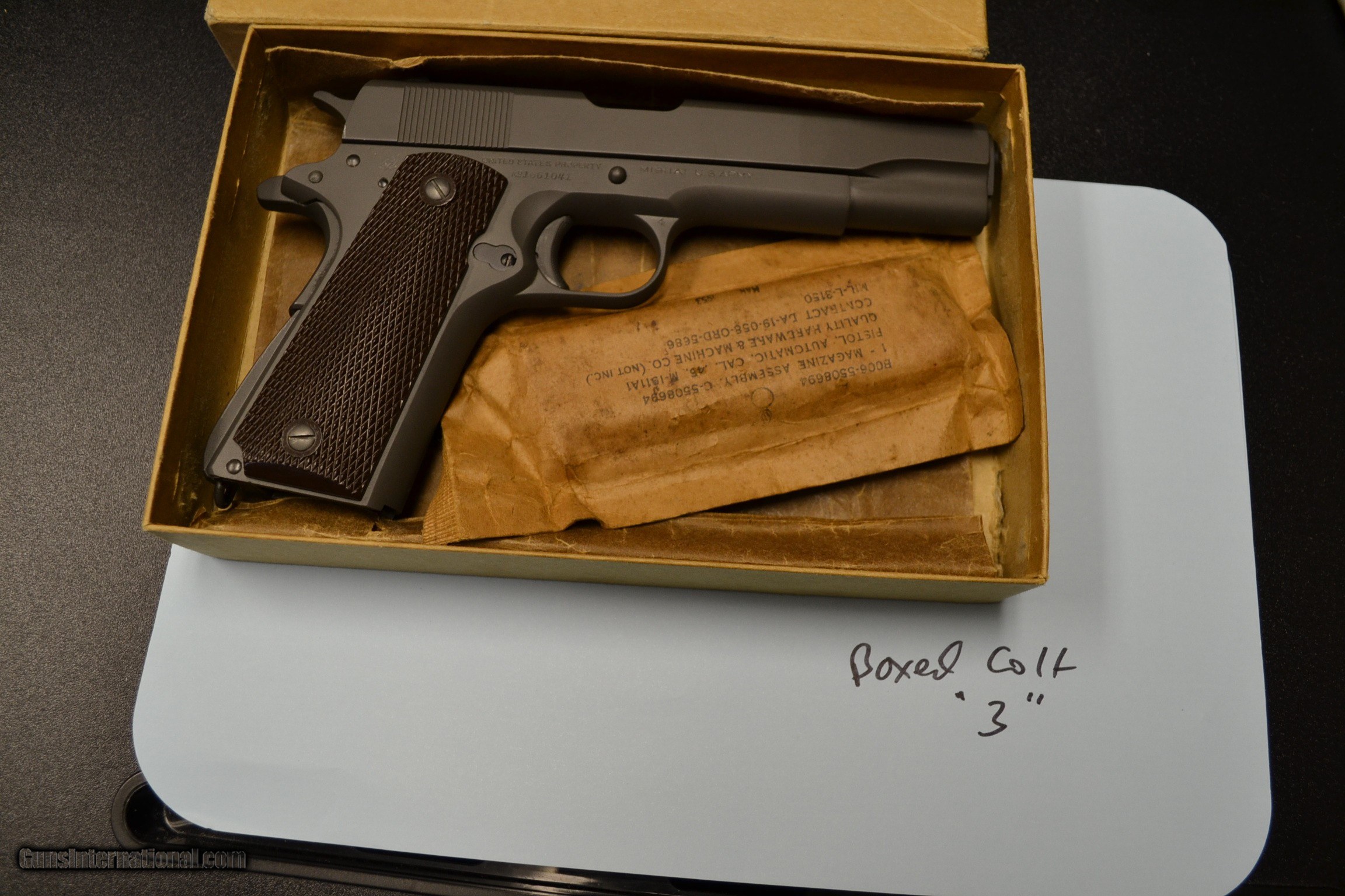 Description: Up for sale is 3 colt pistols, buy one get 2 colt pistols. One is boxed and in great shape. They are all vintage and date to WW2. I am no means an expert on the 1911. My pictures are ok and will send more if needed, please ask questions before buying. Local inspection is fine if needed. SOLD Curio/Relic: Yes Manufacturer: Colt Model: 1911 |