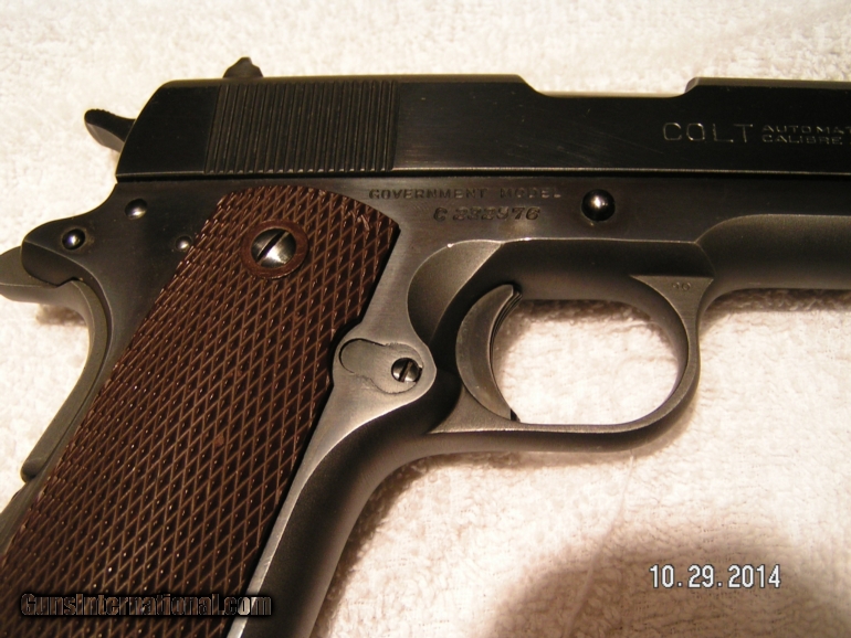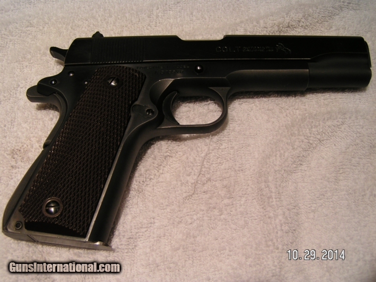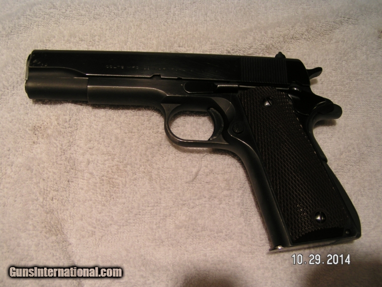 Description: Her is a quite rare colt with less than 20,000 made in this serial number range,5 Years only! The gun has been fired and shows some minor wear to the slide where it contacts the frame, but still has most of the bright factory blue and original grips. Comes with one magazine. Call with all Questions First! see my other s! SOLD Curio/Relic: Yes |
