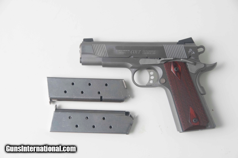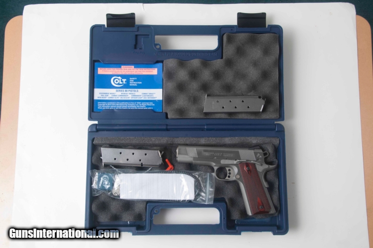 Description: 4 in barrol, rose color 1911 grips, stanless steel, skelton trigger, skelton hammer, lowered injection port, white night sights, ambexterous safety, rasied cup palm safety release, extened slide release, solid bar spring retainer, sarated mussel slide grips, two 8 round stainless steel mags SOLD |