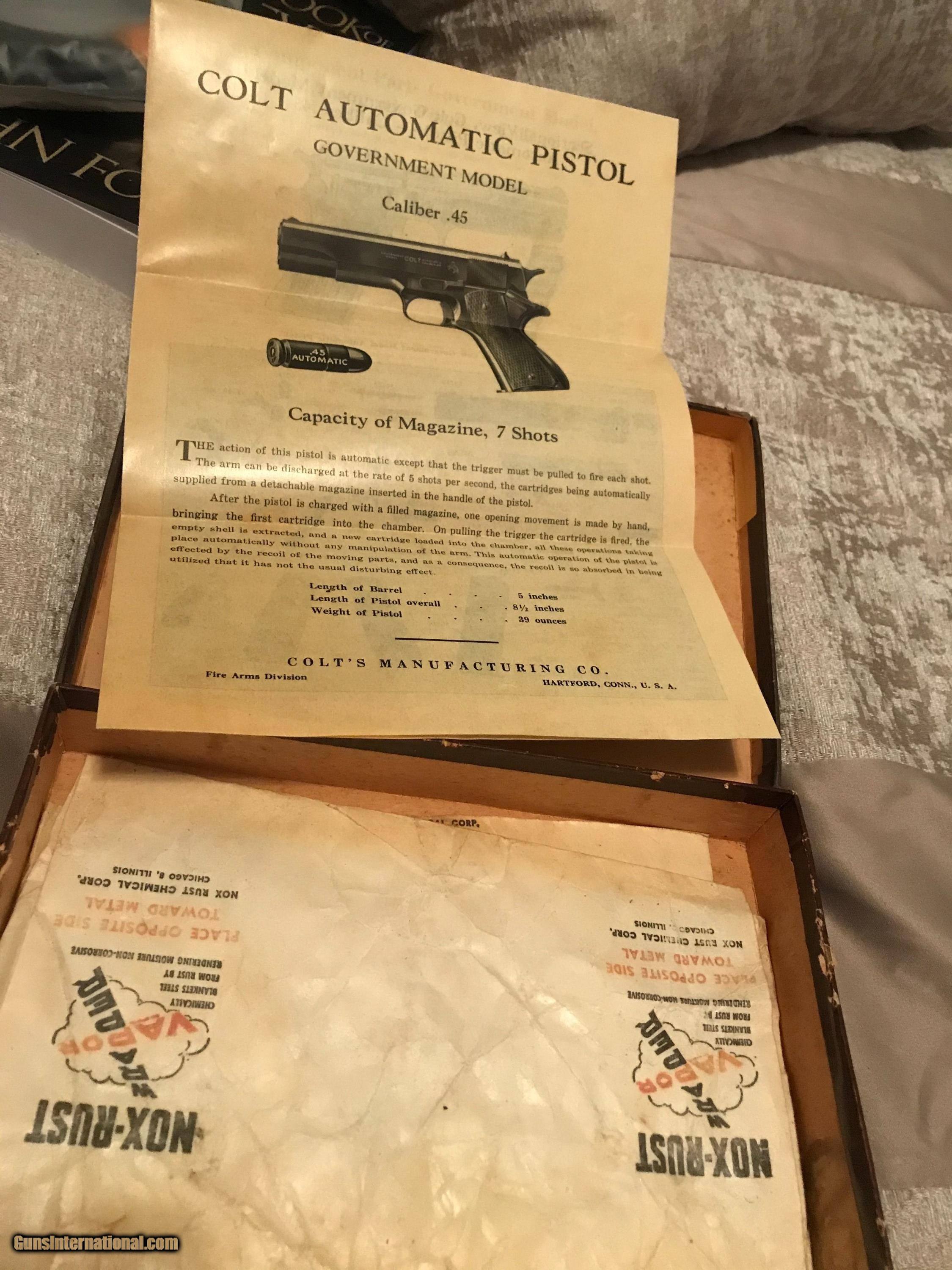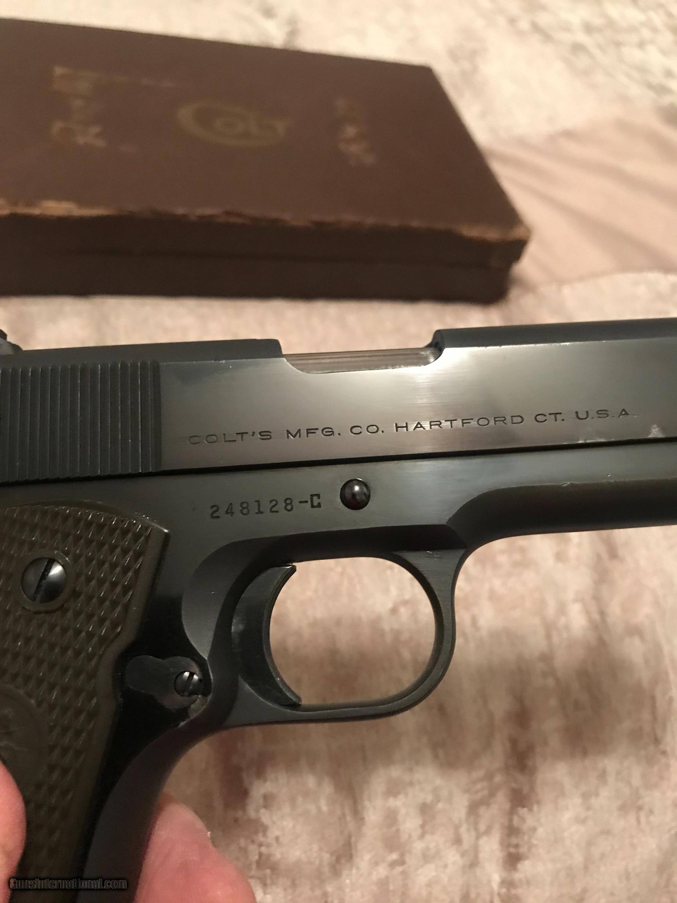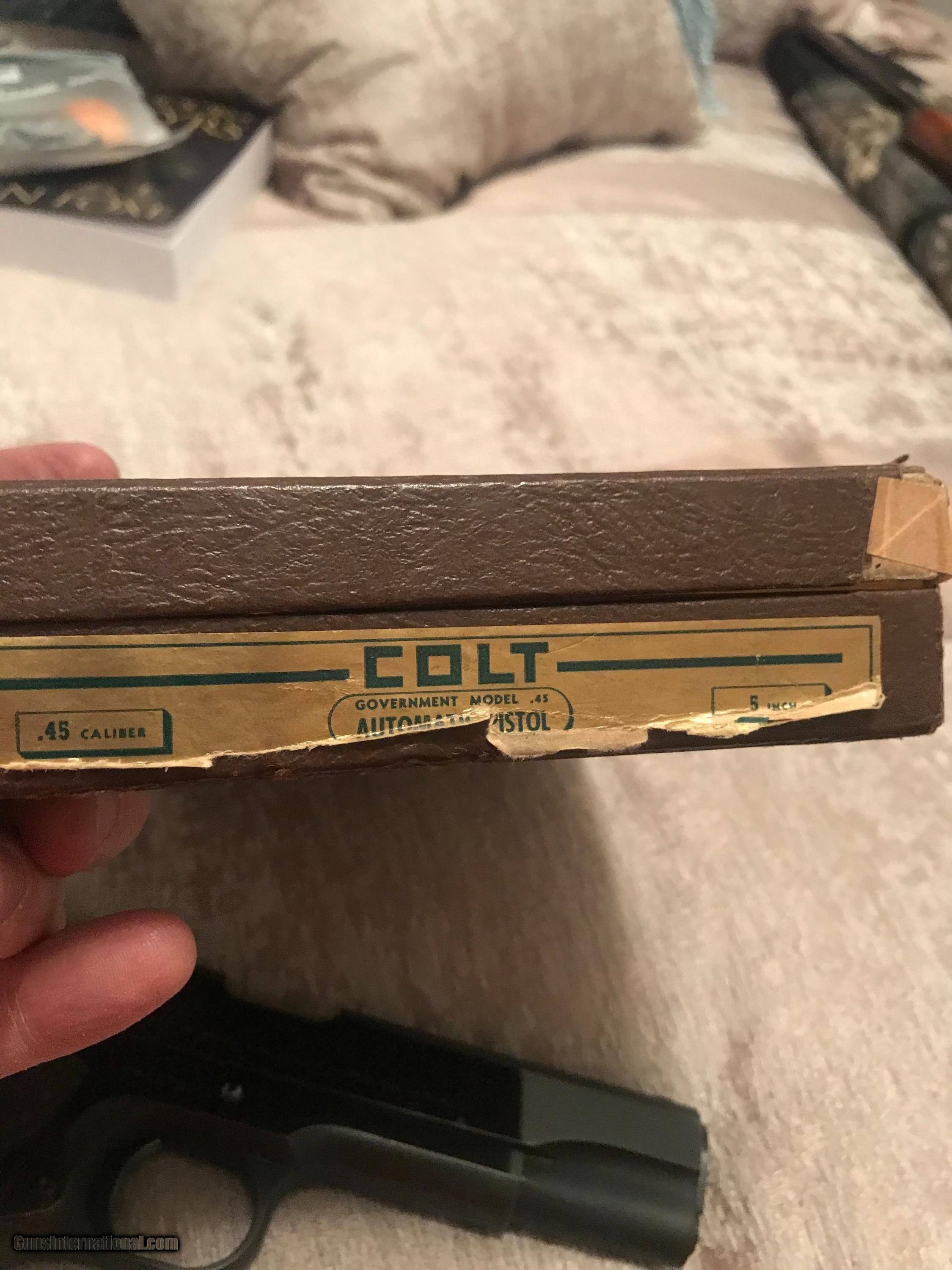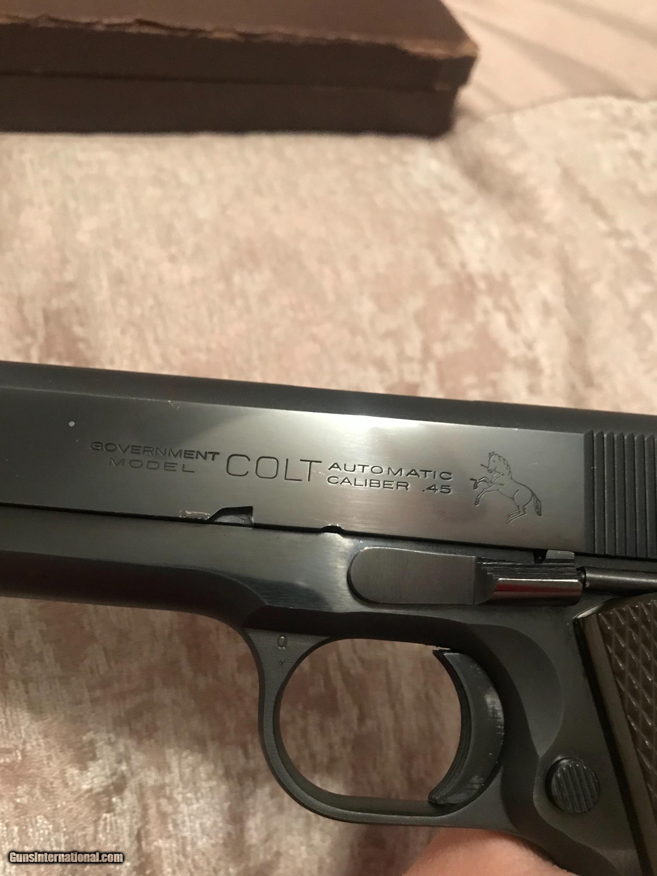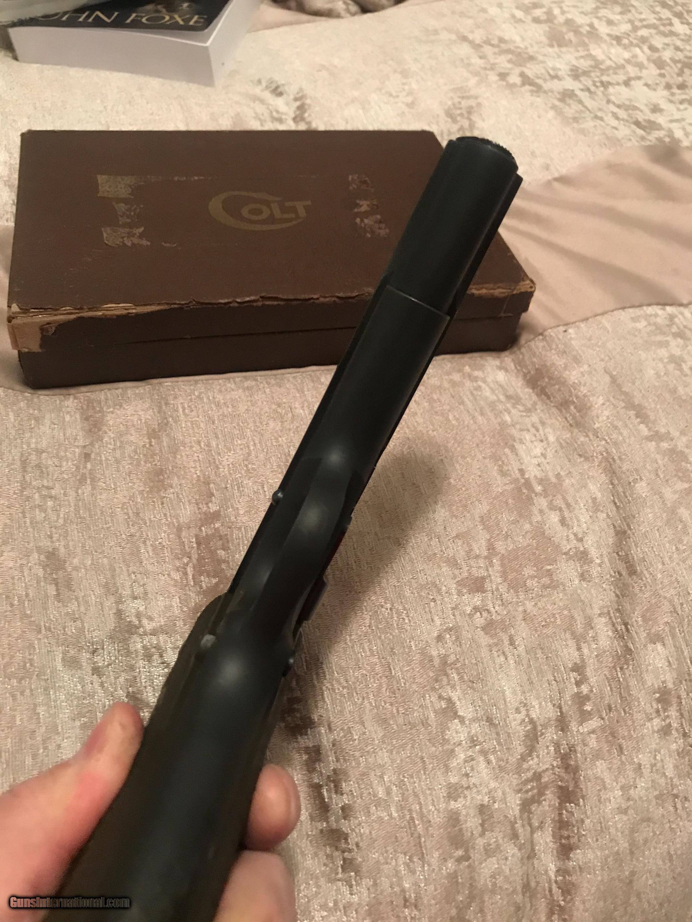 Description: This gun is on consignment. Beautiful from top to bottom. Has the original box! Original grips and finish. Some paper. A really beautiful and highly collectible Colt! Please email with questions. Shipping included. Cards add 3% SOLD Manufacturer: Colt Model: Government 1911 Barrel Length: 5 Condition: Near mint Metal Condition: Excellent Wood Condition: Excellent Bore Condition: Excellent Action: Double Finish: Blue Sights: Fixed Manufacture Date: 1951 Item Location: 37075 |