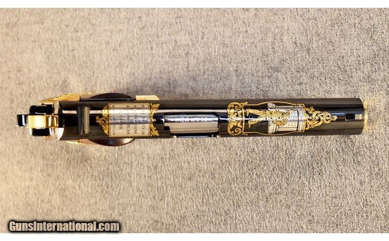 Description: This is a pre-owned Colt Government model in .45 ACP, the 100th Anniversary Tomb of the Unknown Soldier edition .45 ACP Metal Condition: Very good with a few small scratches Wood Condition: Very good with a few small scratches Bore Condition: Clean with bright lands Barrels: 5 Triggers: SA Butt Pad: Smooth walnut with inlaid gold soldier Weight: 2 Lbs. 4 Oz. Sights: "Blade front, U-notch rear Item Location: Glendale, AZ Price: $2,499.99 Contact Seller |