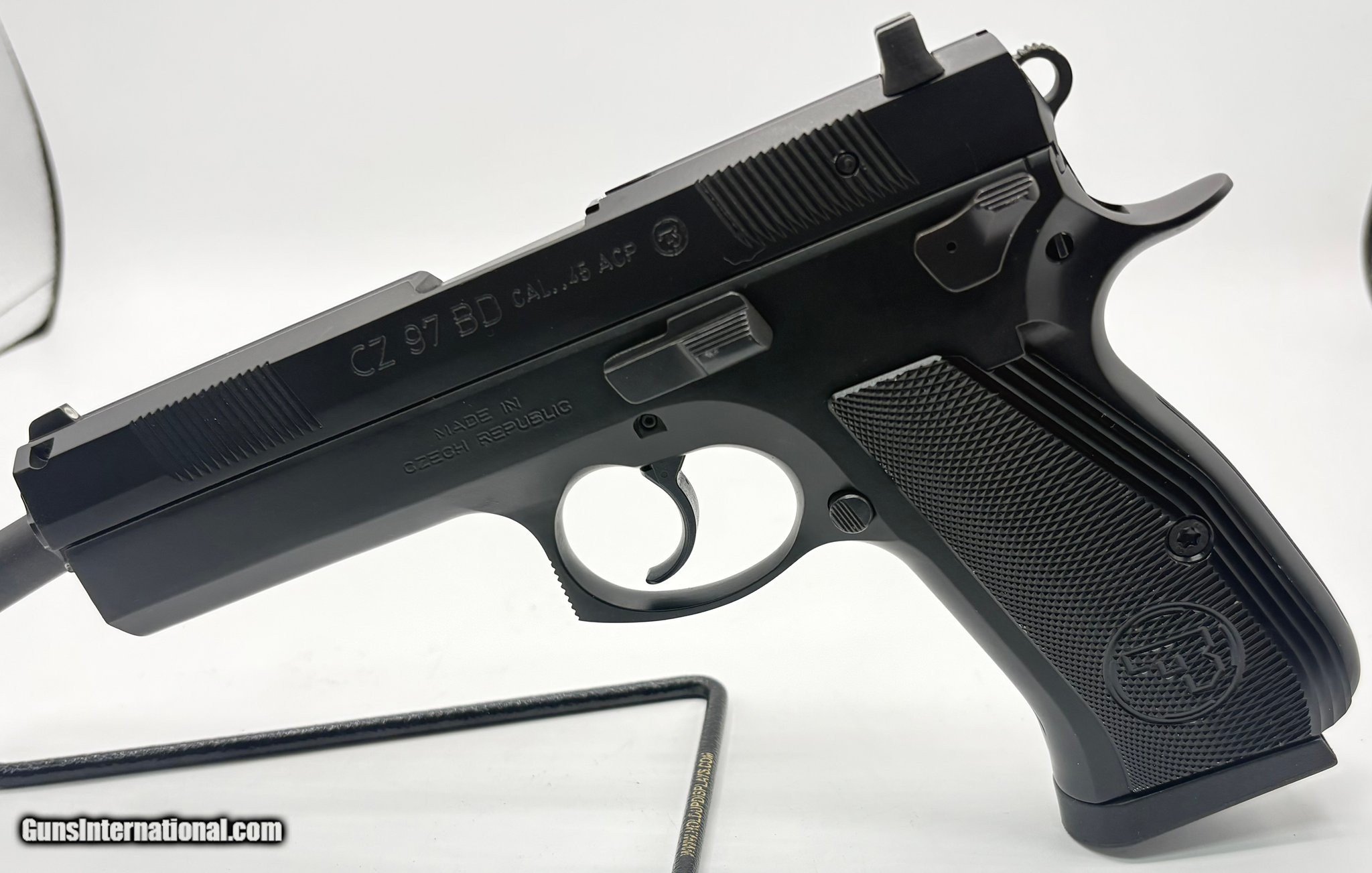 Description: Guns Listing ID: 600368 Up for sale is a pre-owned CZ 97 BD chambered in .45 ACP. This is the BD (decocker) variant of the CZ 97 series — a full-size, double-column .45 built on the CZ-75 platform. The pistol includes one 10-round magazine, shows a few light scuffs from normal use (see photos), and is sold as pictured. Features & Details Make / Model: CZ 97 BD (decocker variant) Caliber: .45 ACP Magazine: 1 × 10-round magazine included Condition: Pre-owned — a few scuffs/blemishes as shown in photos #0250423 (Ja) NMM Manufacturer: CZ Model: 97 BD Caliber Info: .45 ACP Condition: Used - Non-Certified Barrels: 4.5" BARREL Action: SEMI AUTOMATIC Finish: blk Price: $899.99 Contact Seller |
