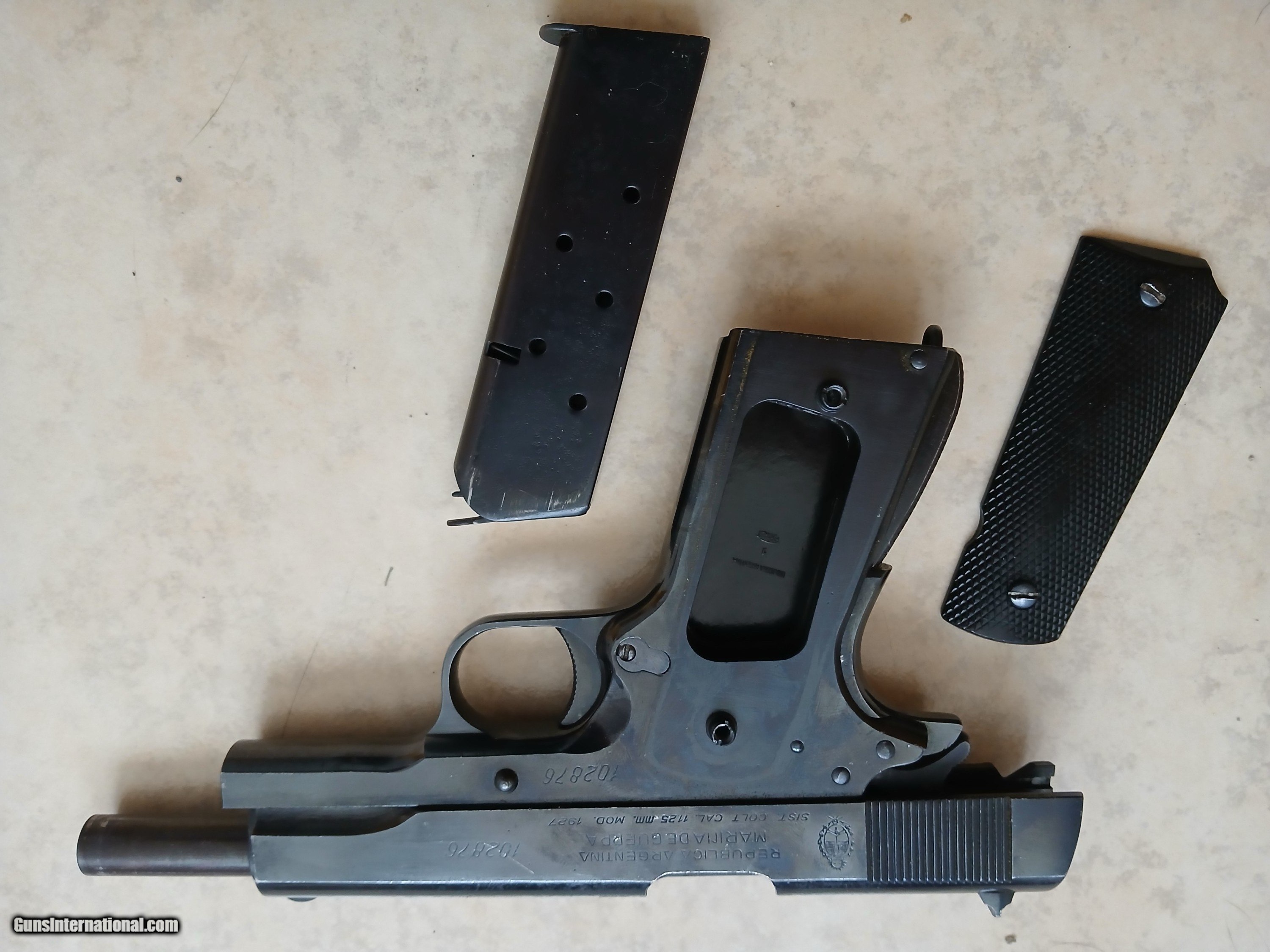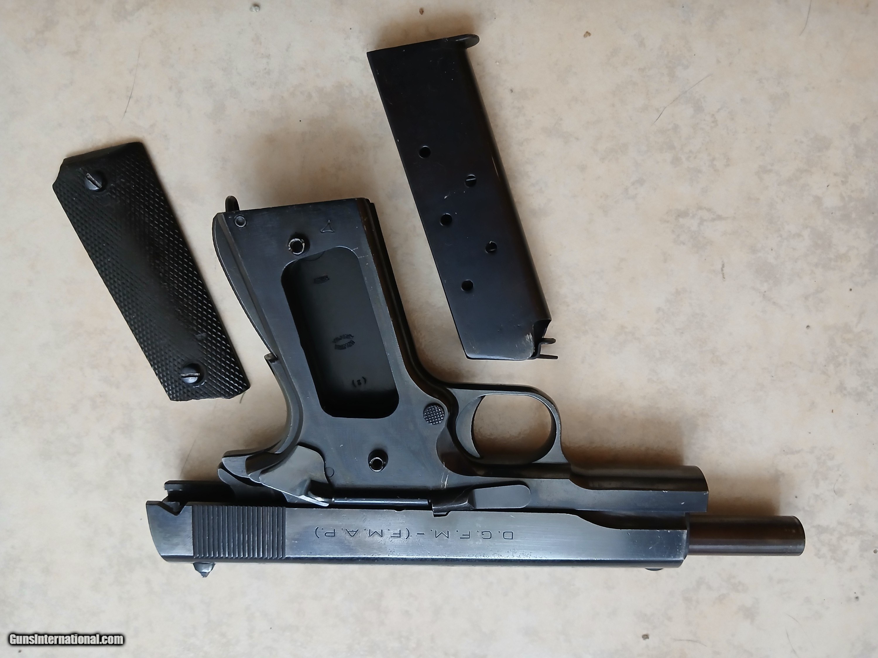 Description: D.G.F.M. Argentine Sistema; .45 ACP; Good Condition; One, Non-Matching Magazine; $750, Shipping Included SOLD Curio/Relic: Yes Handgun Caliber: .45 ACP (.45 Auto) Manufacturer: D.G.F.M. Model: Argentine Sistema |