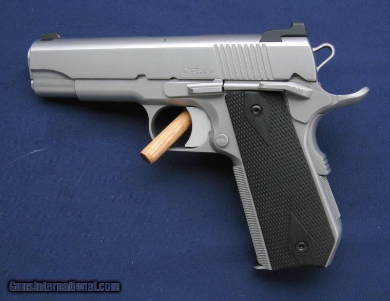Description: This used Dan Wesson Valor is in great shape. Tritium sights are dated 2012, so it was likely made that year or in early 2013. This is a Commander sized pistol with a Bobtail frame and checkered frontstrap. Heinie Straight 8 Tritium sights. Double diamond checkered slim G10 grips. Excellent slide to frame fit and a crisp carry trigger. Bright clean bore in the Match grade barrel. Comes in its original box with 2 magazines and all inserts. Priced right. $35 shipping to the lower 48, 3% surcharge for using a CC. If you pay with a personal check, you can expect us to hold the item for up to 10 days to ensure that the check clears. SOLD |