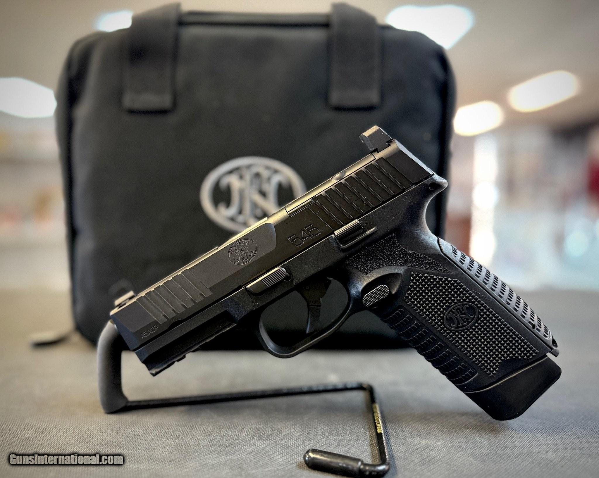 Description: Guns Listing ID: 586151 FN 545 (by FN America / formerly FNH USA). Complete with three magazines, soft-side carry bag, FN optics mounting system and plates, and owners manual. The FN 545 is chambered in .45 ACP. This firearm would be a solid choice for duty / defense / high-performance training scenarios rather than for “every day carry" or compact/trainer applications. In a range/training environment you can leverage its full features: optics mounting, high capacity, full size — useful for advanced pistol classes, tactical drills, defensive pistol training. A premium product line: high quality, strong brand, justifying retail price and differentiation. Double-stack magazine configuration: e.g., 15 + 1 standard version Frame: Polymer frame, striker fired, optics-ready slide (Low-Profile Optics Mounting System) and ambidextrous controls. Purpose: A high-capacity, full-size “big bore" handgun designed for duty, defense, high-round count performance. Good ergonomics and recoil management. Manufacturer: FN Model: 545 MAGAZINE (15-ROUND) Caliber Info: .45 ACP Condition: Used - Non-Certified Barrels: 4.71" BARREL Action: SEMI AUTOMATIC Finish: black Price: $1,050.99 Contact Seller |